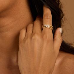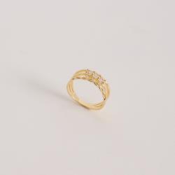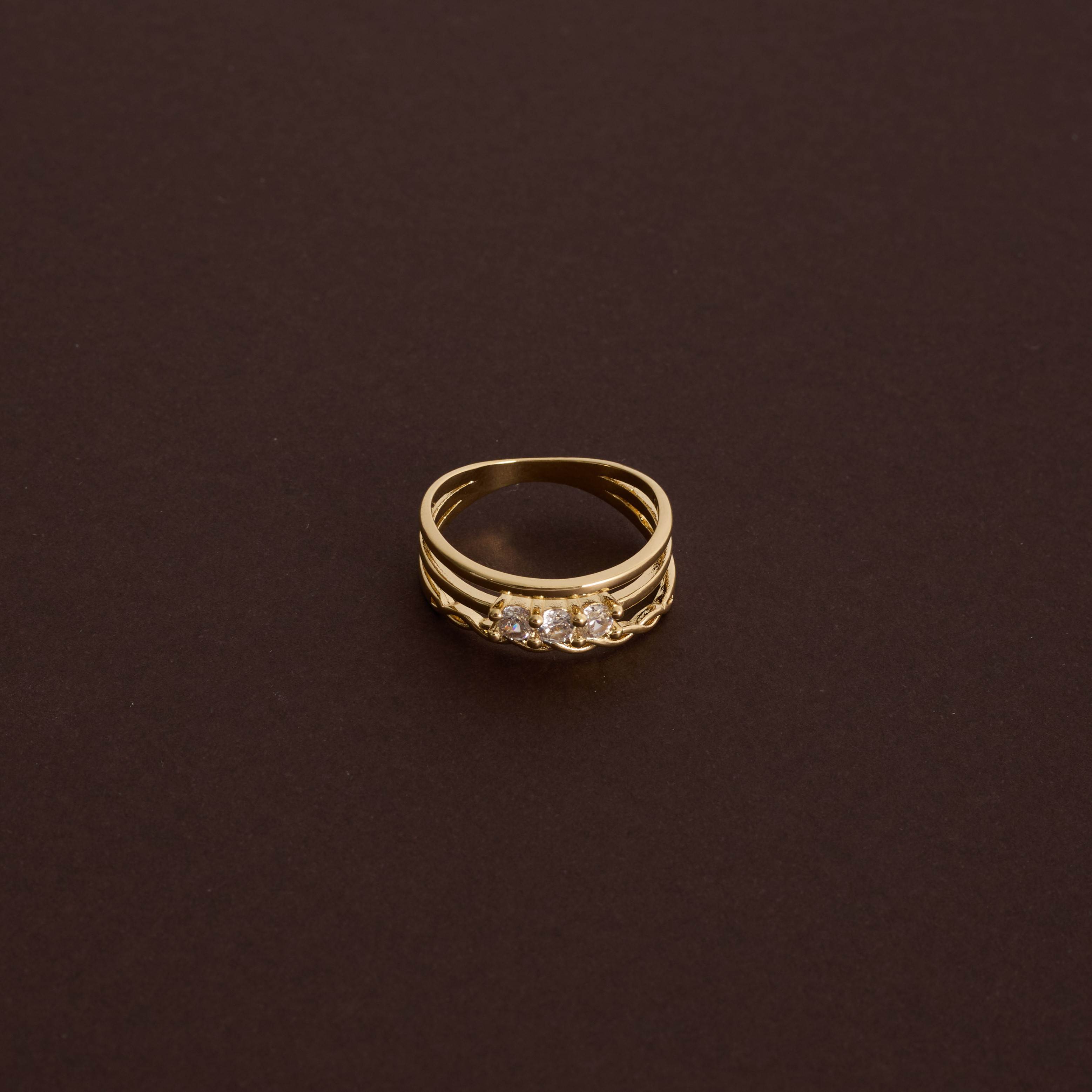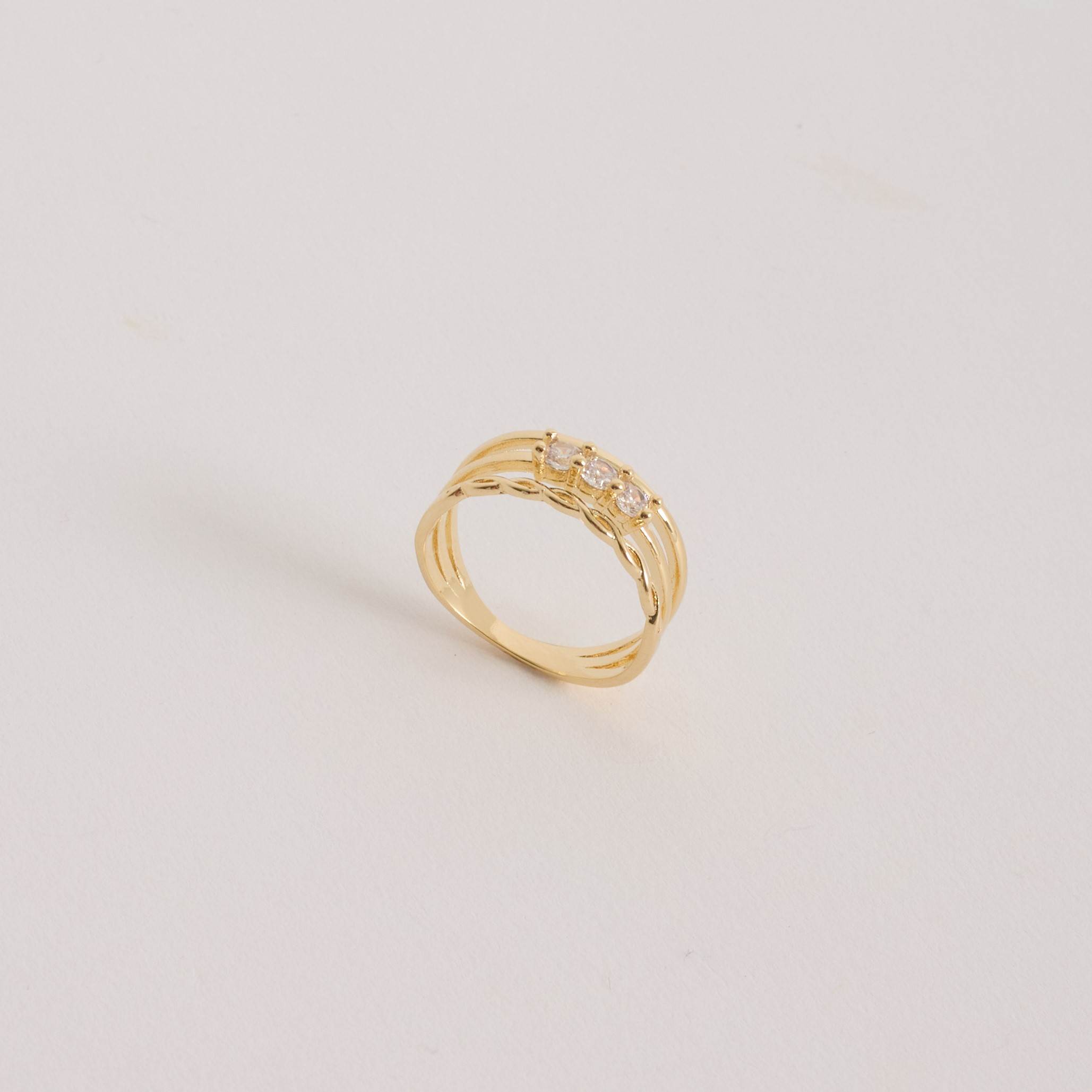 Anel triplo trançado, 3 zircônias e aliança | asth