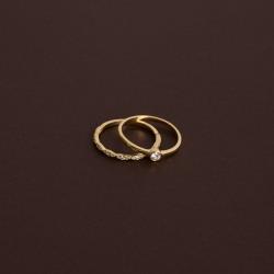Dupla de anéis solitário e meia aliança navetes