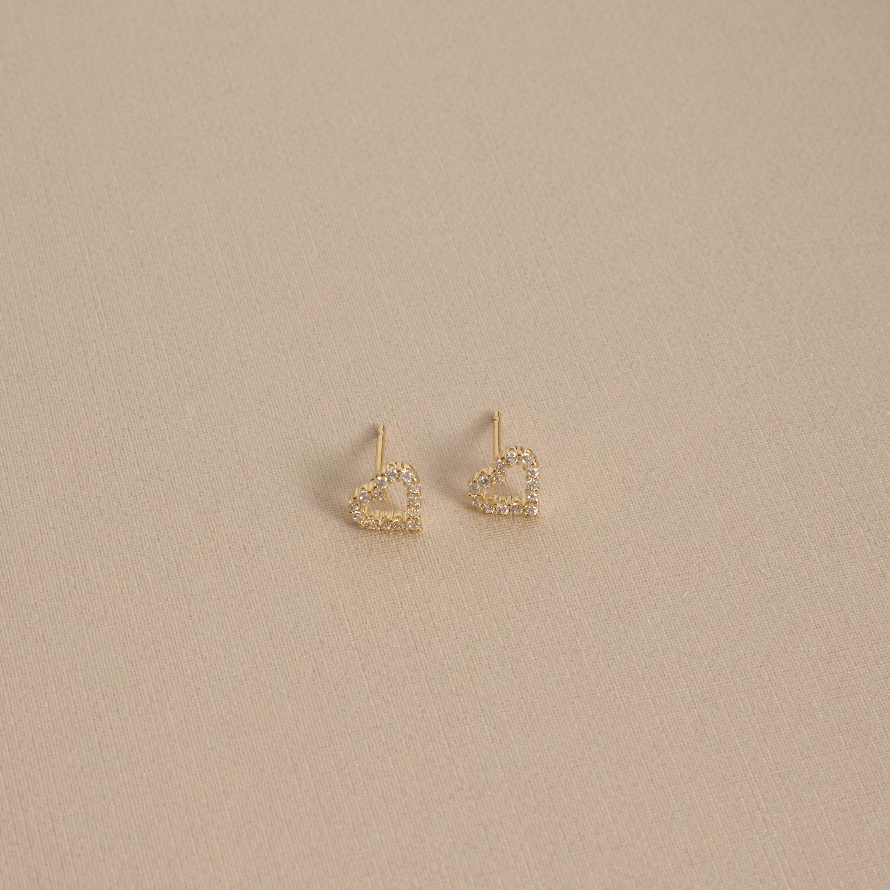 Brinco coração vazado cravejado 8mm