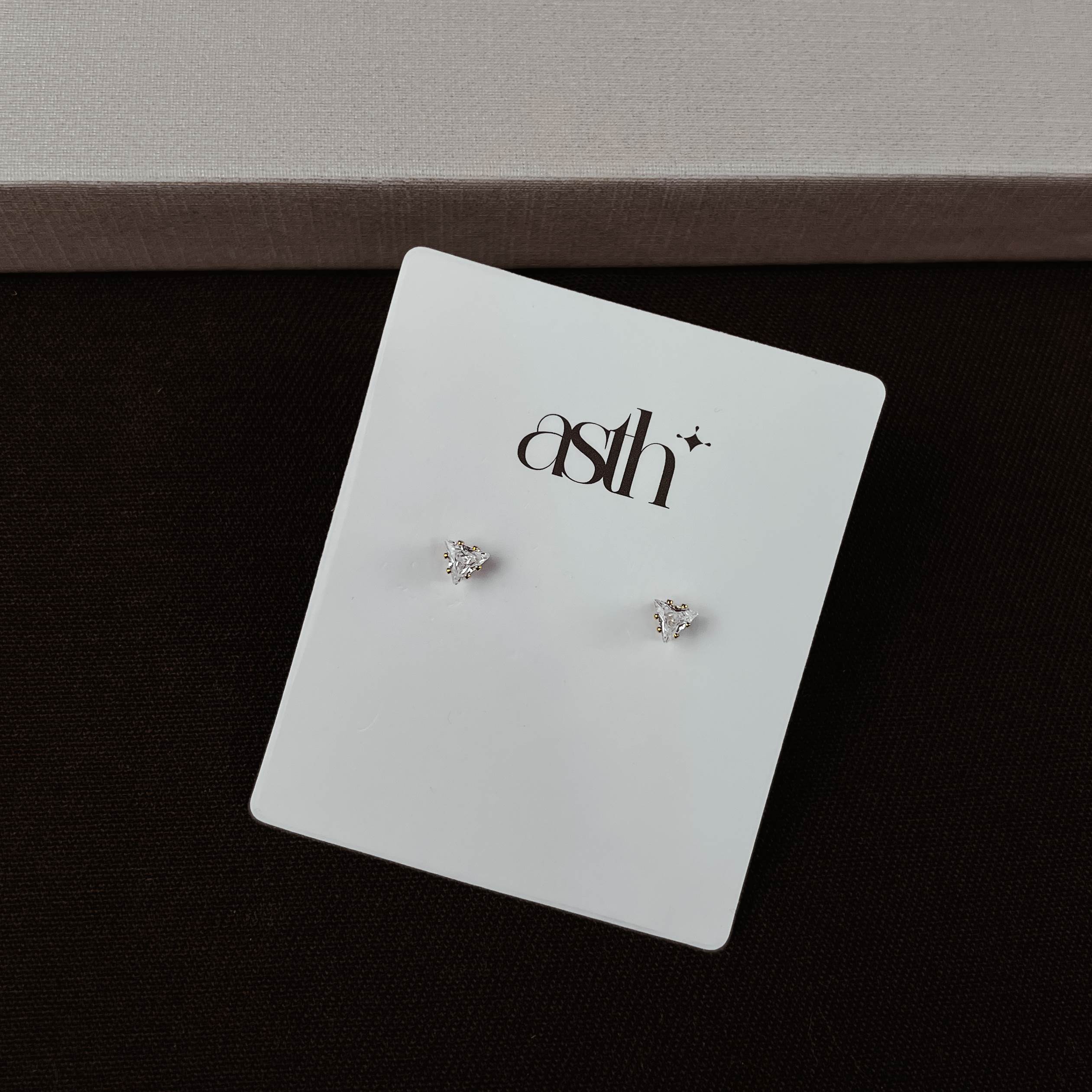Brinco zircônia triângulo cristal caixa alta 4mm | asth