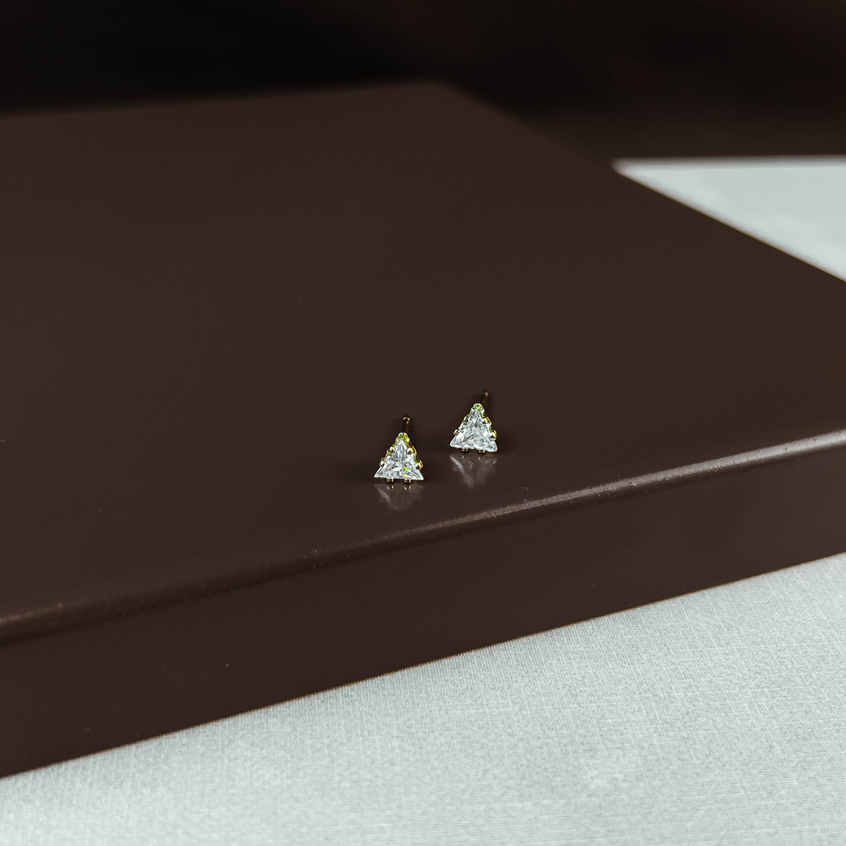 Brinco zircônia triângulo cristal caixa alta 4mm