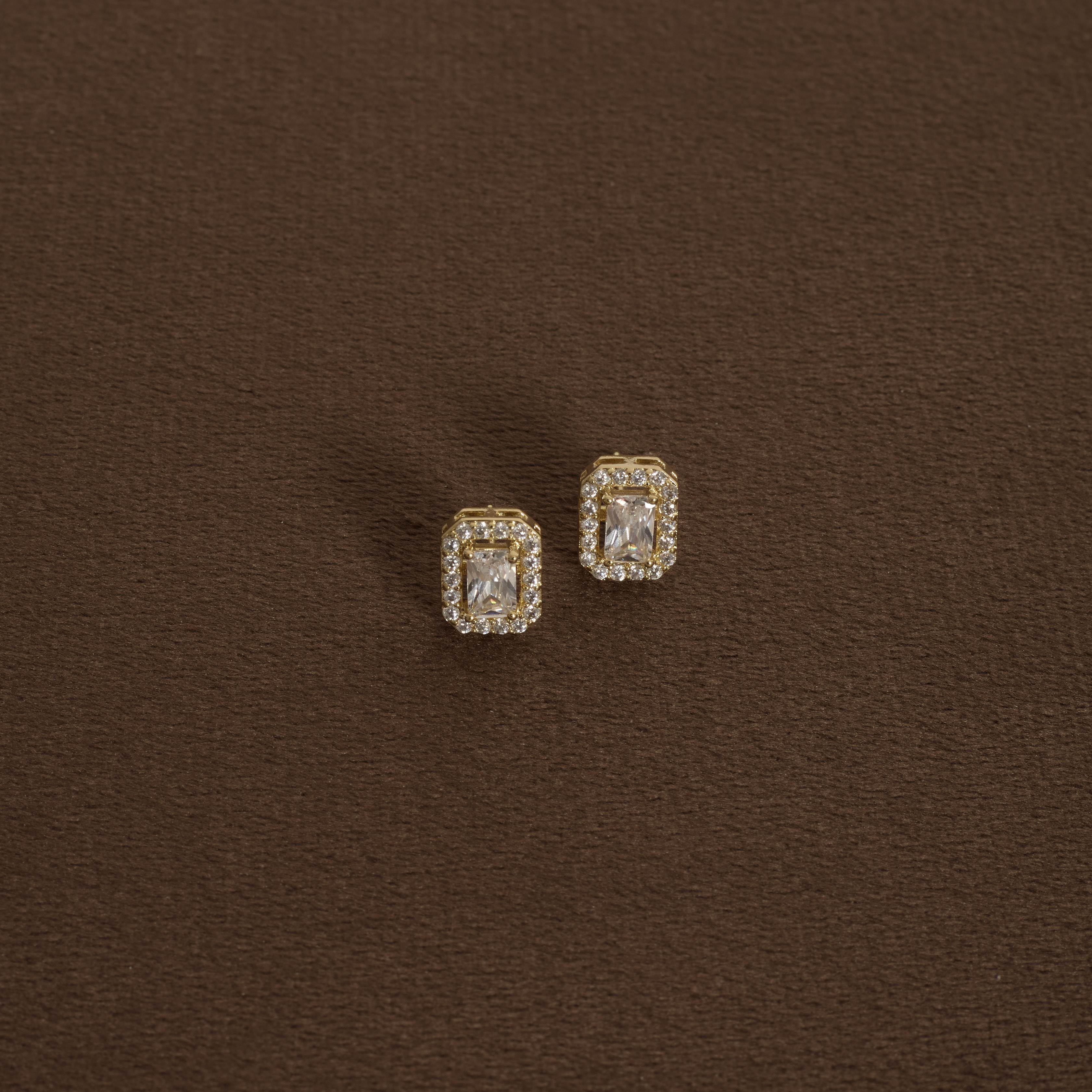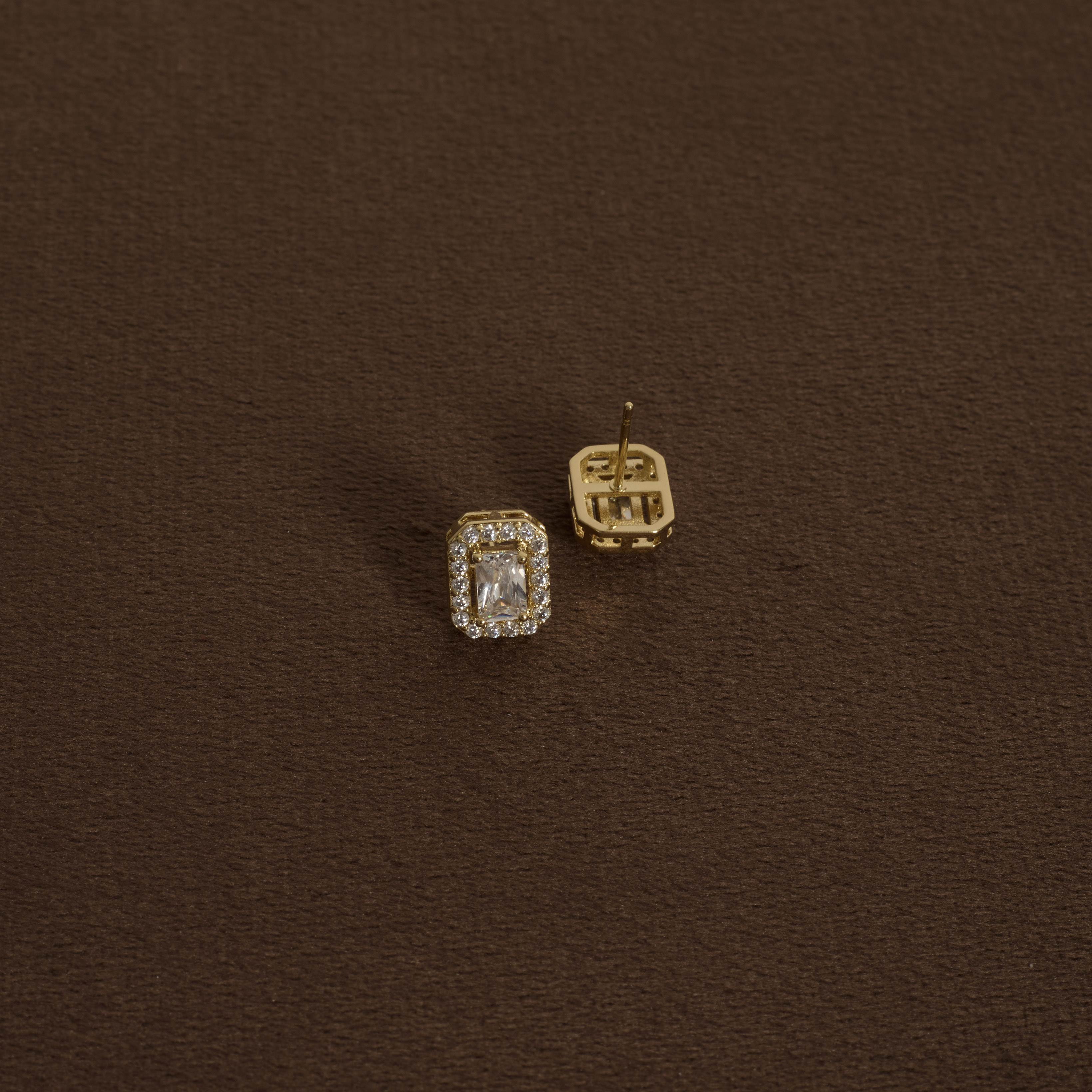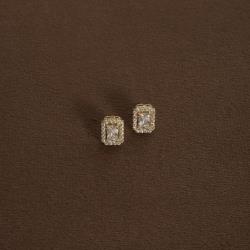 Brinco zircônia retangular com cravejado 10mm
