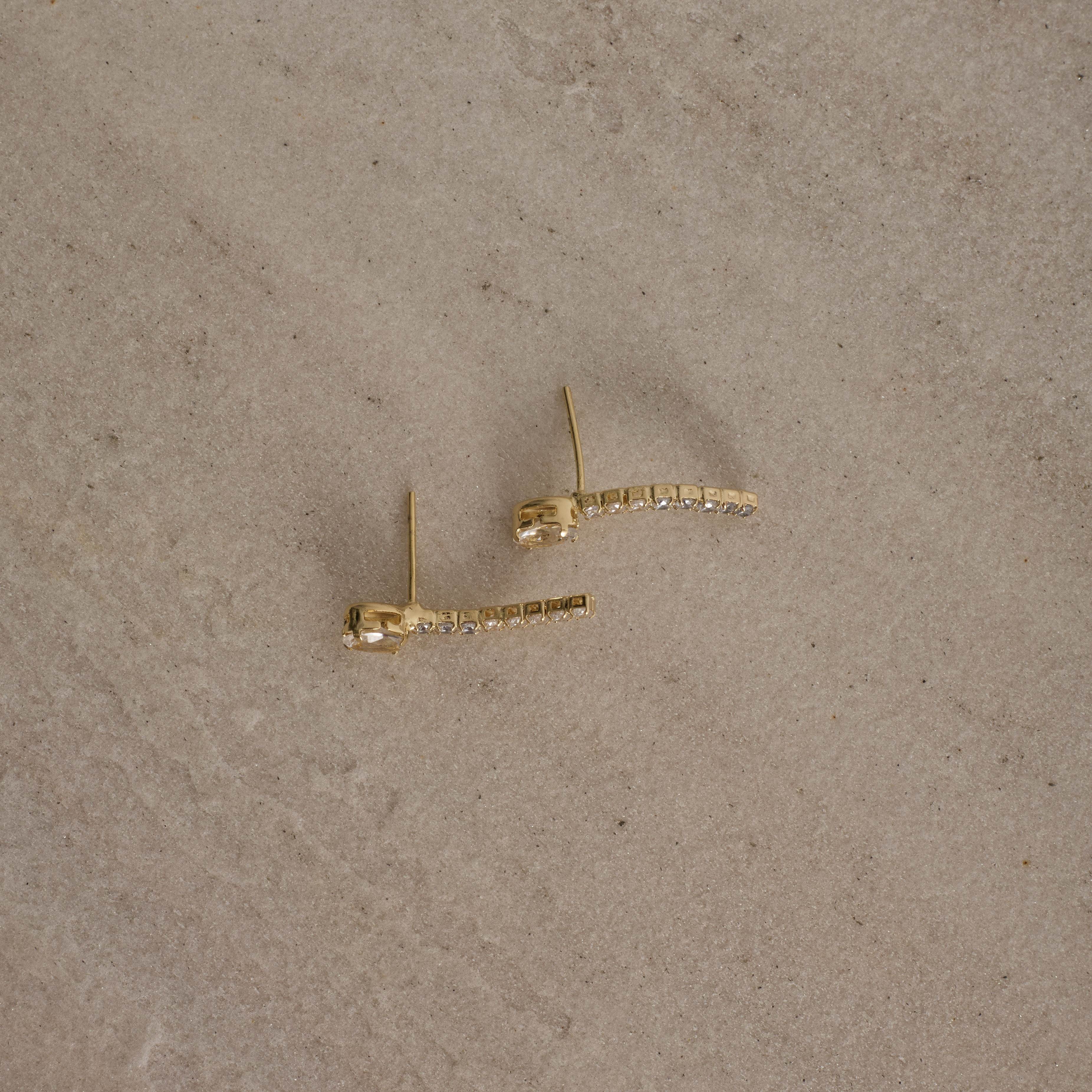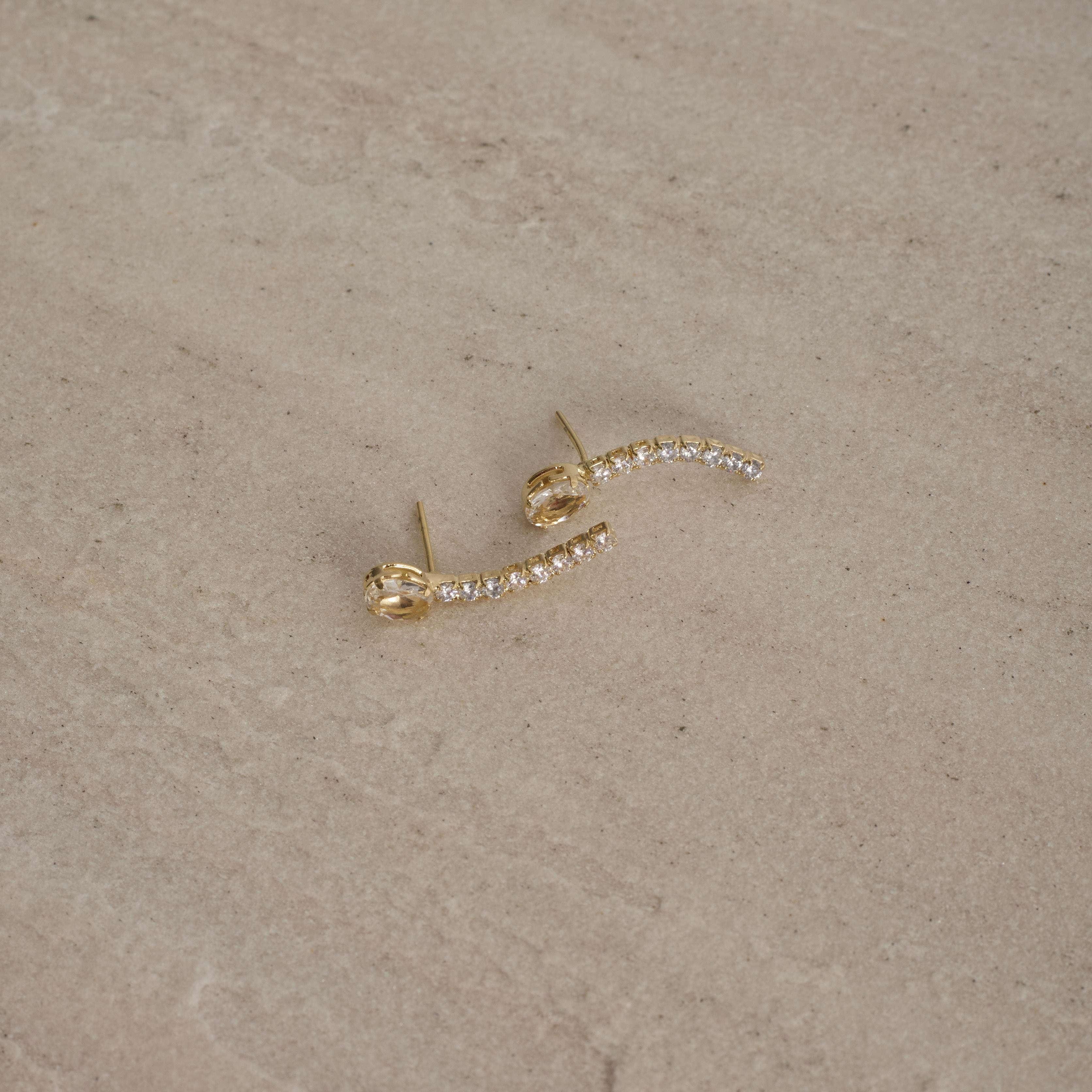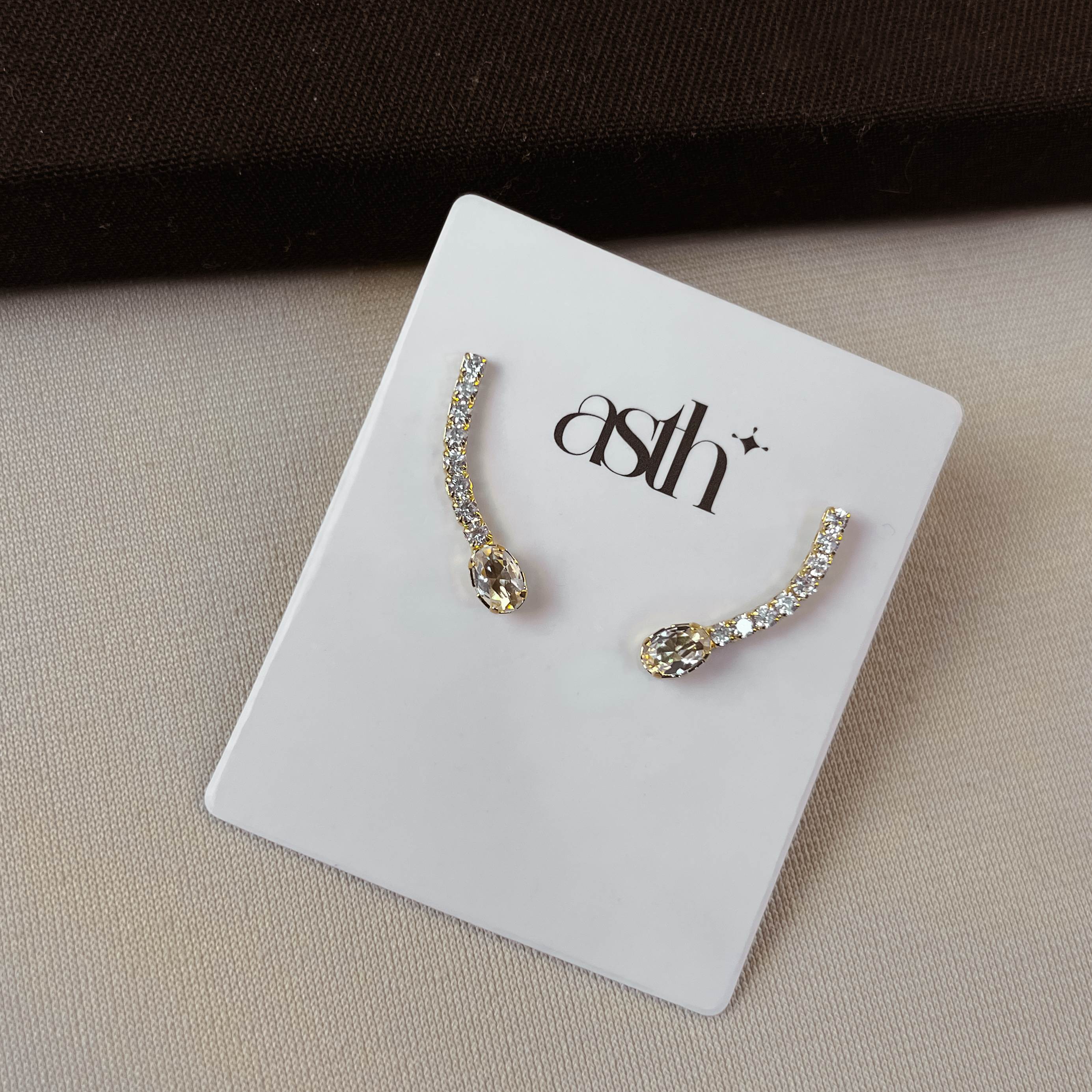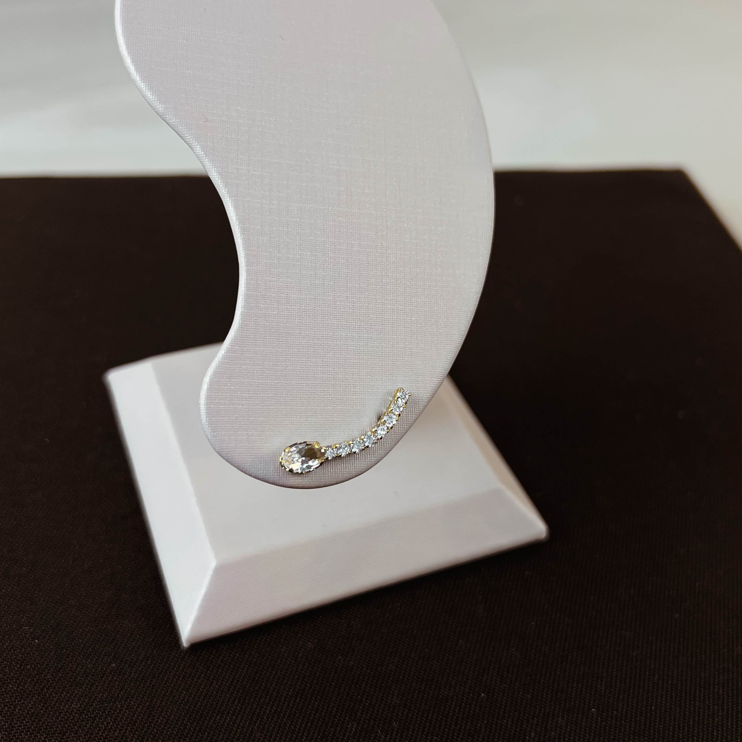Brinco zircônia oval com curva cravejada 22mm tarraxa asa | asth