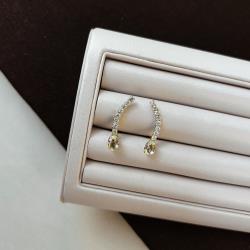 Brinco zircônia oval com curva cravejada 22mm tarraxa asa