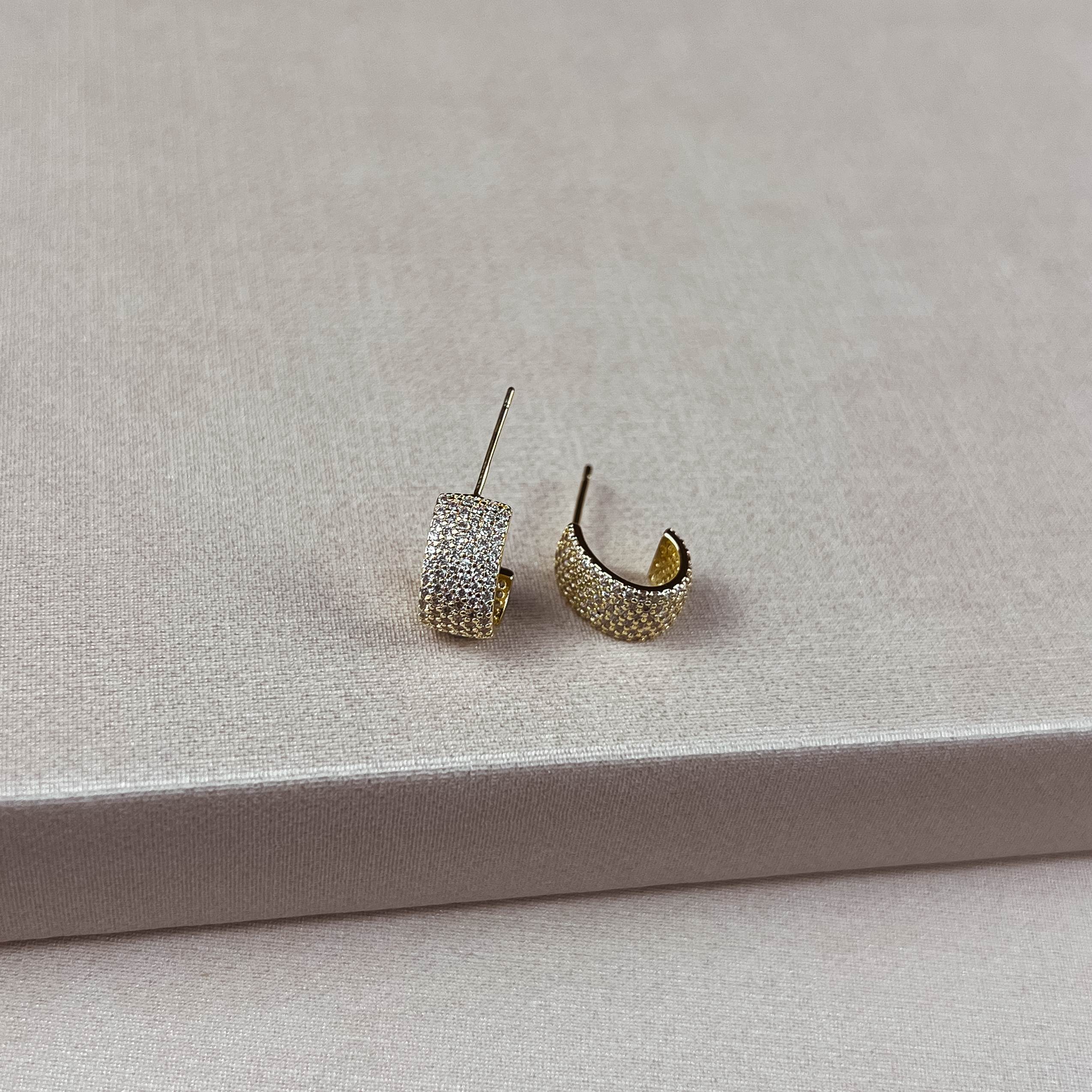 Brinco meia argola larga cravejada 12mm tarraxa | asth