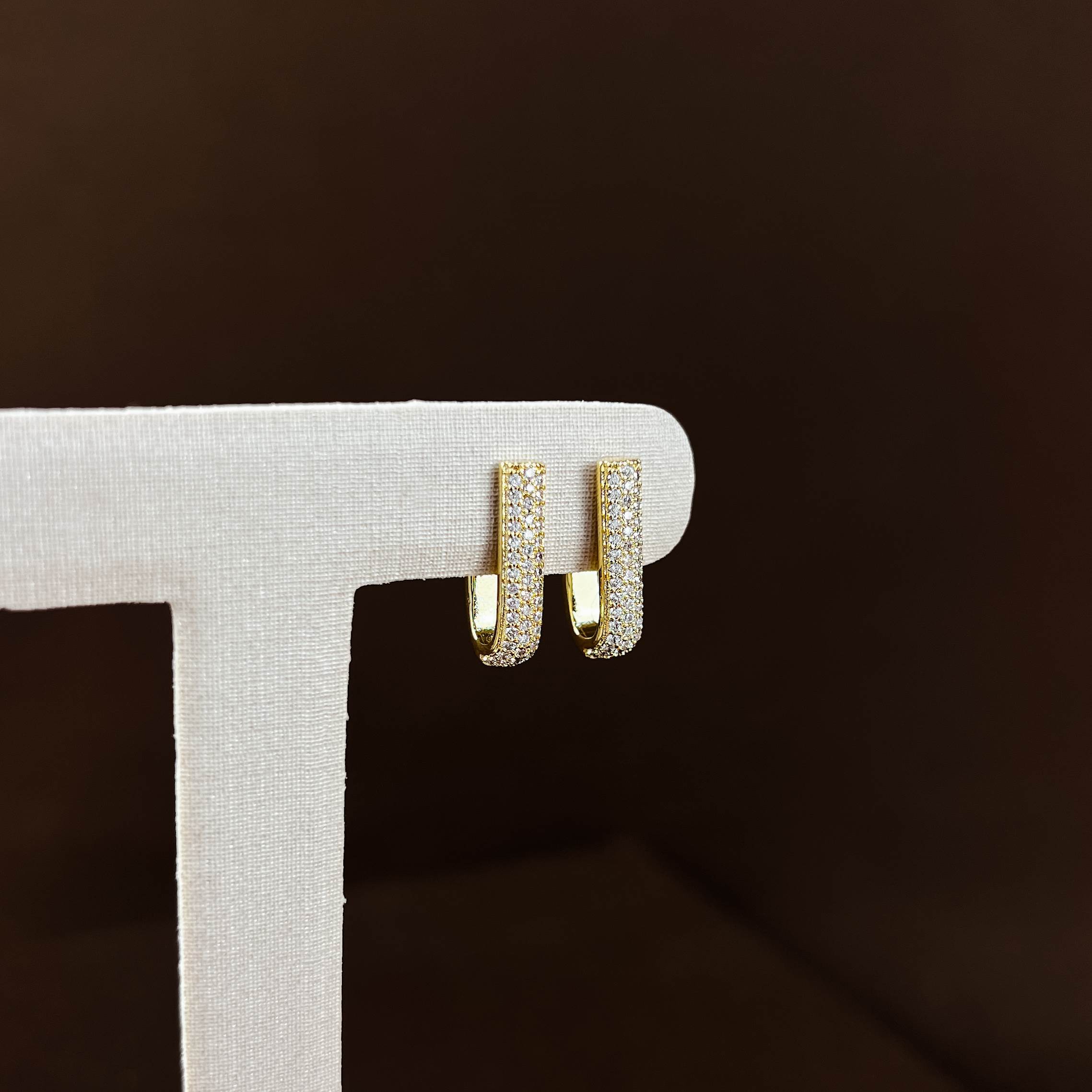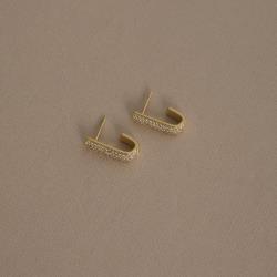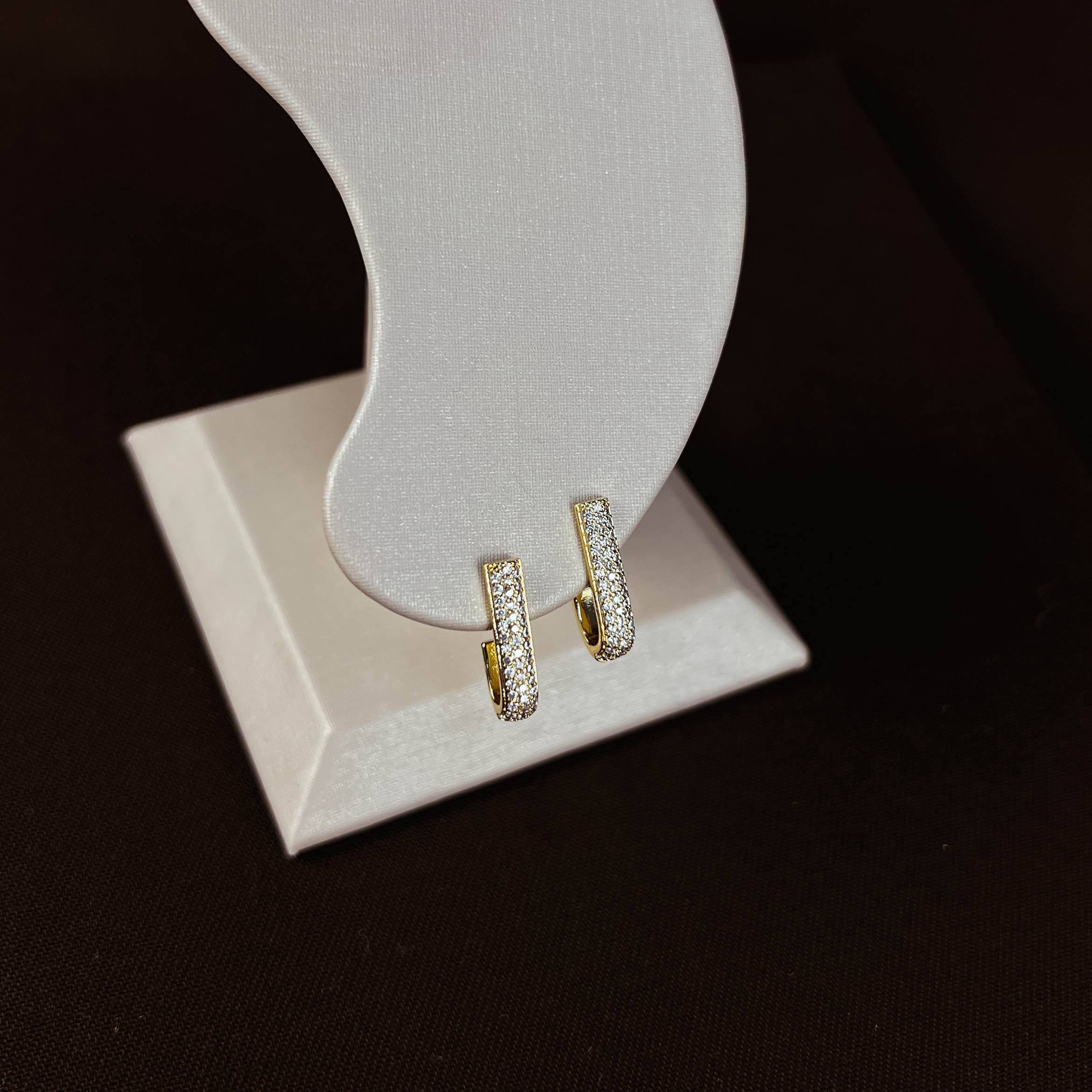 Brinco meia argola triplo cravejado 16mm tarraxa