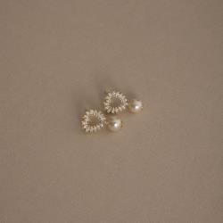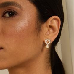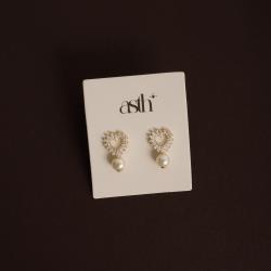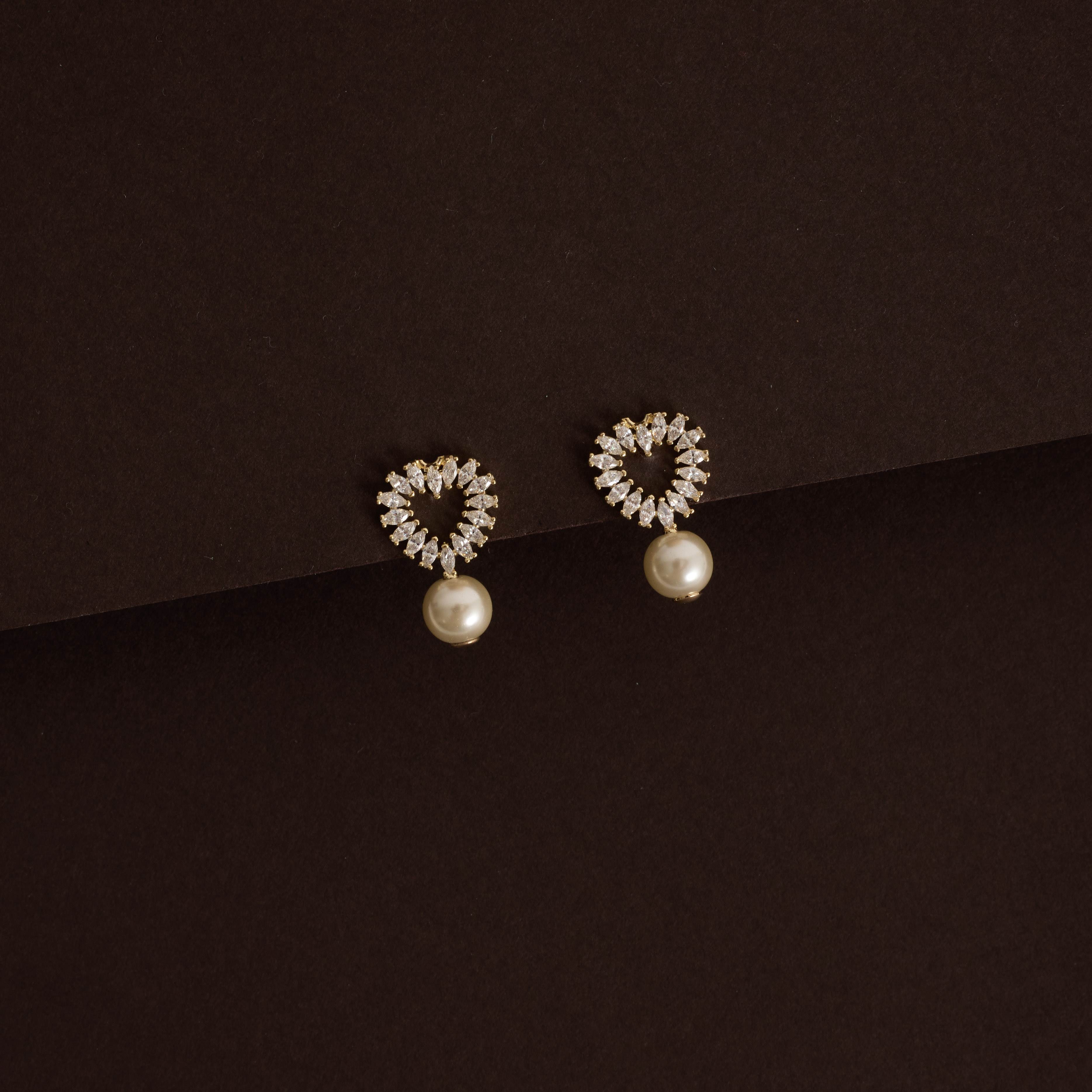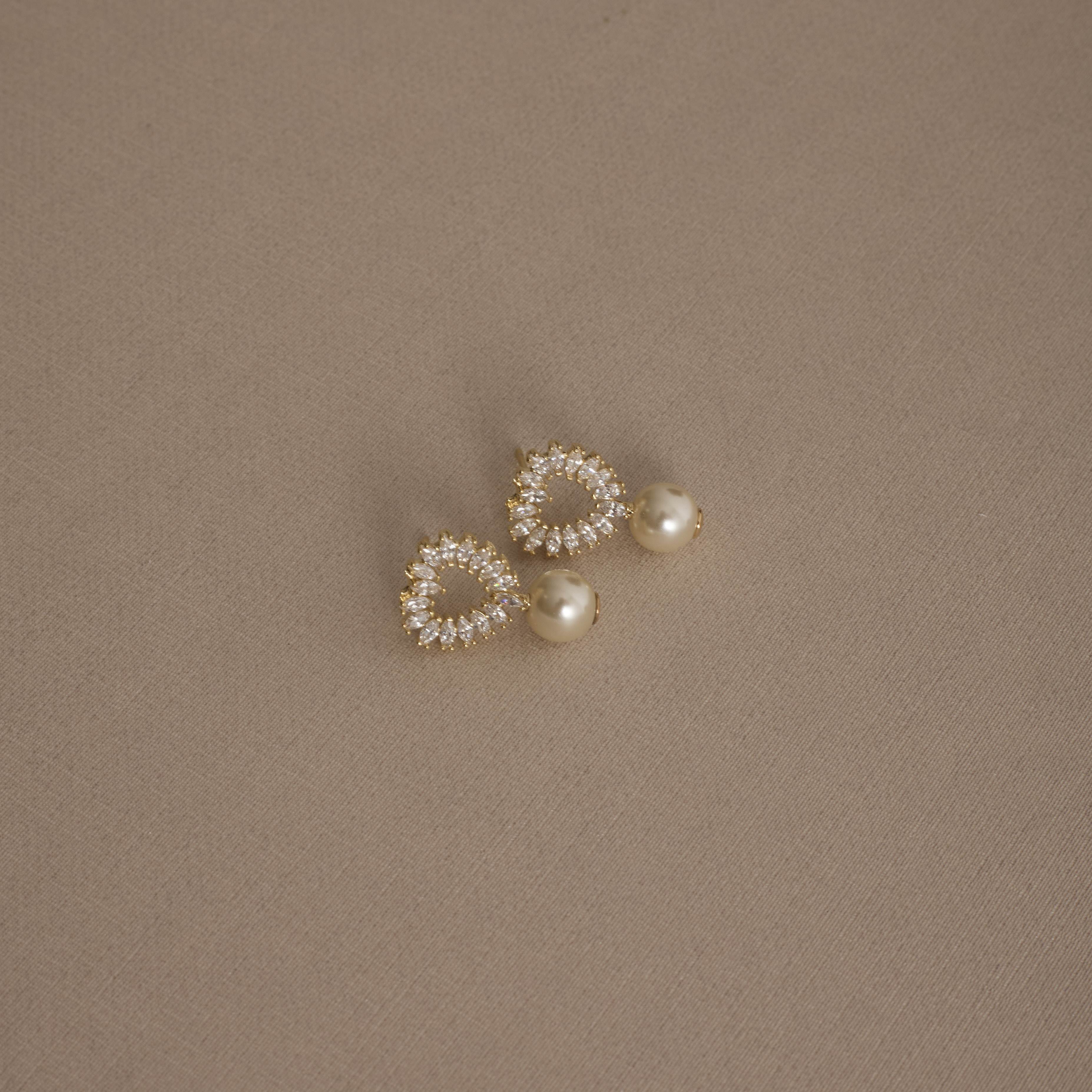 Brinco coração vazado cravejado com pérola 19mm | asth