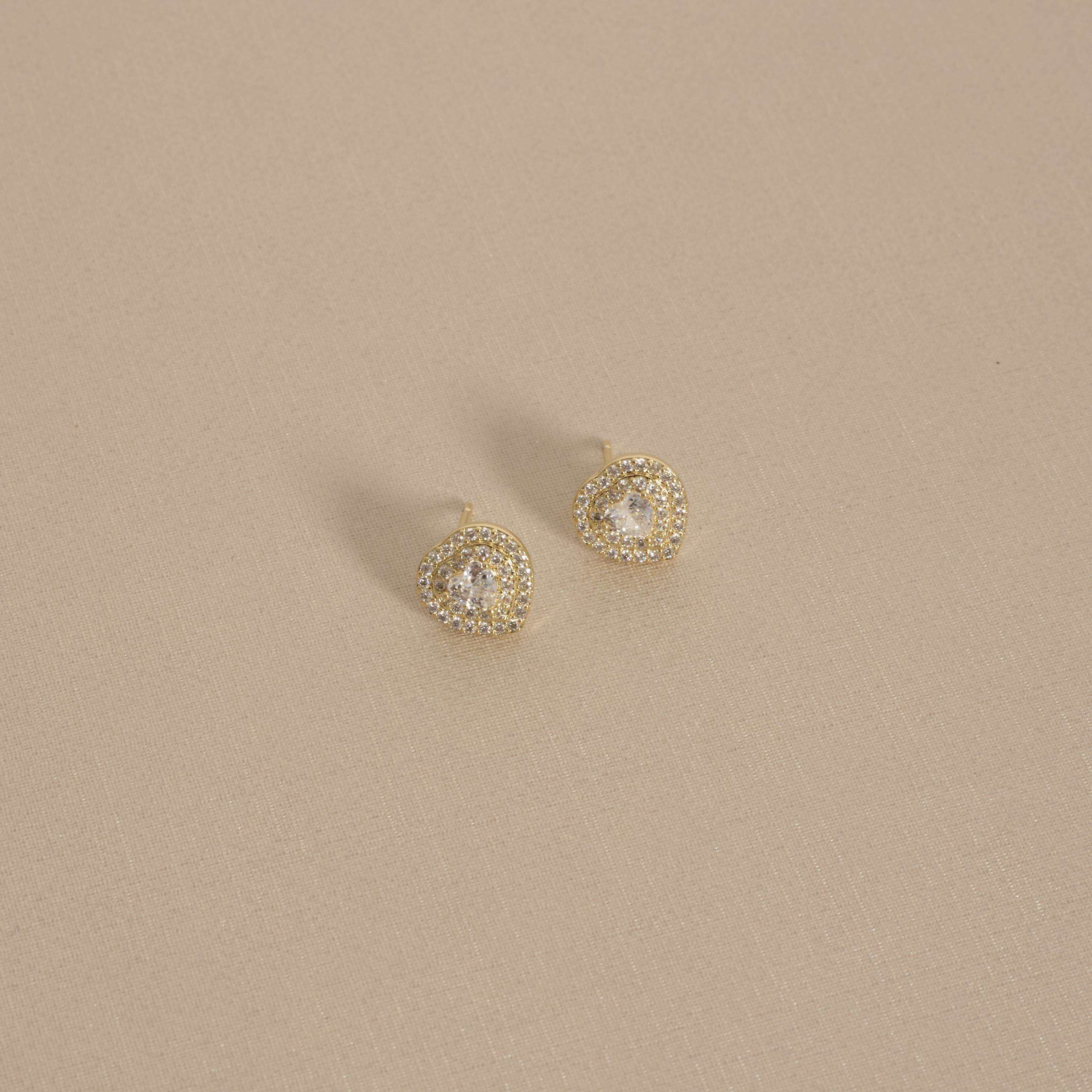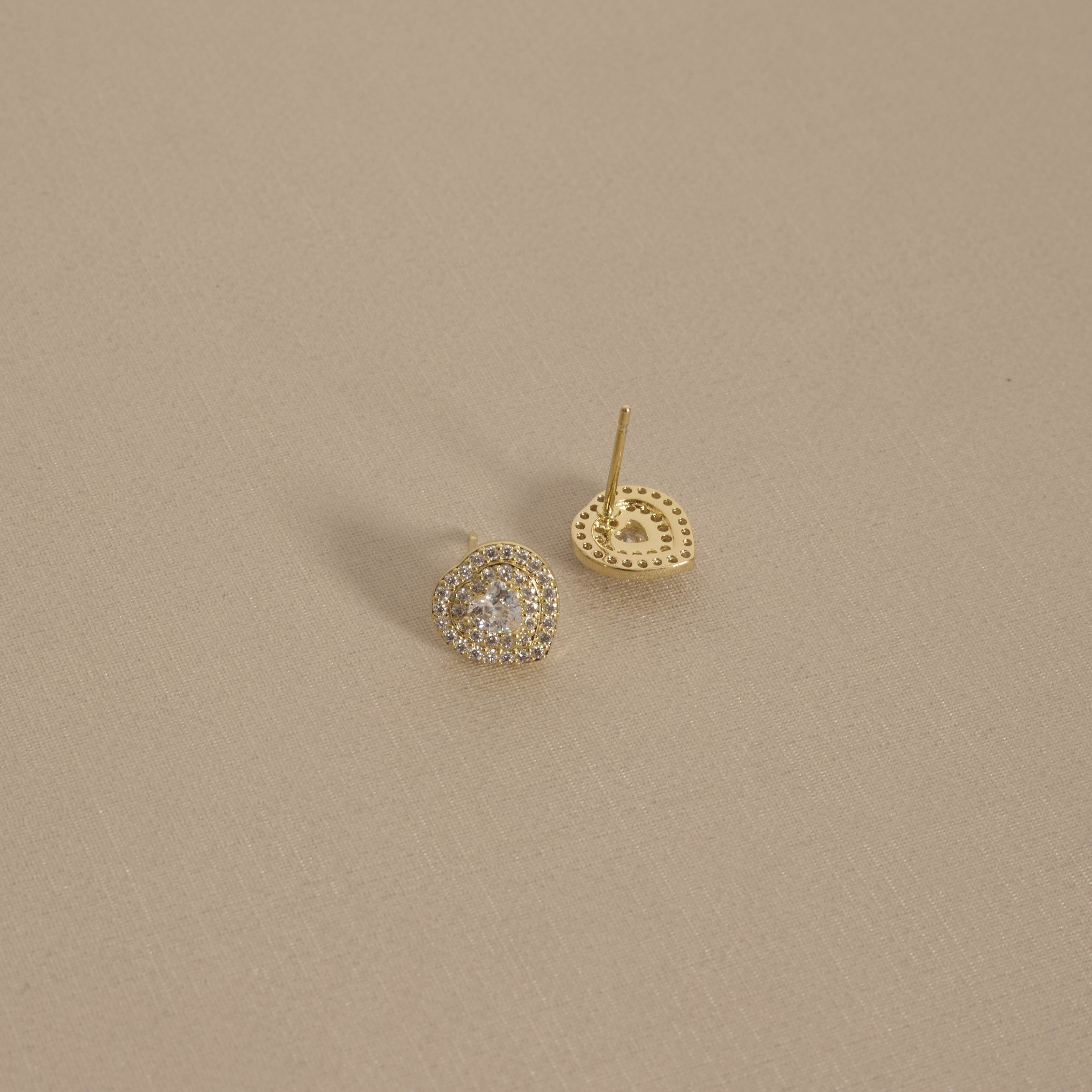 Brinco zircônia coração com duplo cravejado 10mm | asth