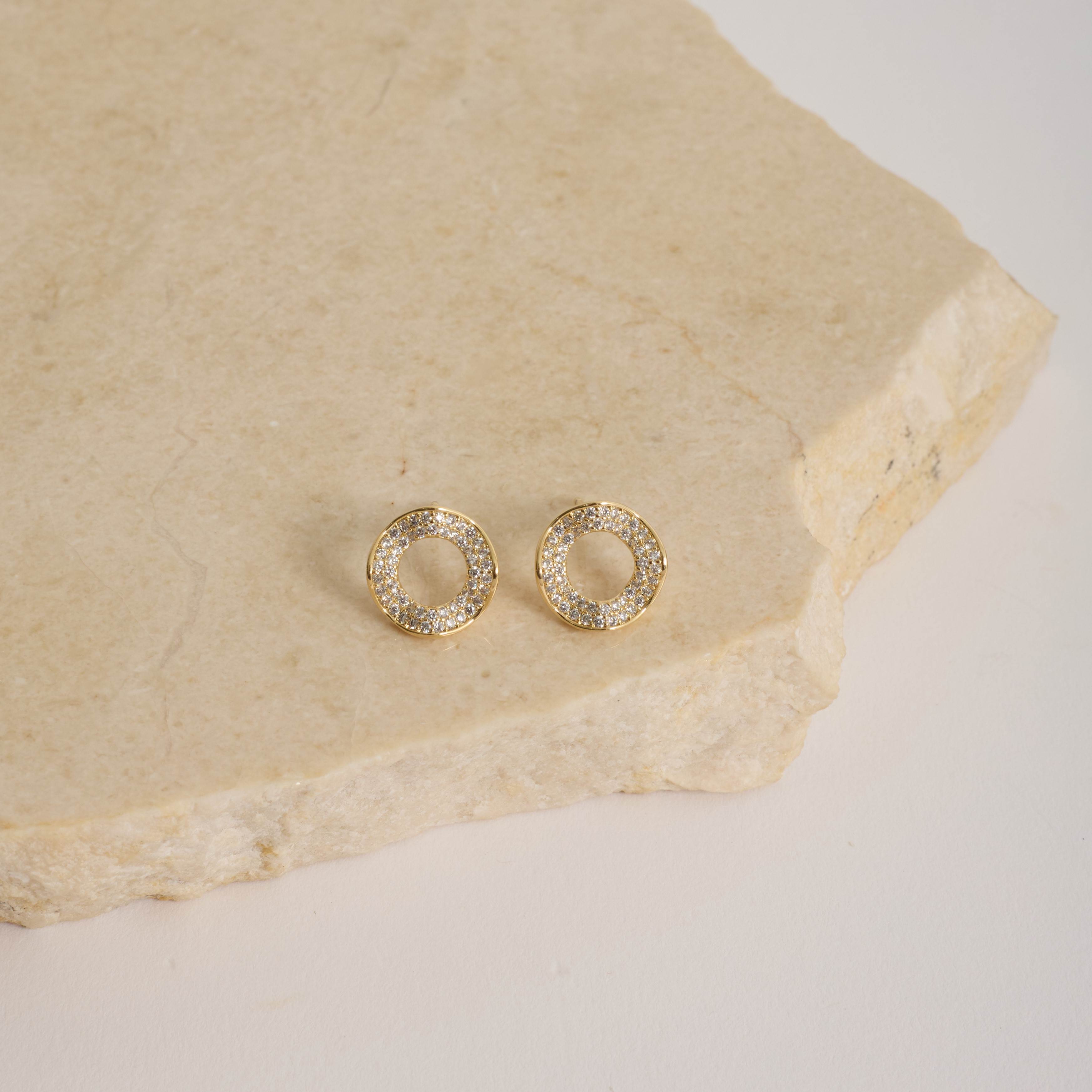 Brinco círculo ondulado vazado cravejado 11mm | asth