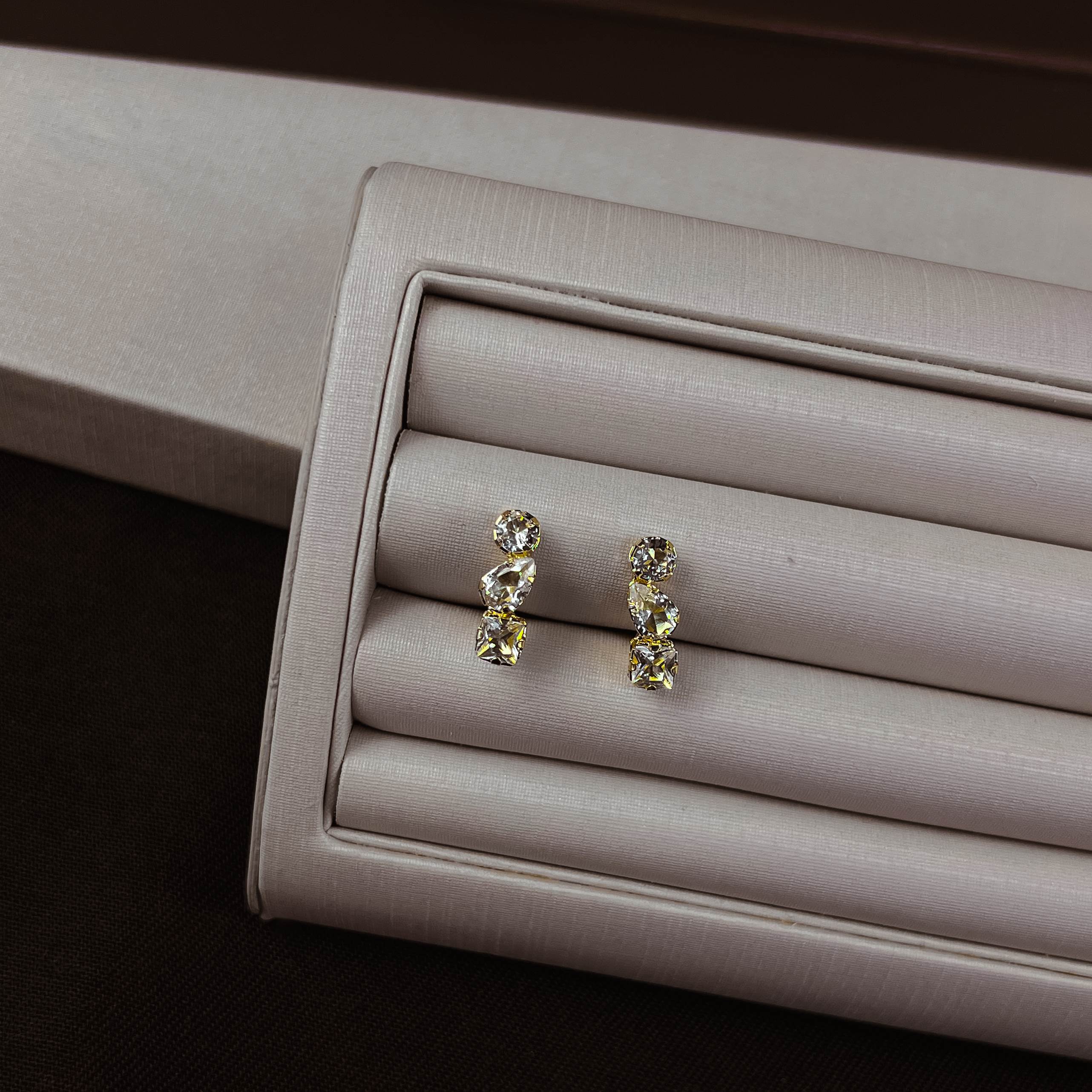 Brinco zircônias quadrada, gota e redonda 15mm tarraxa asa
