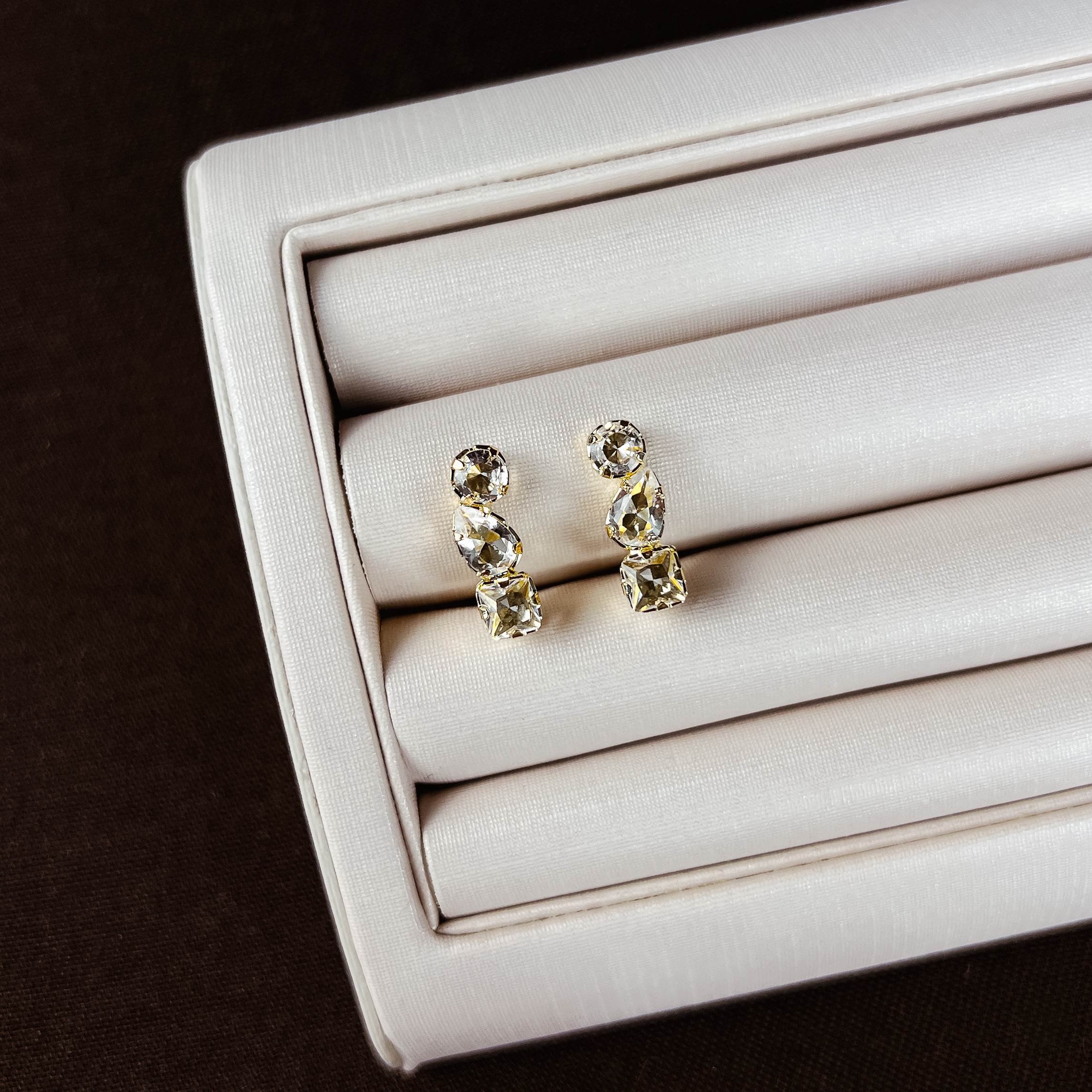 Brinco zircônias quadrada, gota e redonda 15mm tarraxa asa | asth