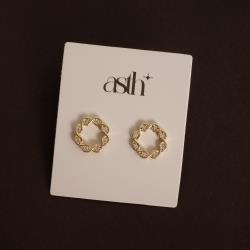 Brinco círculo vazado com zircônias 14mm | asth