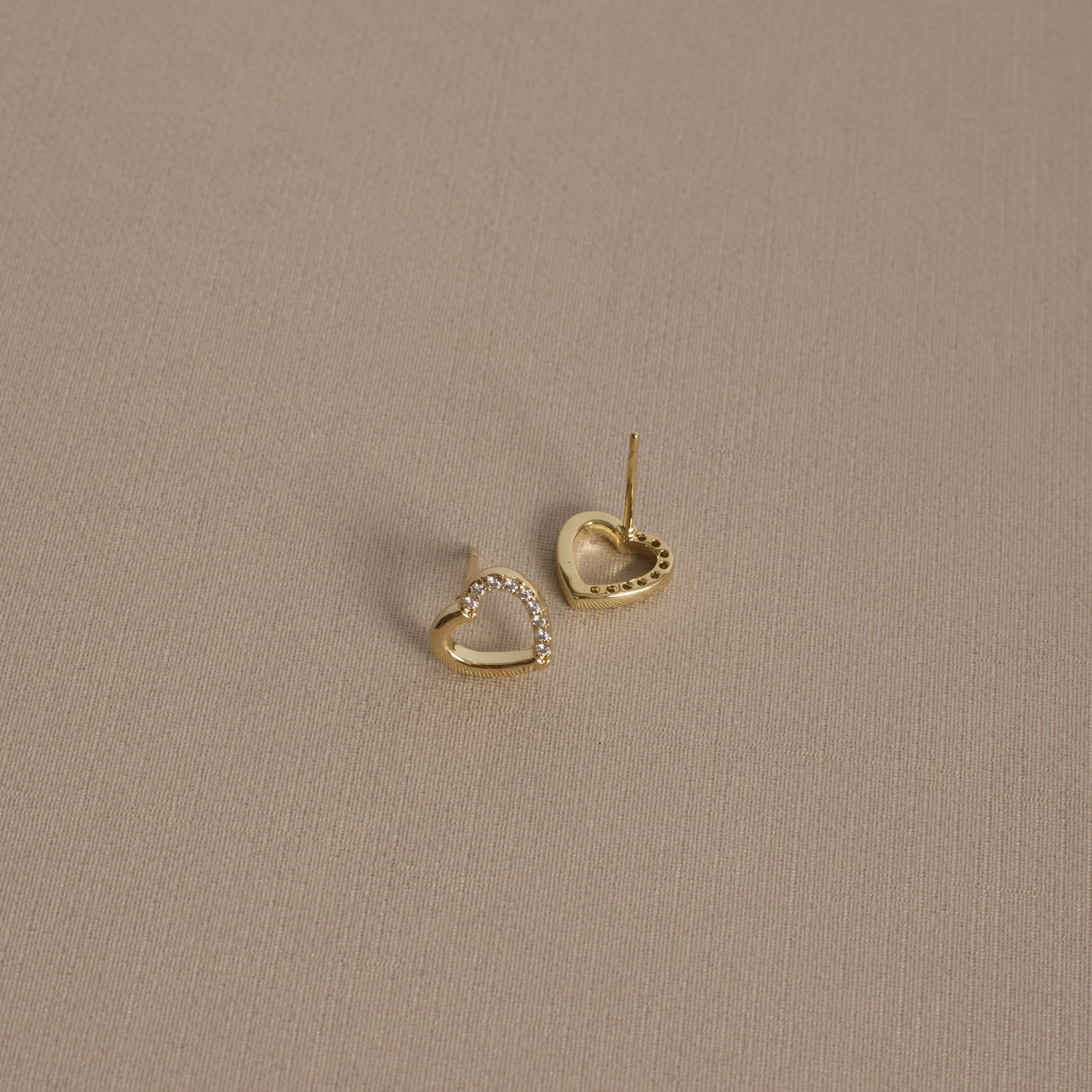 Brinco coração vazado metade cravejado 9mm | asth