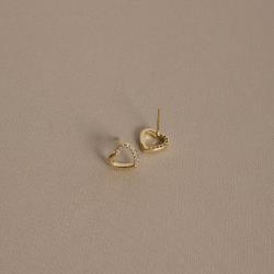 Brinco coração vazado metade cravejado 9mm