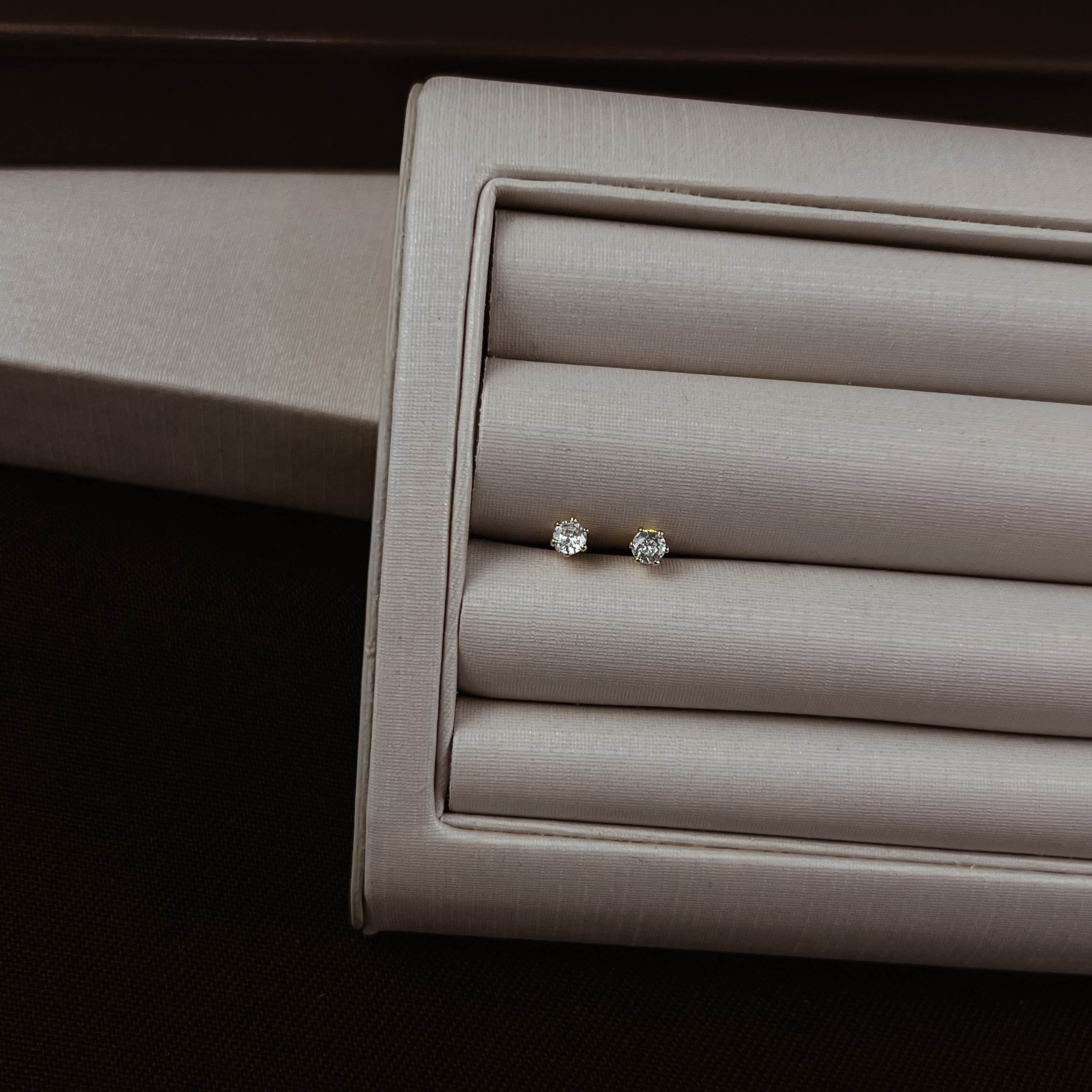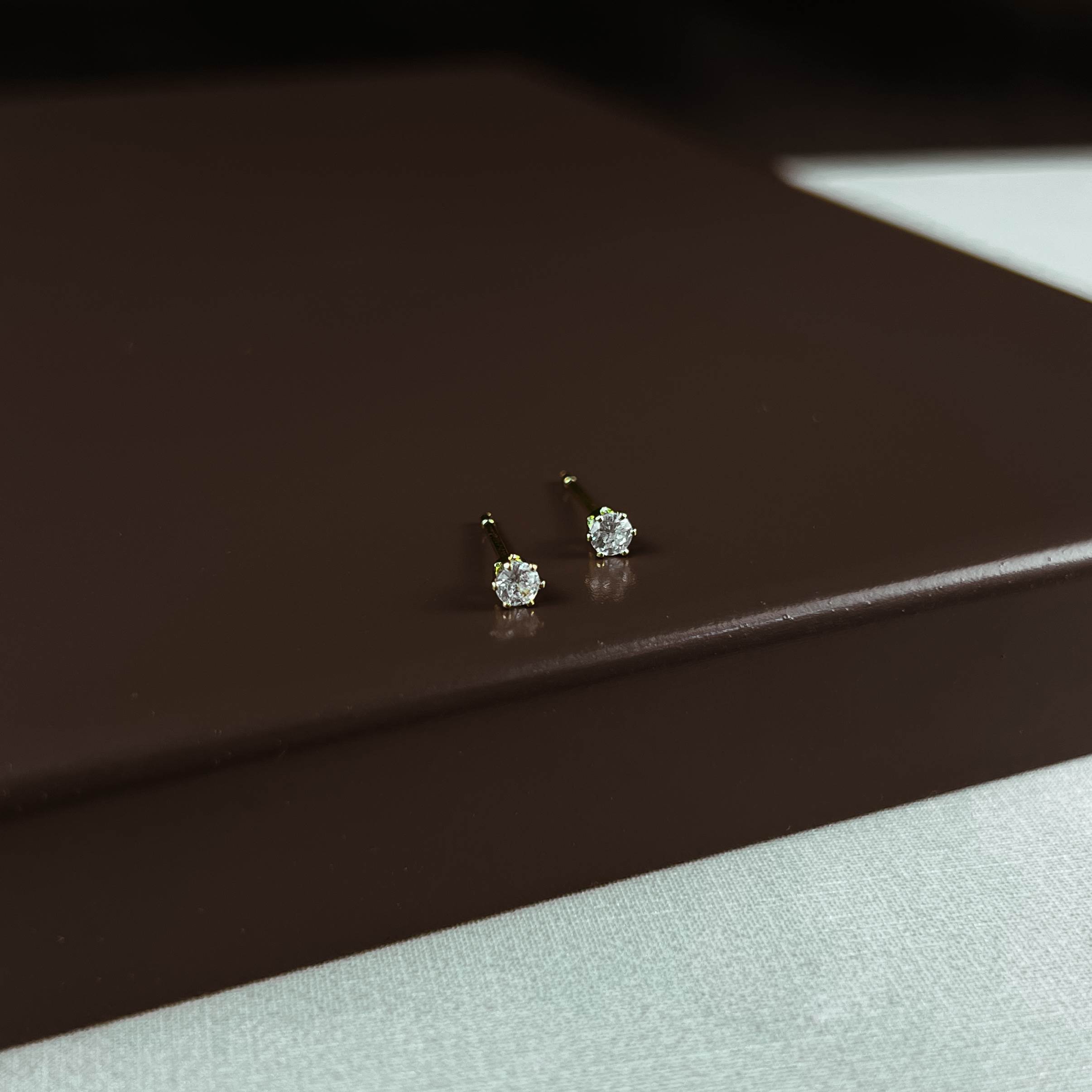 Brinco zircônia redonda cristal caixa alta 3mm