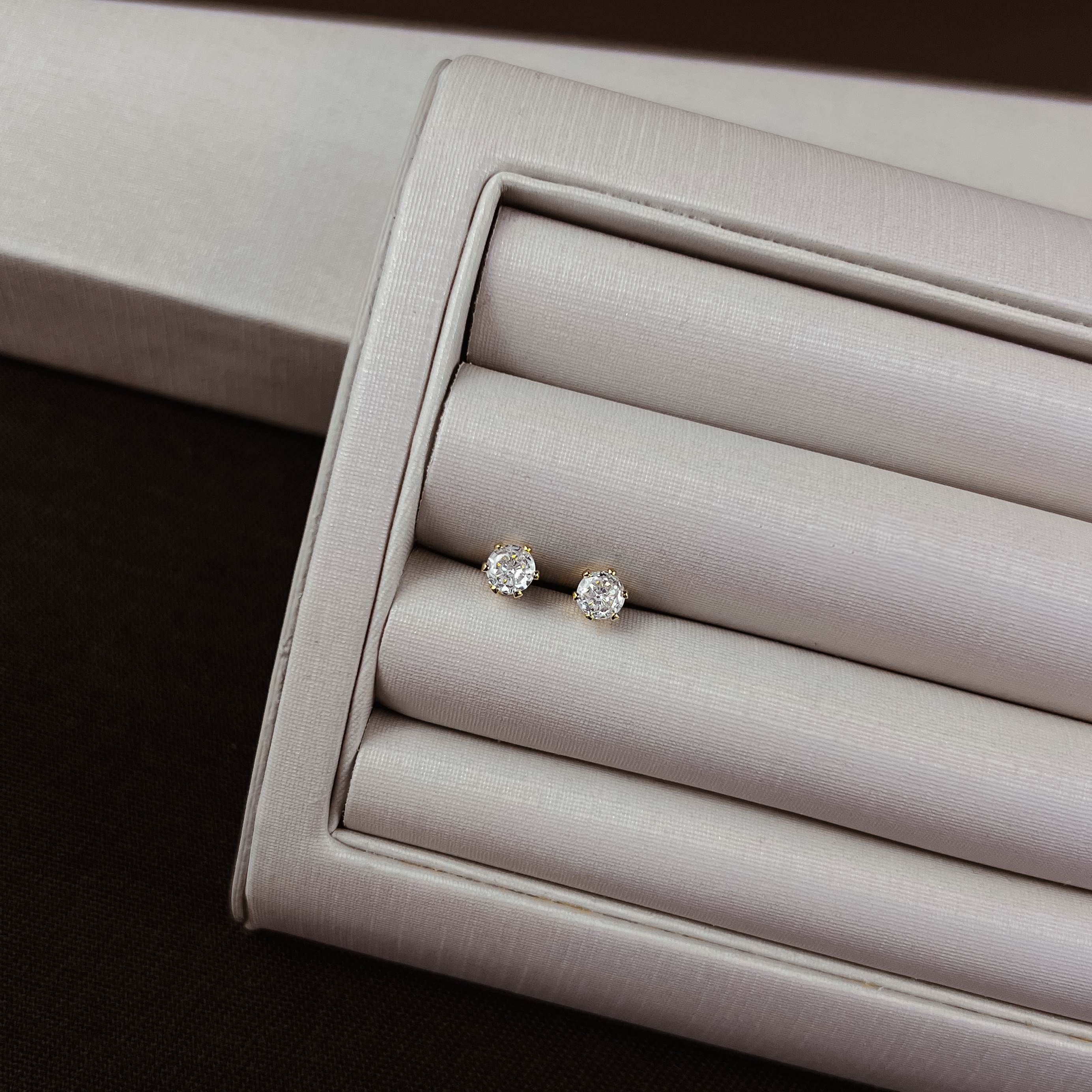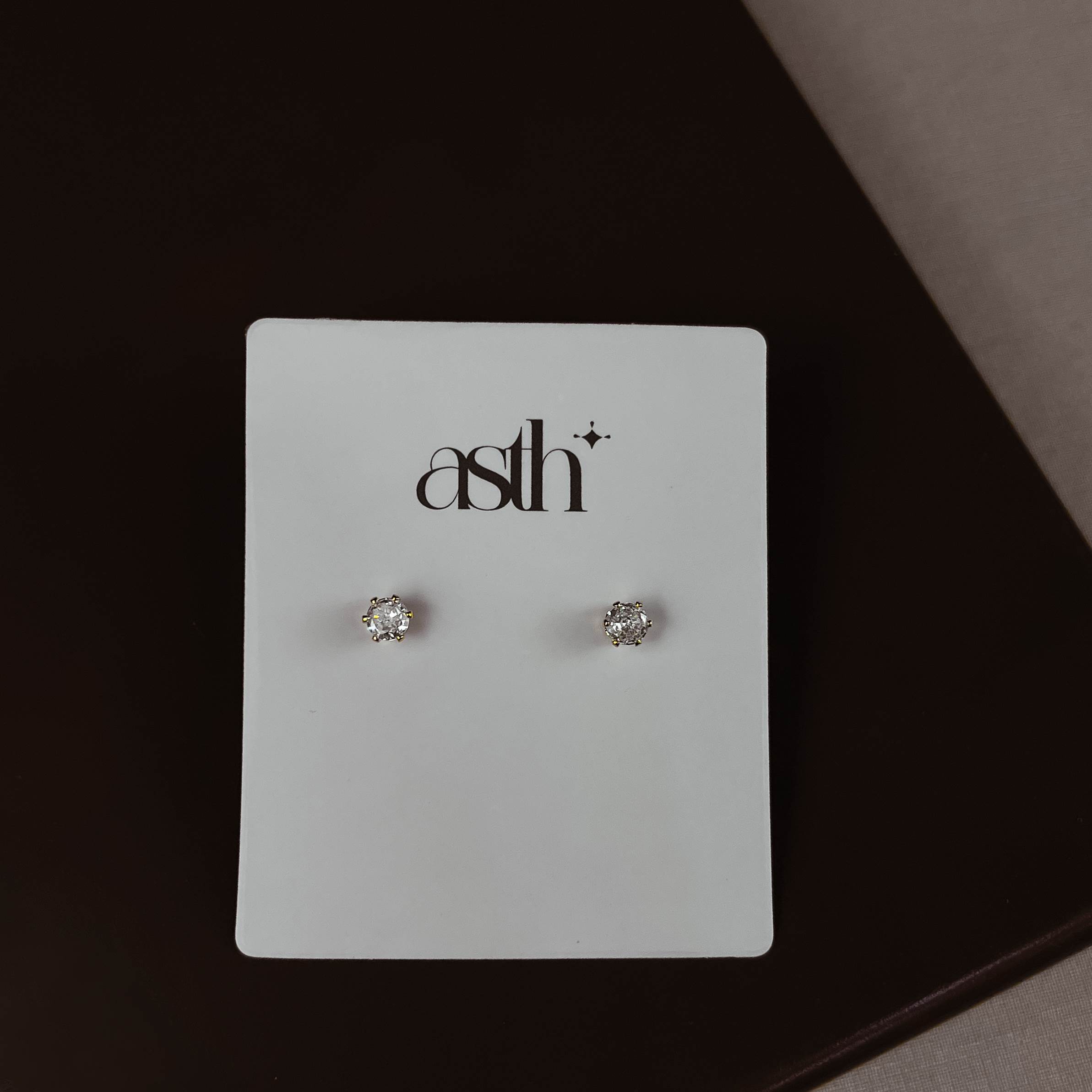Brinco zircônia redonda cristal caixa alta 4mm | asth