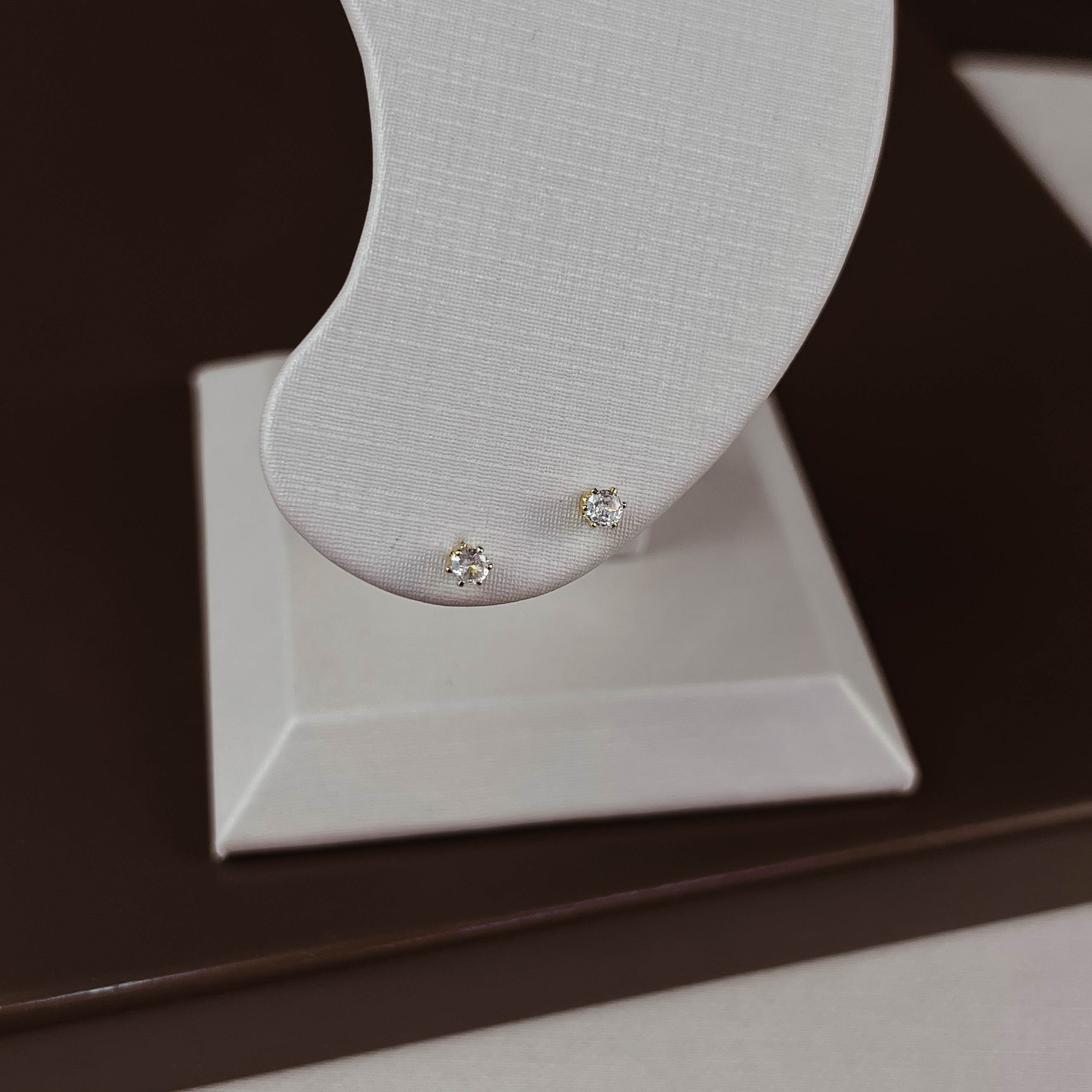 Brinco infantil zircônia redonda caixa alta 3mm tarraxa baby | asth