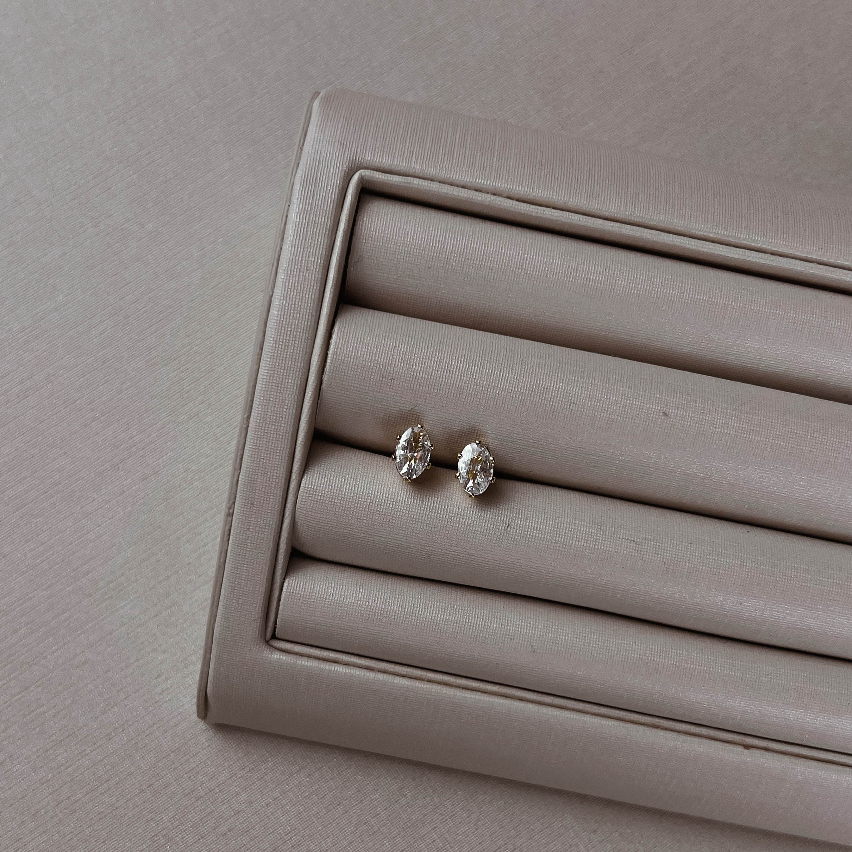 Brinco zircônia oval cristal caixa alta 7mm | asth