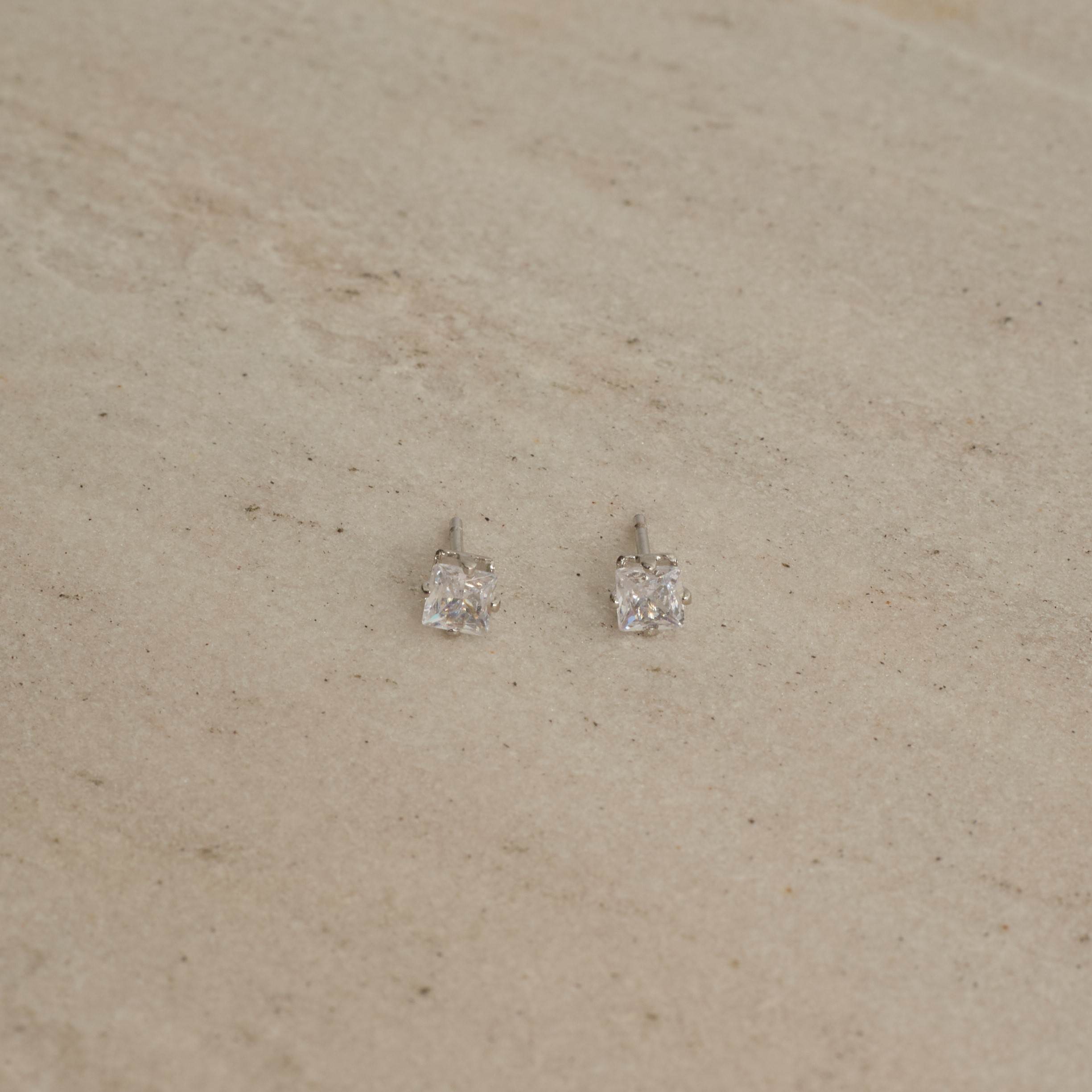 Brinco zircônia quadrada cristal caixa alta 4mm | asth