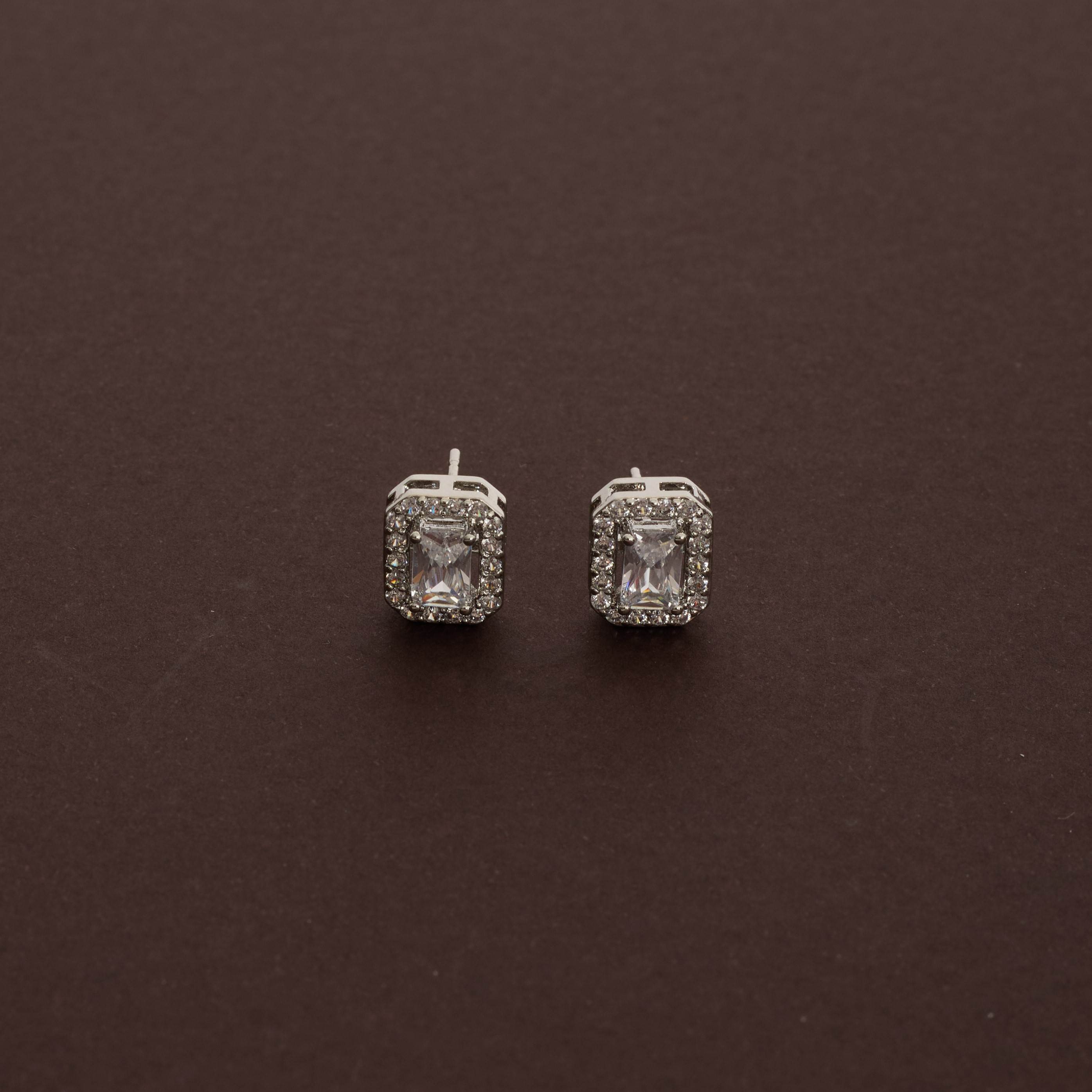 Brinco zircônia retangular com cravejado 10mm