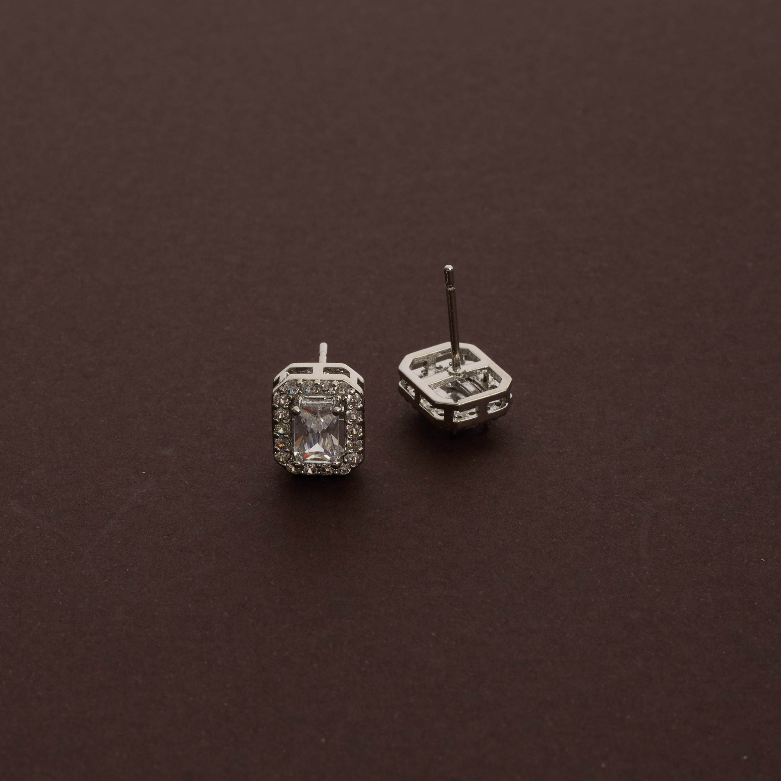 Brinco zircônia retangular com cravejado 10mm | asth