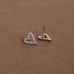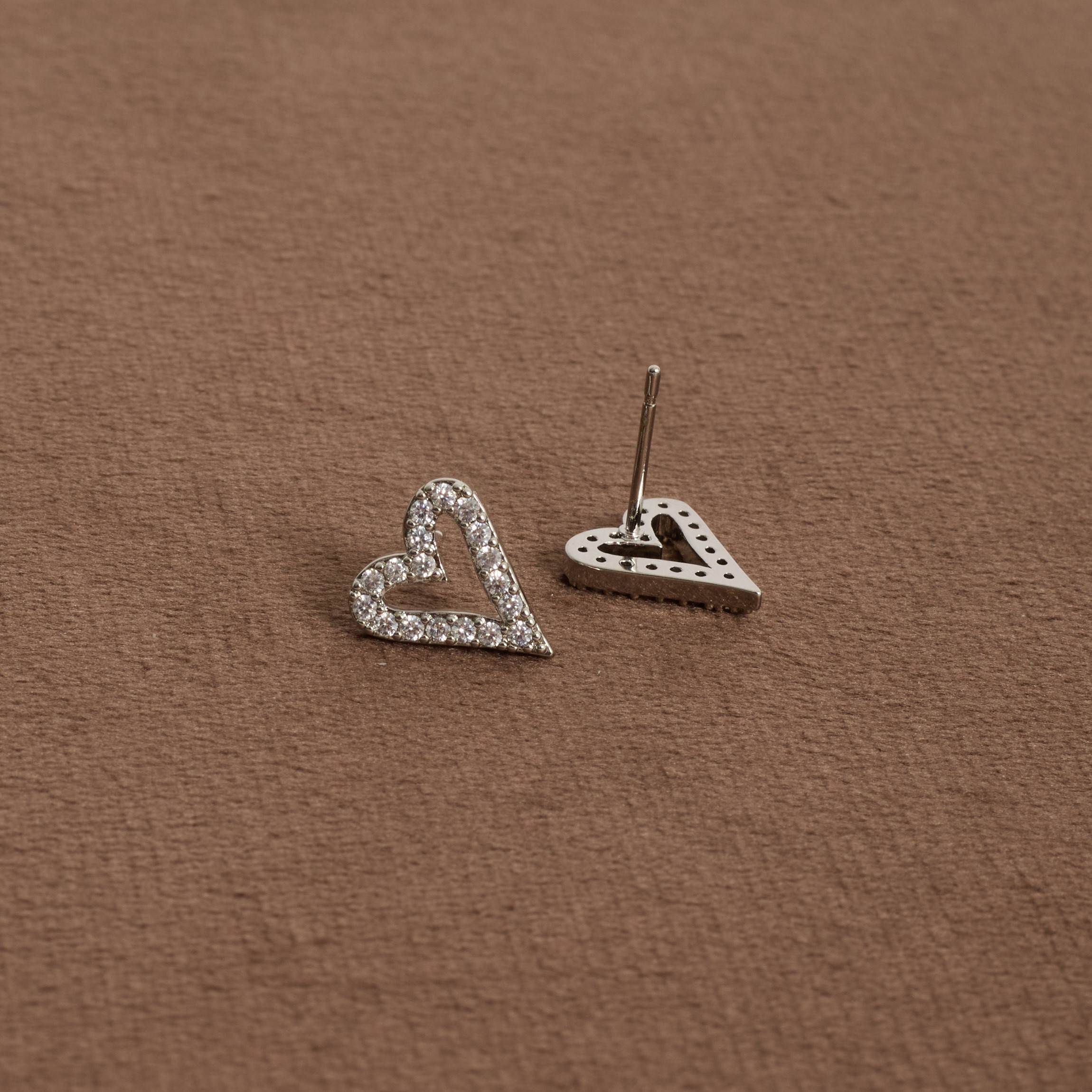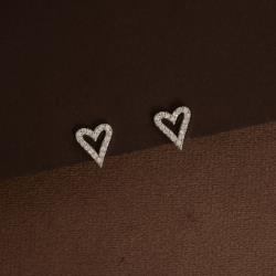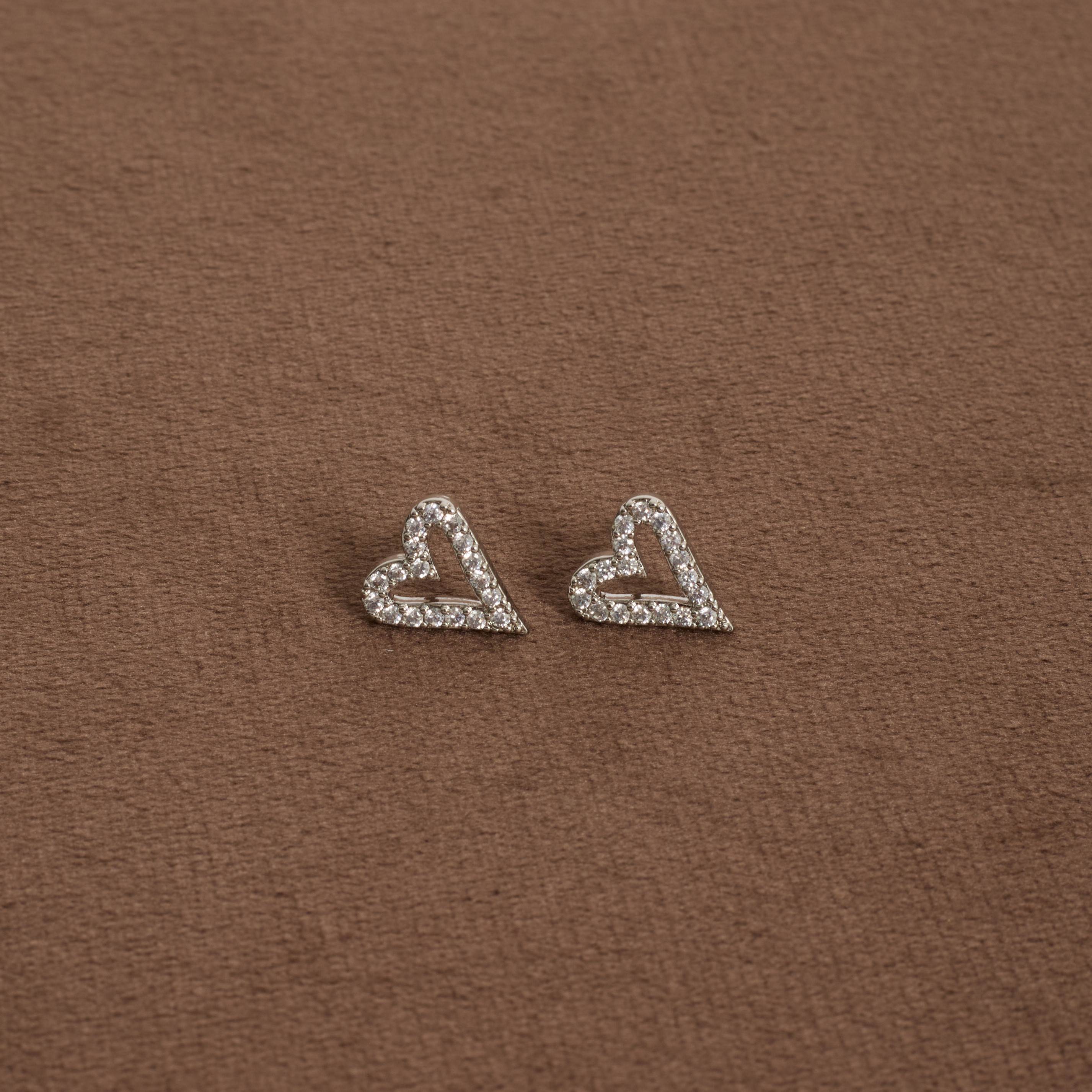 Brinco coração vazado alongado cravejado 12mm | asth
