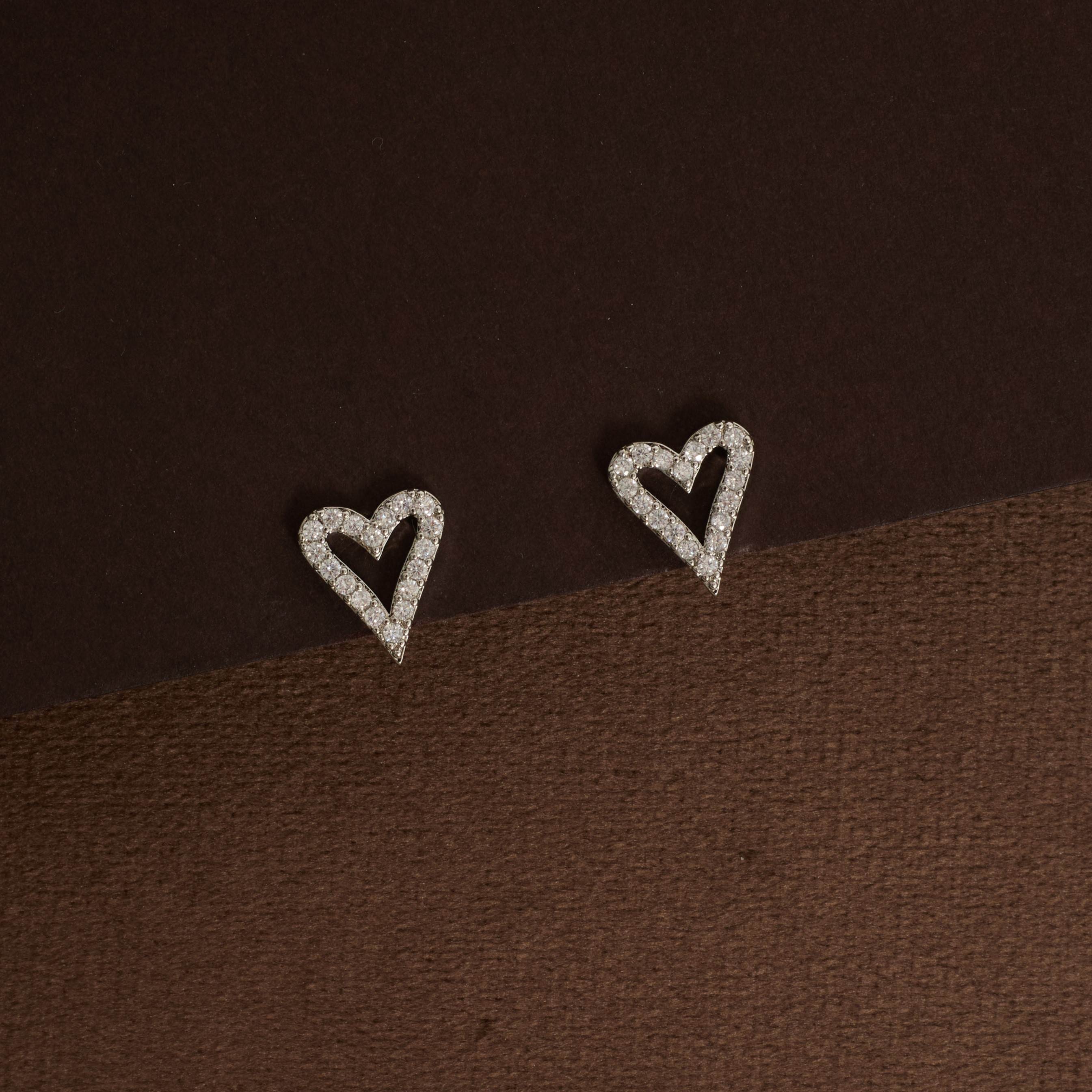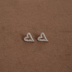 Brinco coração vazado alongado cravejado 12mm