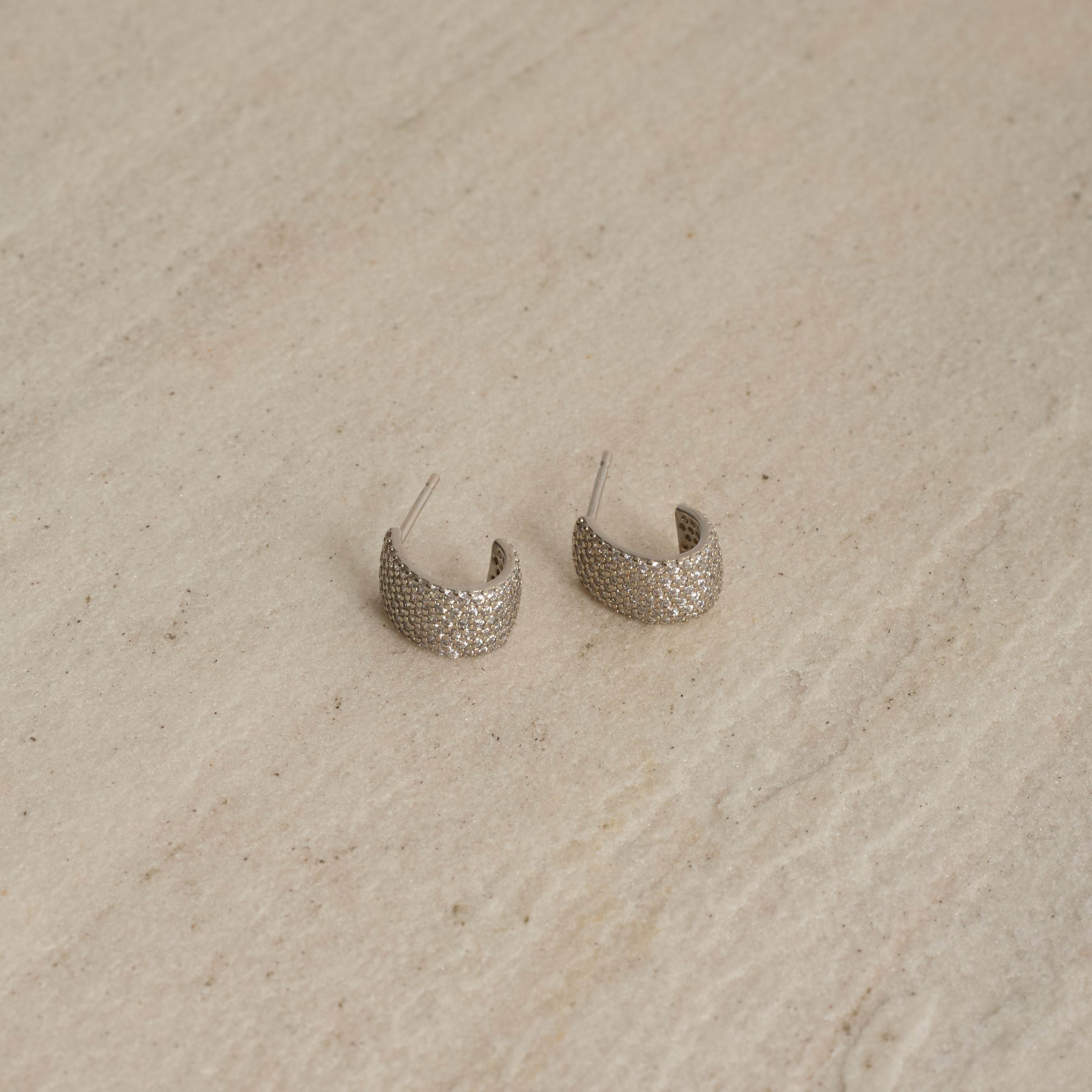 Brinco meia argola larga cravejada 12mm tarraxa | asth