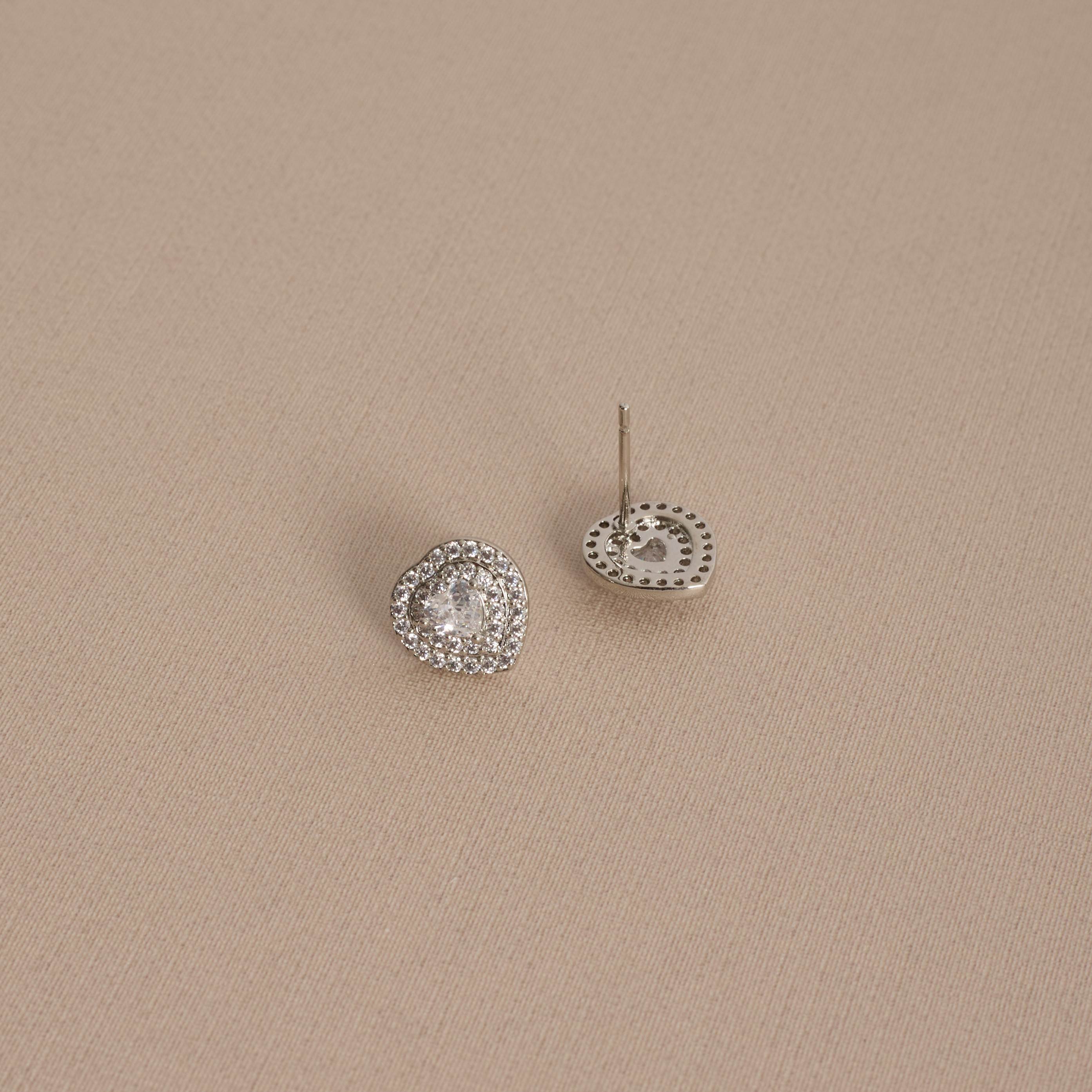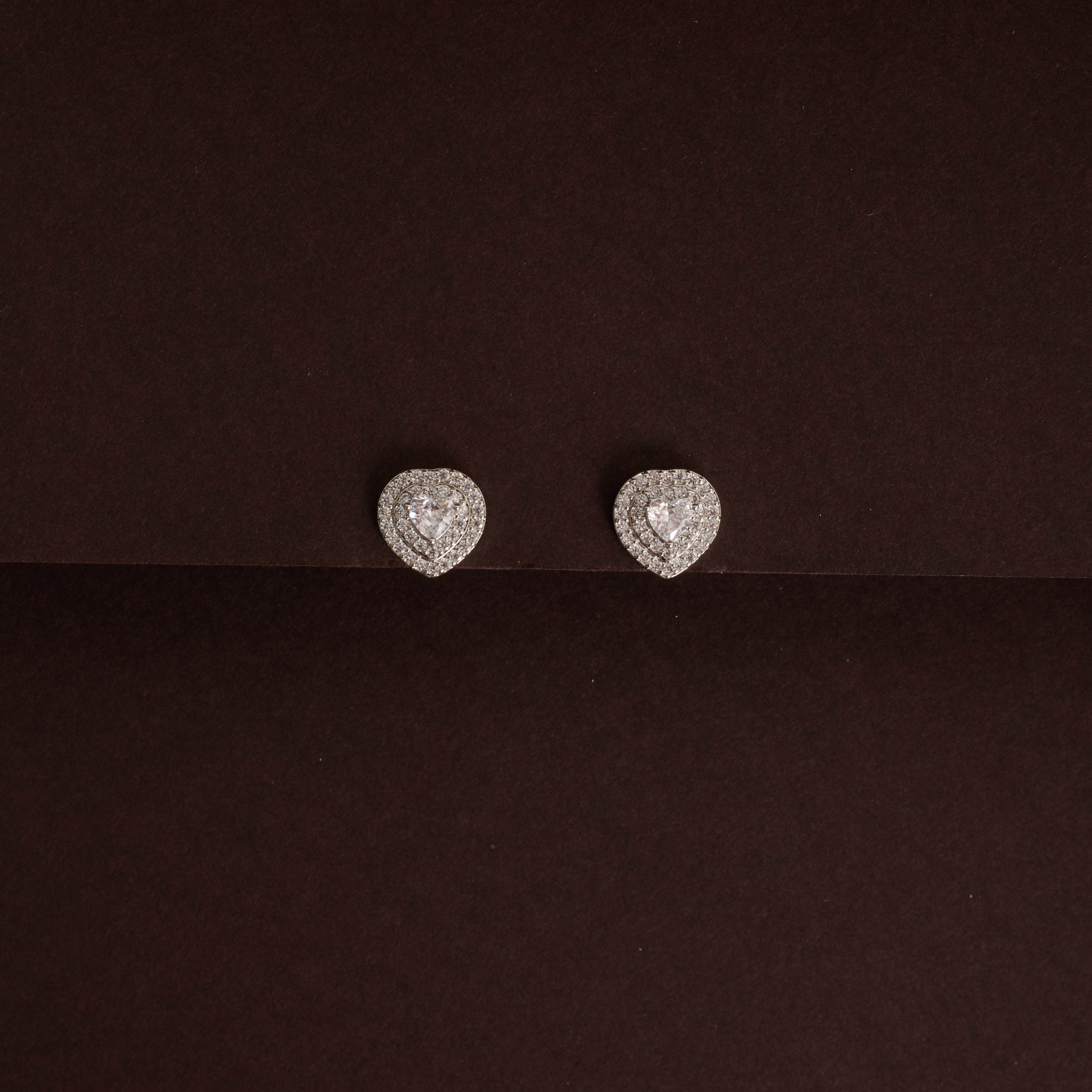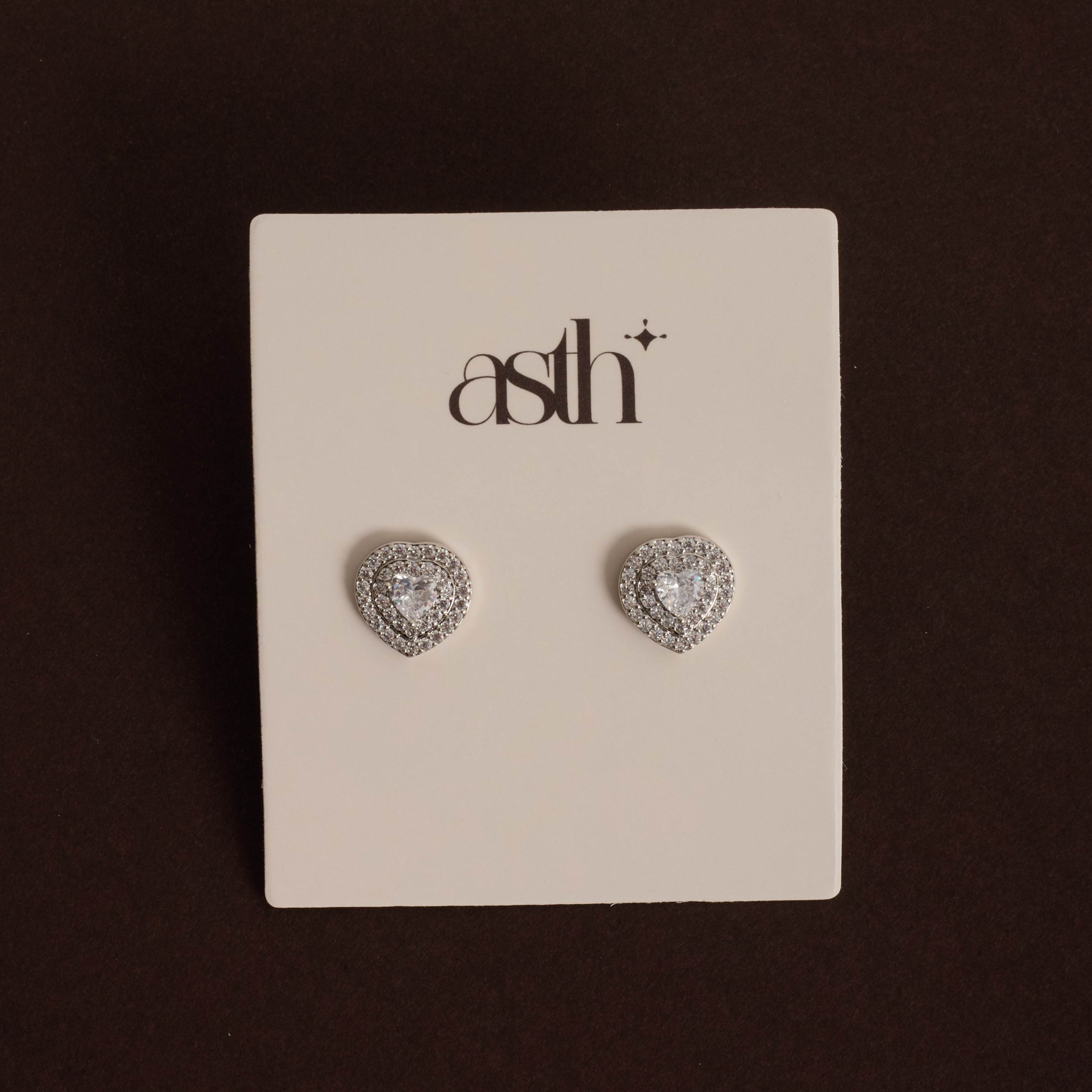 Brinco zircônia coração com duplo cravejado 10mm | asth