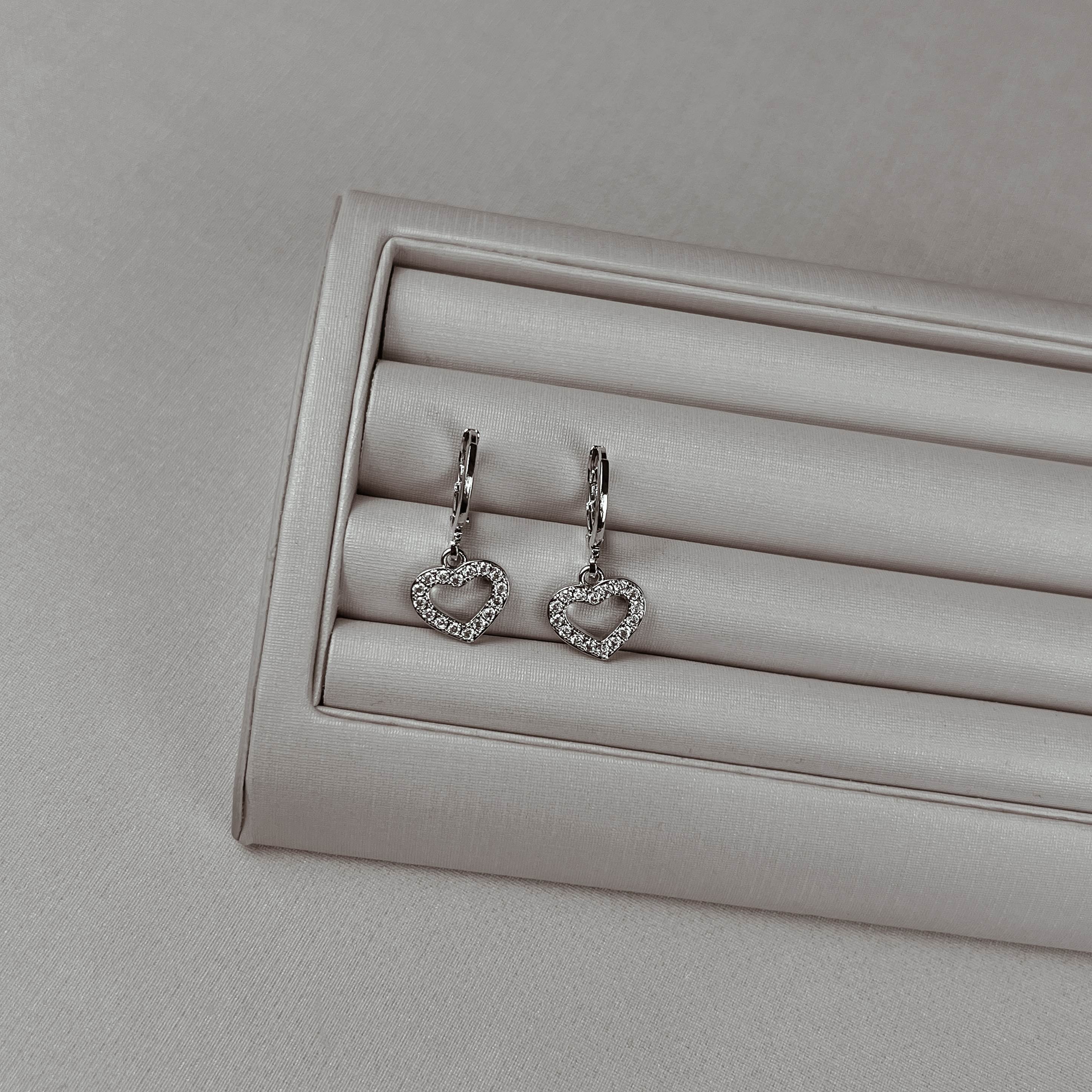 Argola 11mm pingente coração vazado cravejado