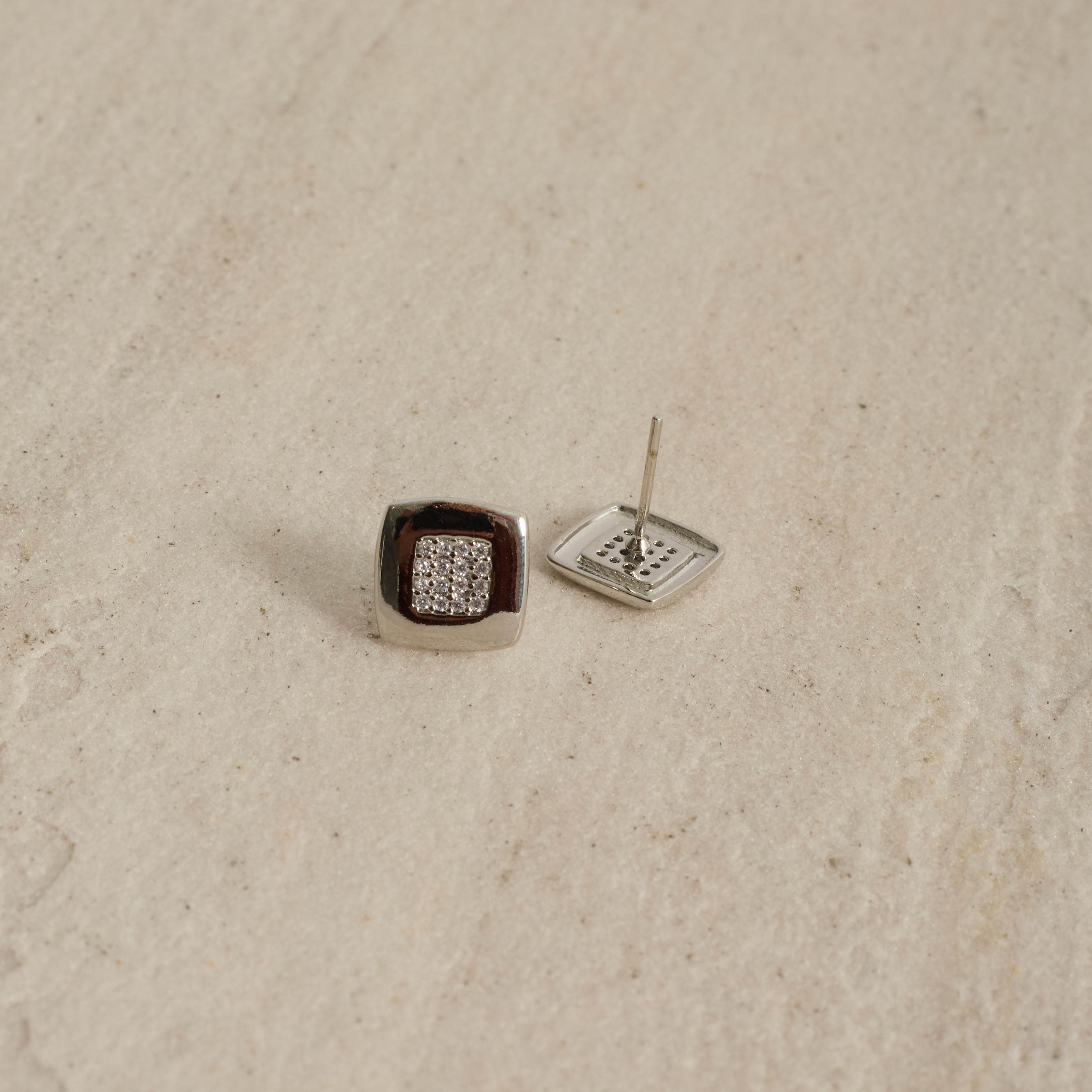 Brinco quadrado com cravejado 10mm | asth