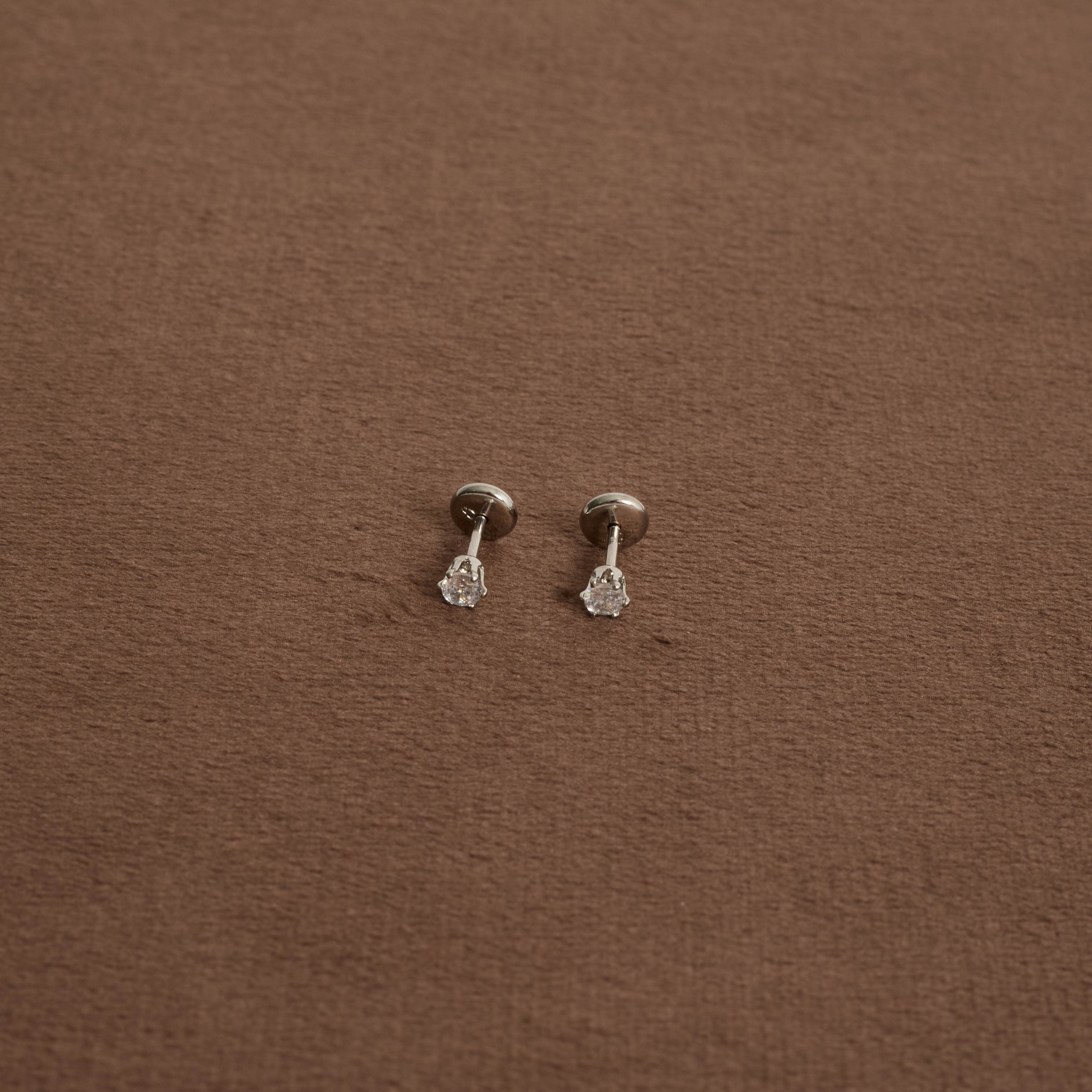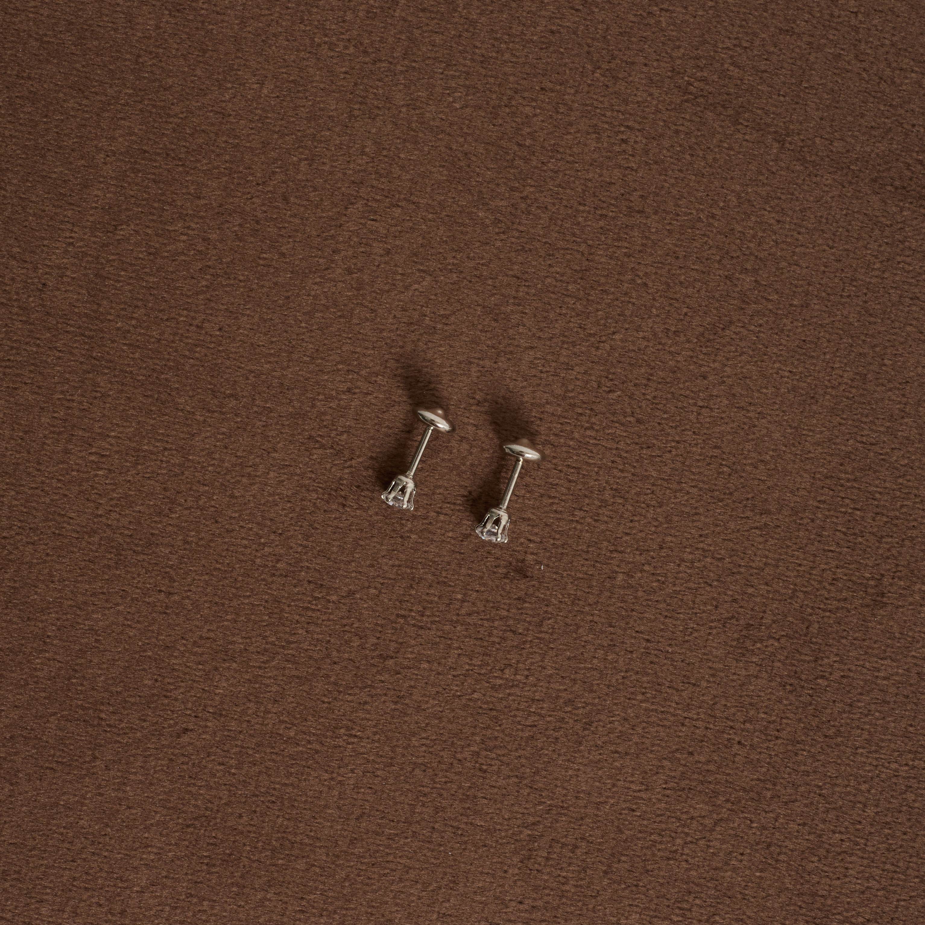 Brinco infantil zircônia redonda caixa alta 3mm tarraxa baby | asth