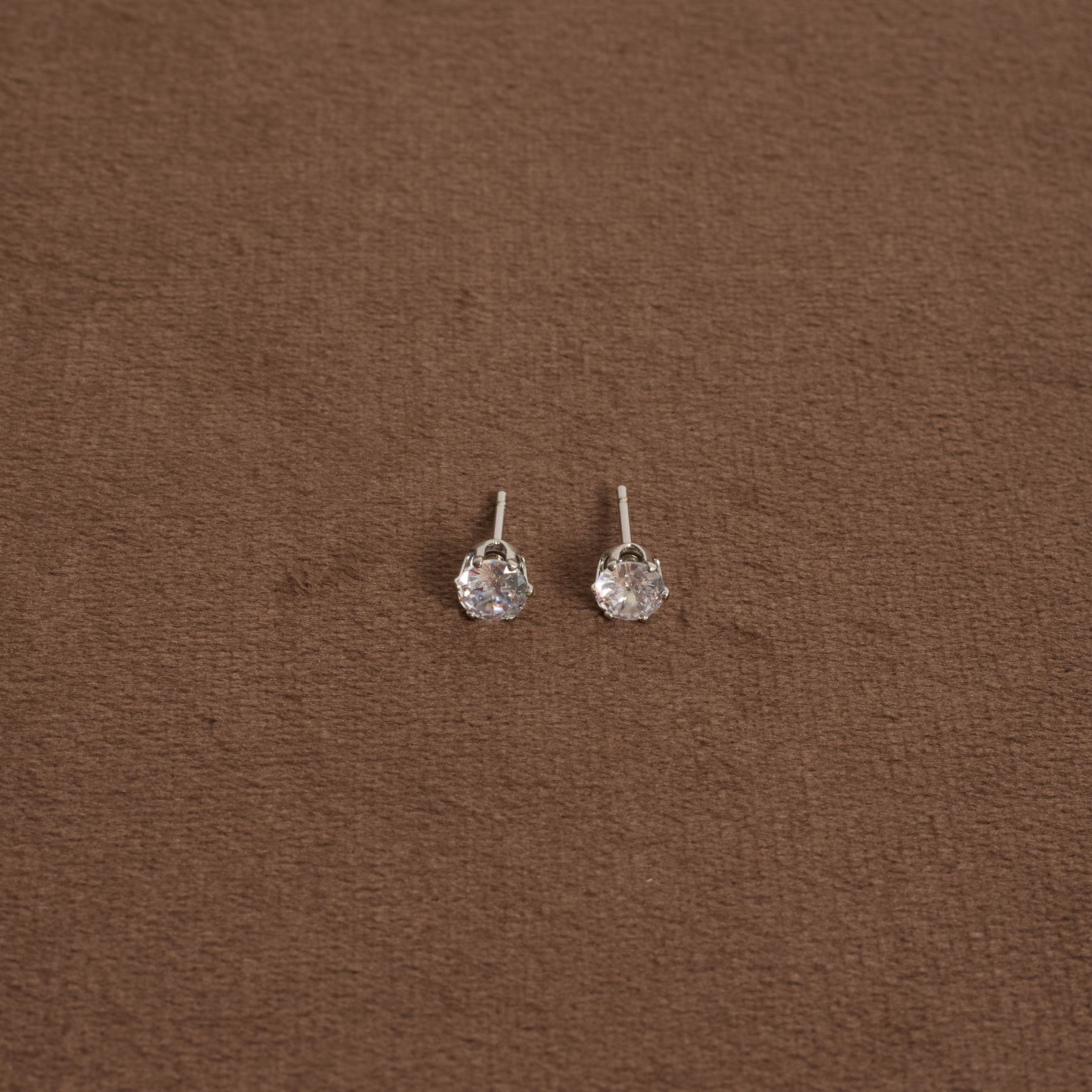 Brinco zircônia redonda cristal caixa alta 5mm | asth