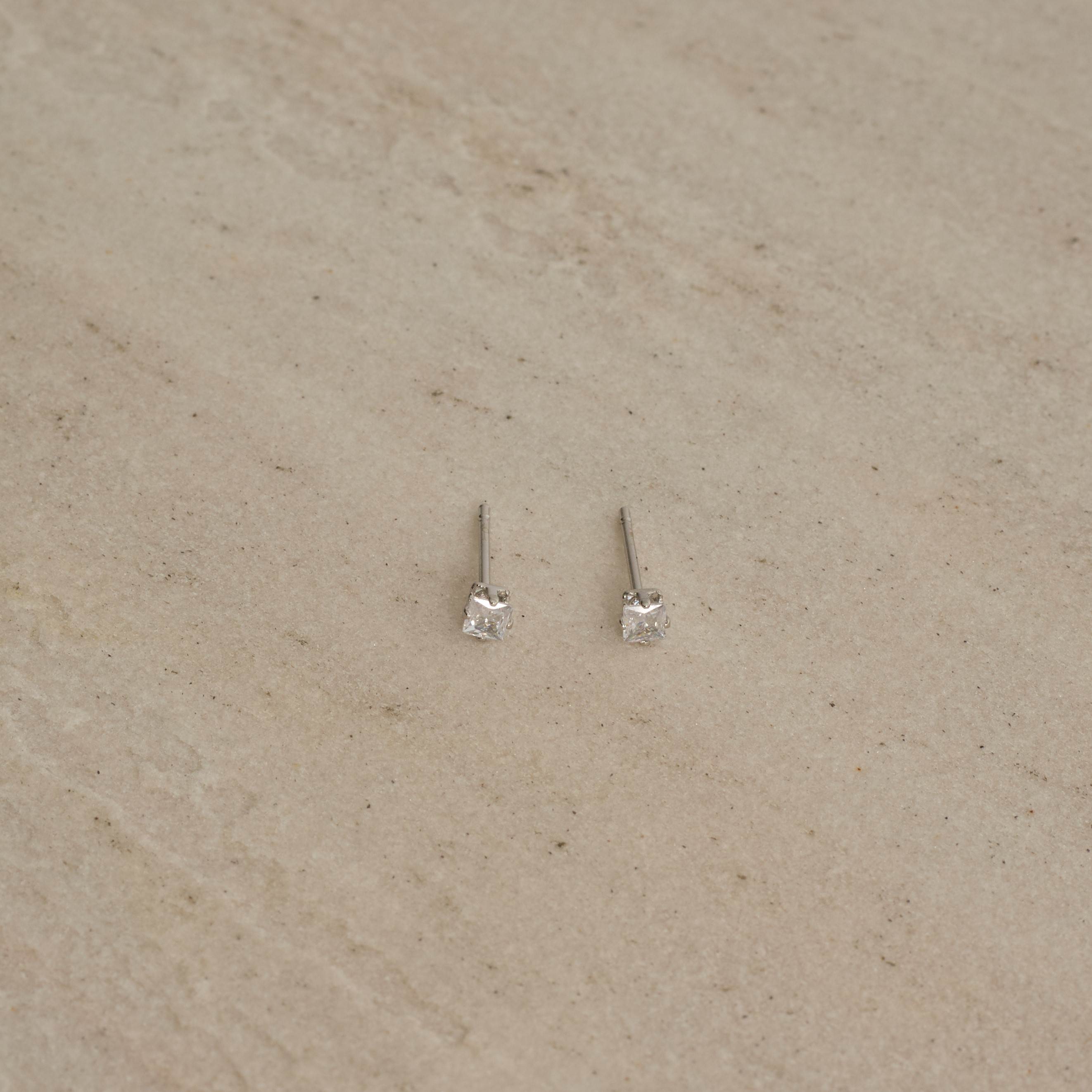 Brinco zircônia quadrada cristal caixa alta 3mm | asth