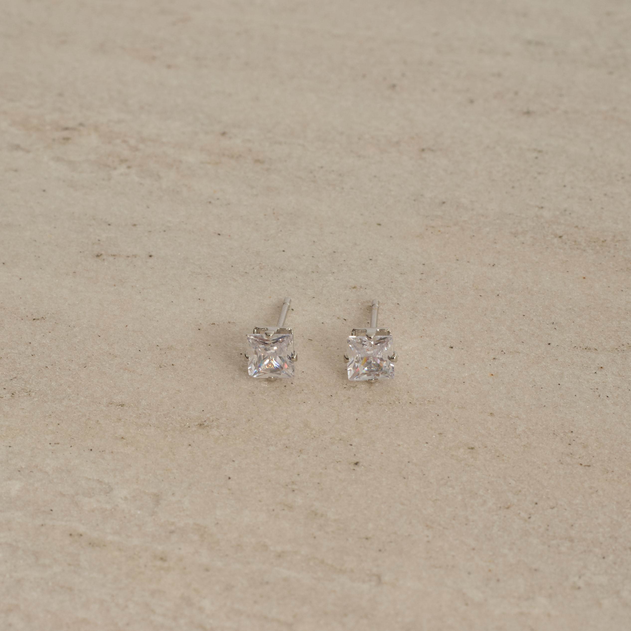 Brinco zircônia quadrada cristal caixa alta 5mm | asth