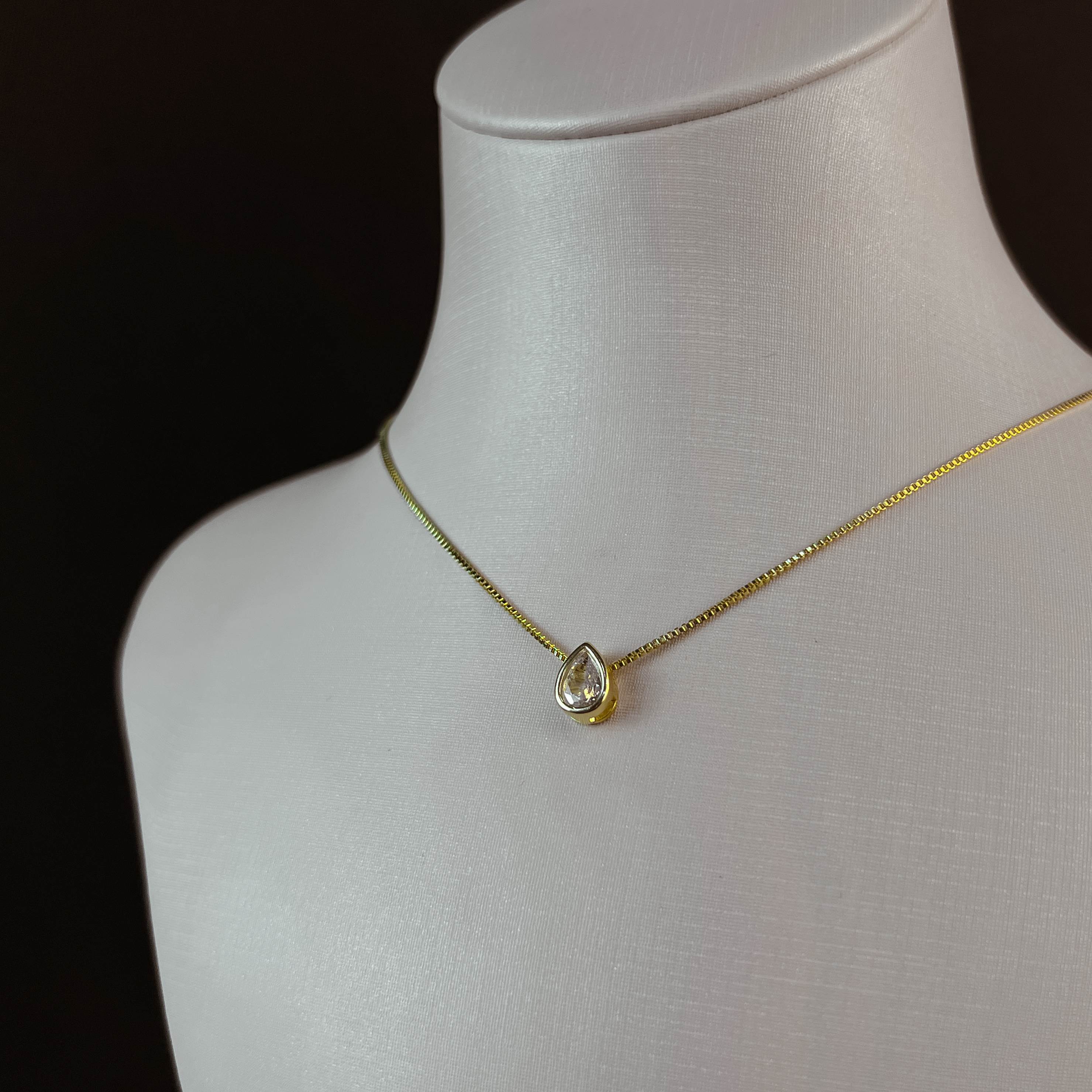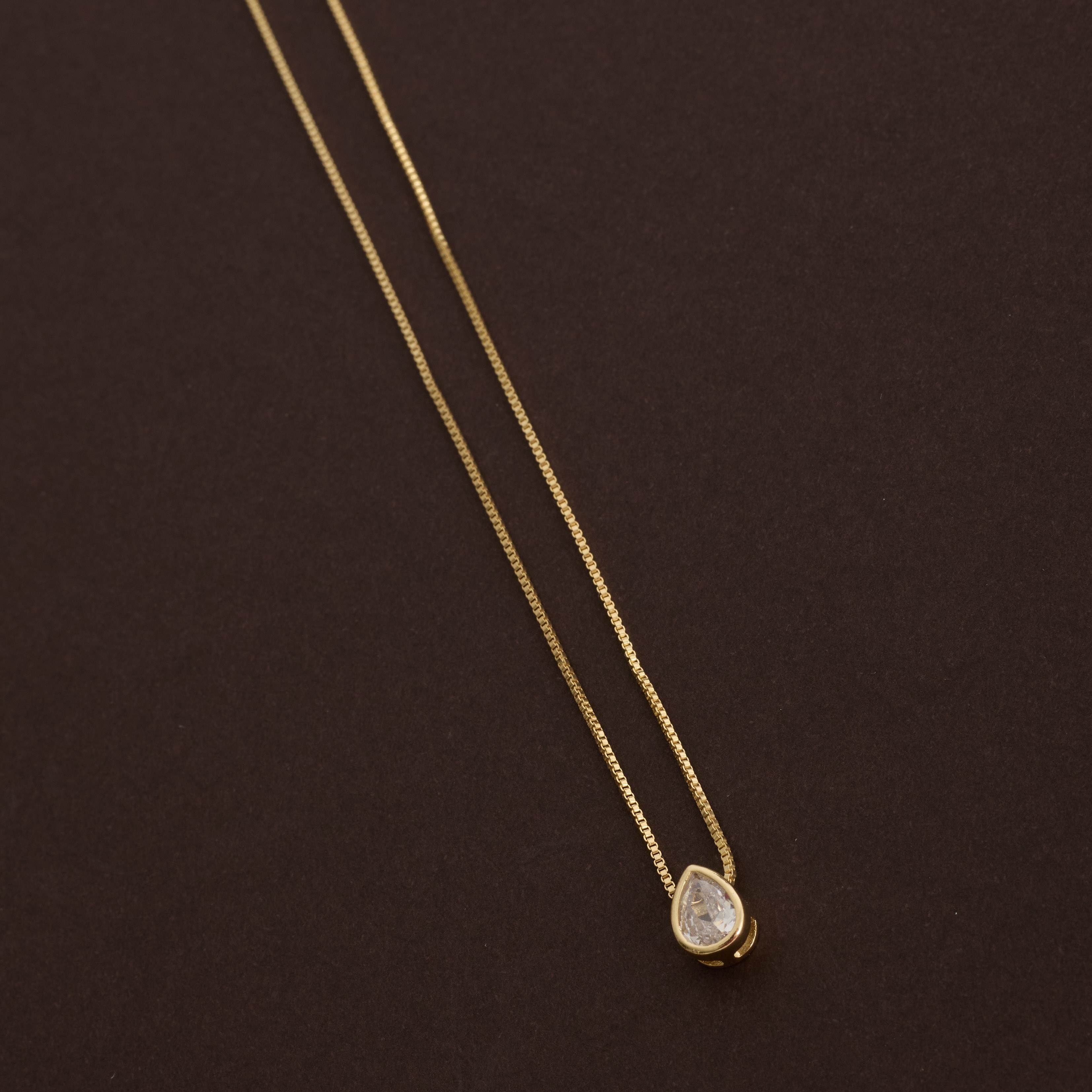 Colar zircônia gota embutida 8mm 45cm com alongadora