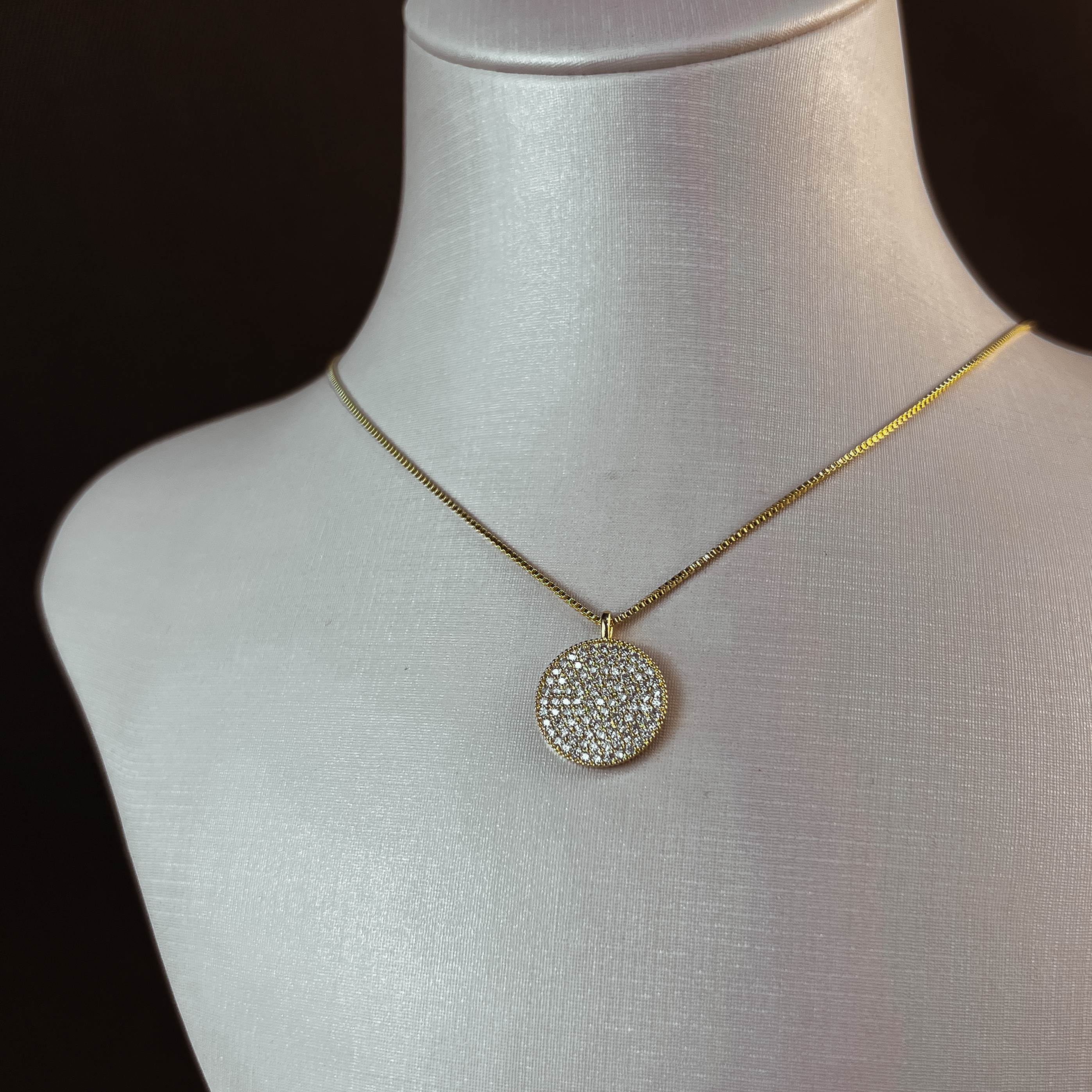 Colar pingente botão cravejado 14mm 45cm com alongadora