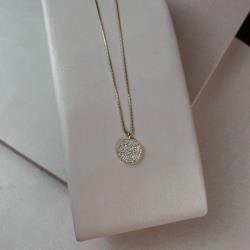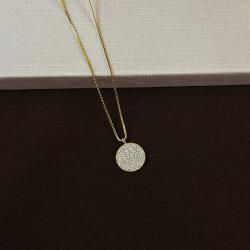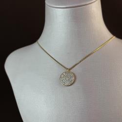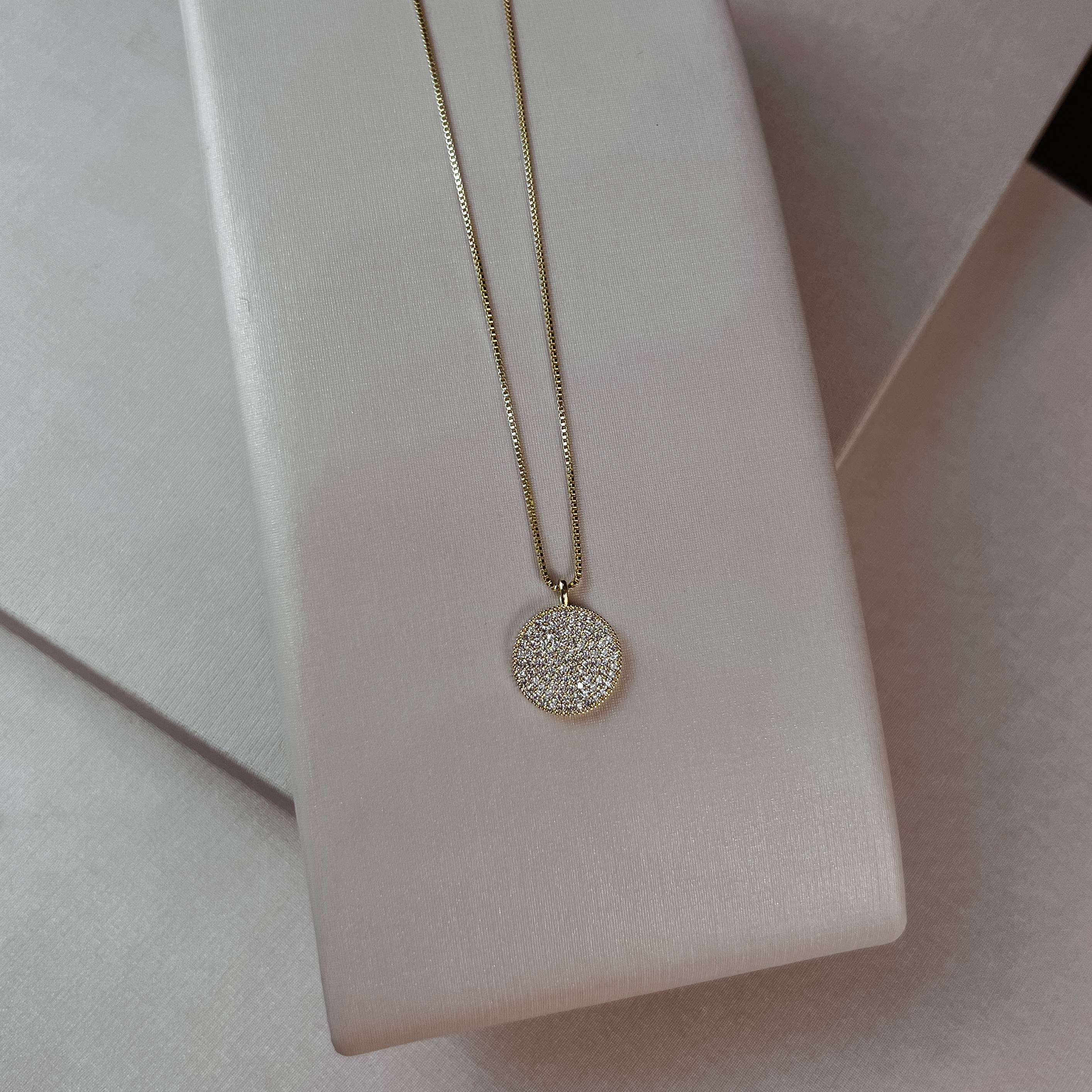 Colar pingente botão cravejado 14mm 45cm com alongadora | asth