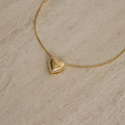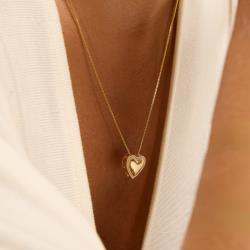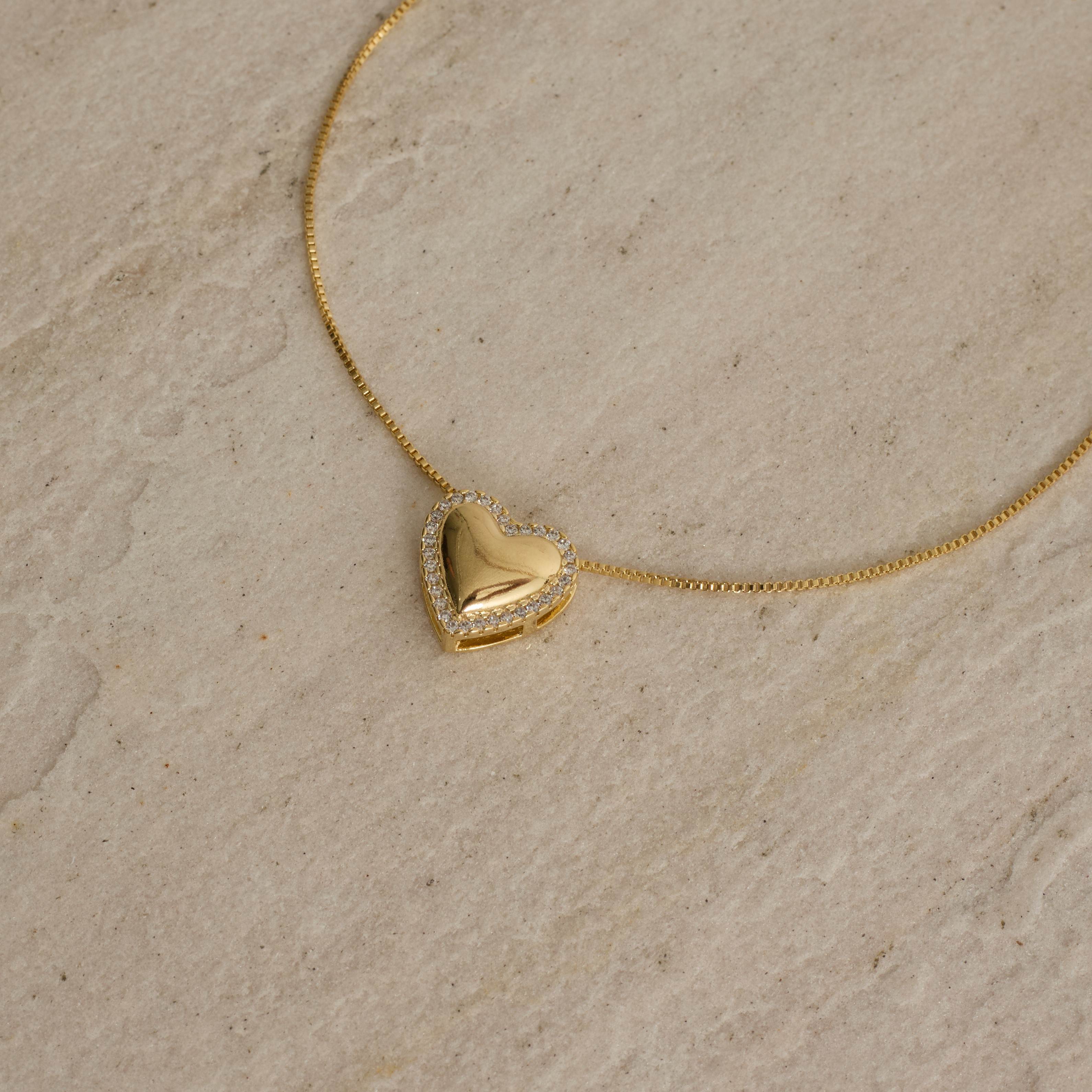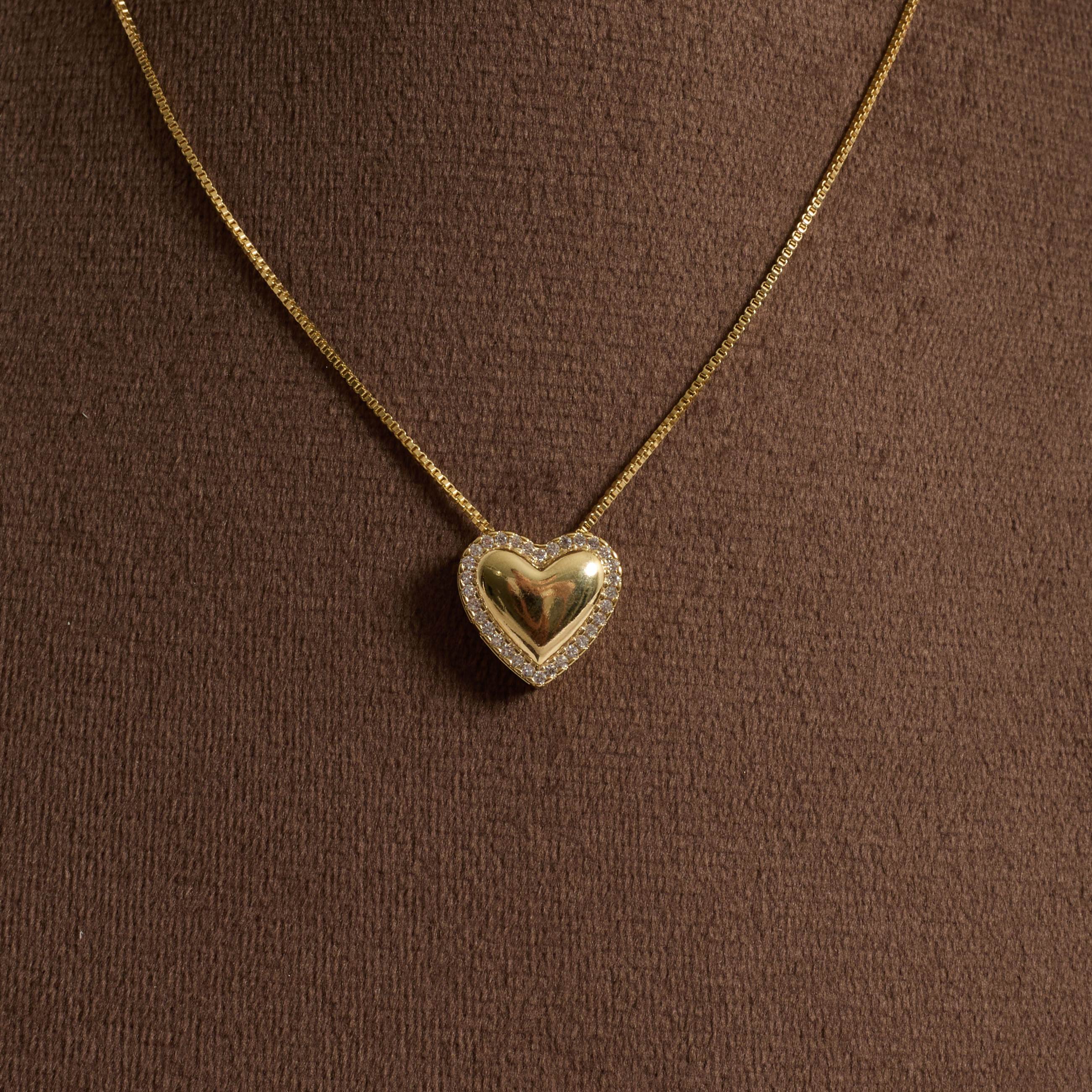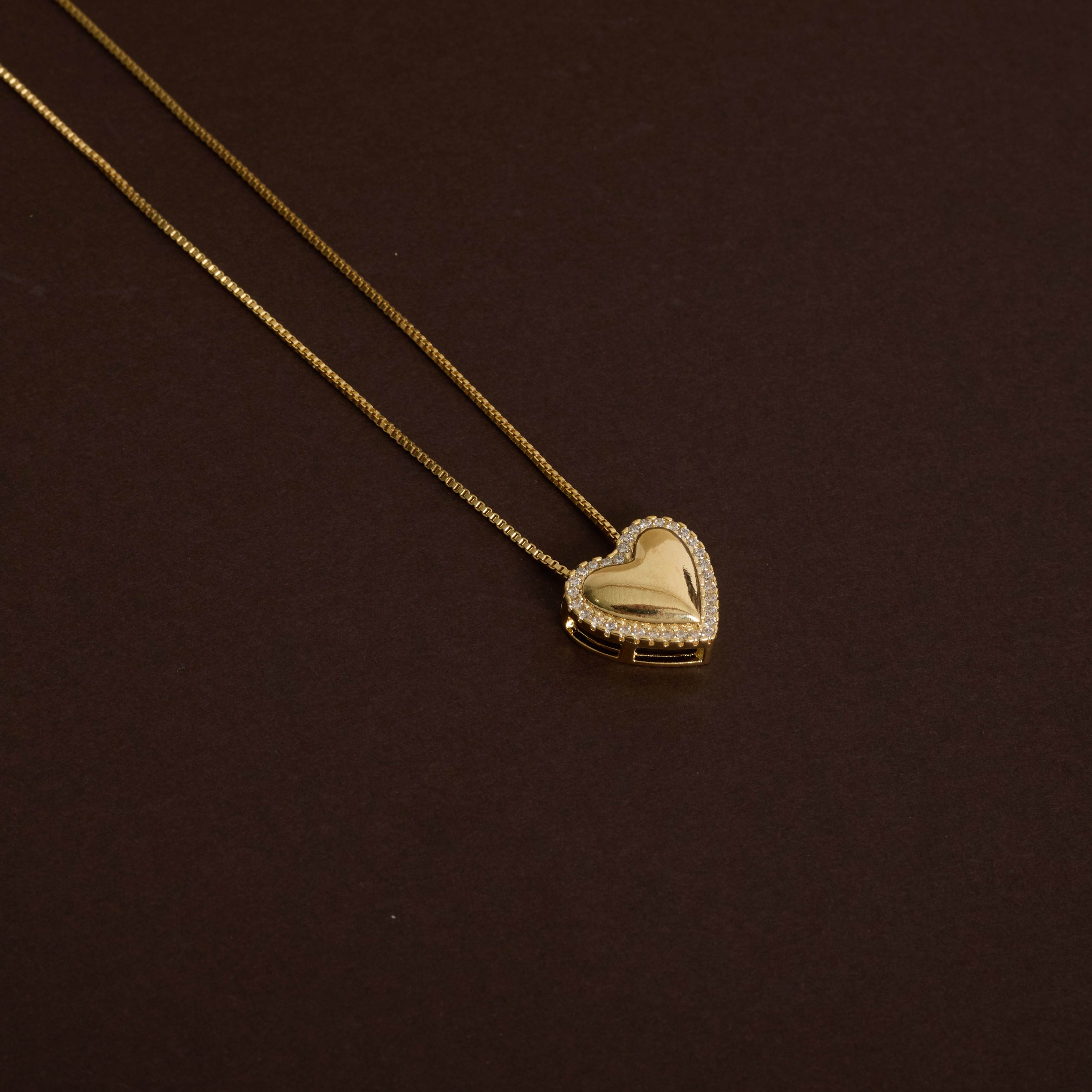 Colar coração borda cravejada 14mm 45cm com alongadora