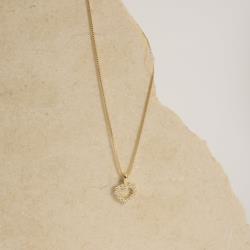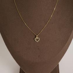 Colar pingente coração vazado cravejado 11mm 45cm com alongadora