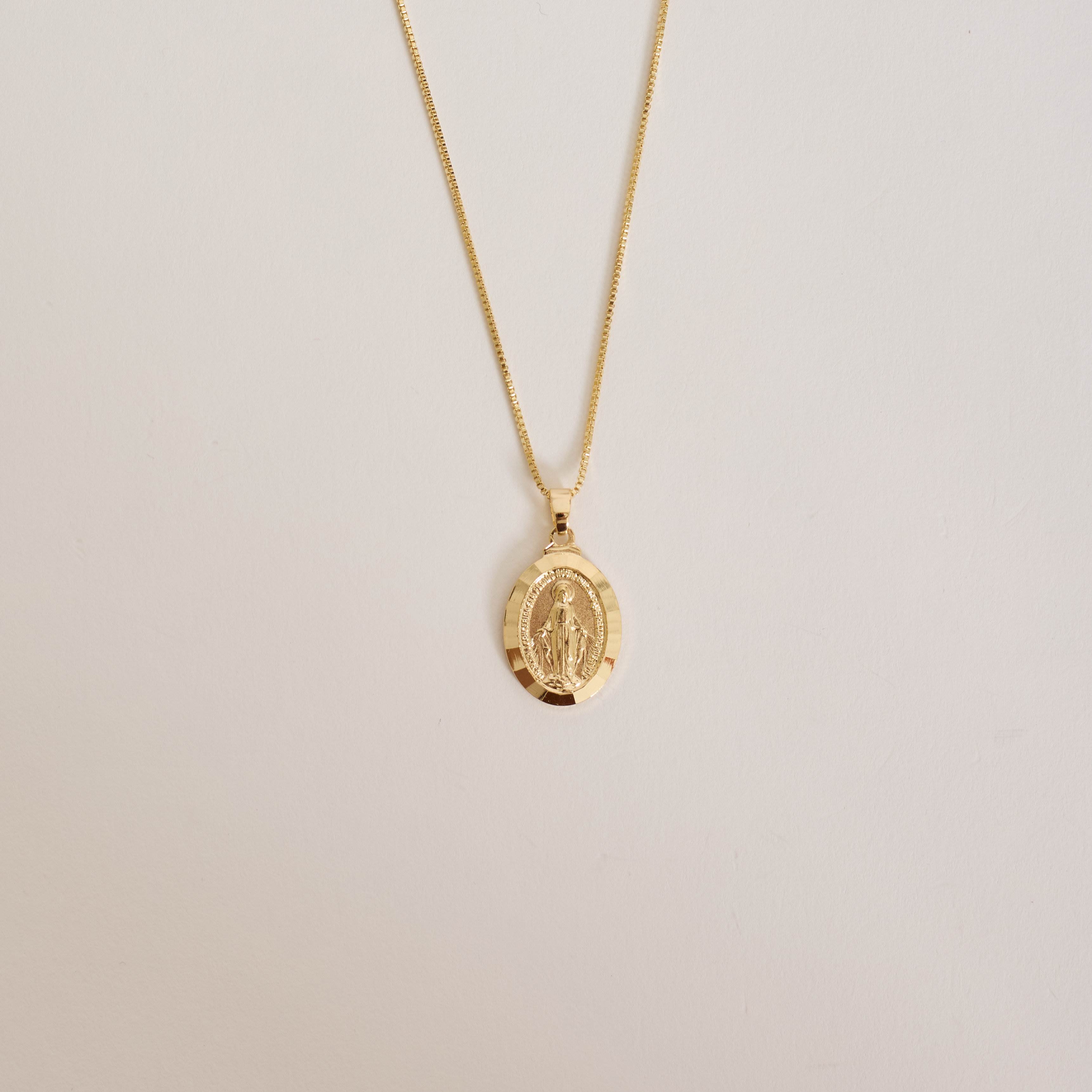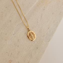 Colar pingente medalha oval Nsa. Sra. das Graças 18mm 45cm com alongadora | asth