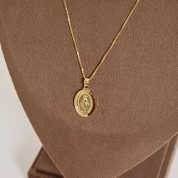 Colar pingente medalha oval Nsa. Sra. das Graças 18mm 45cm com alongadora
