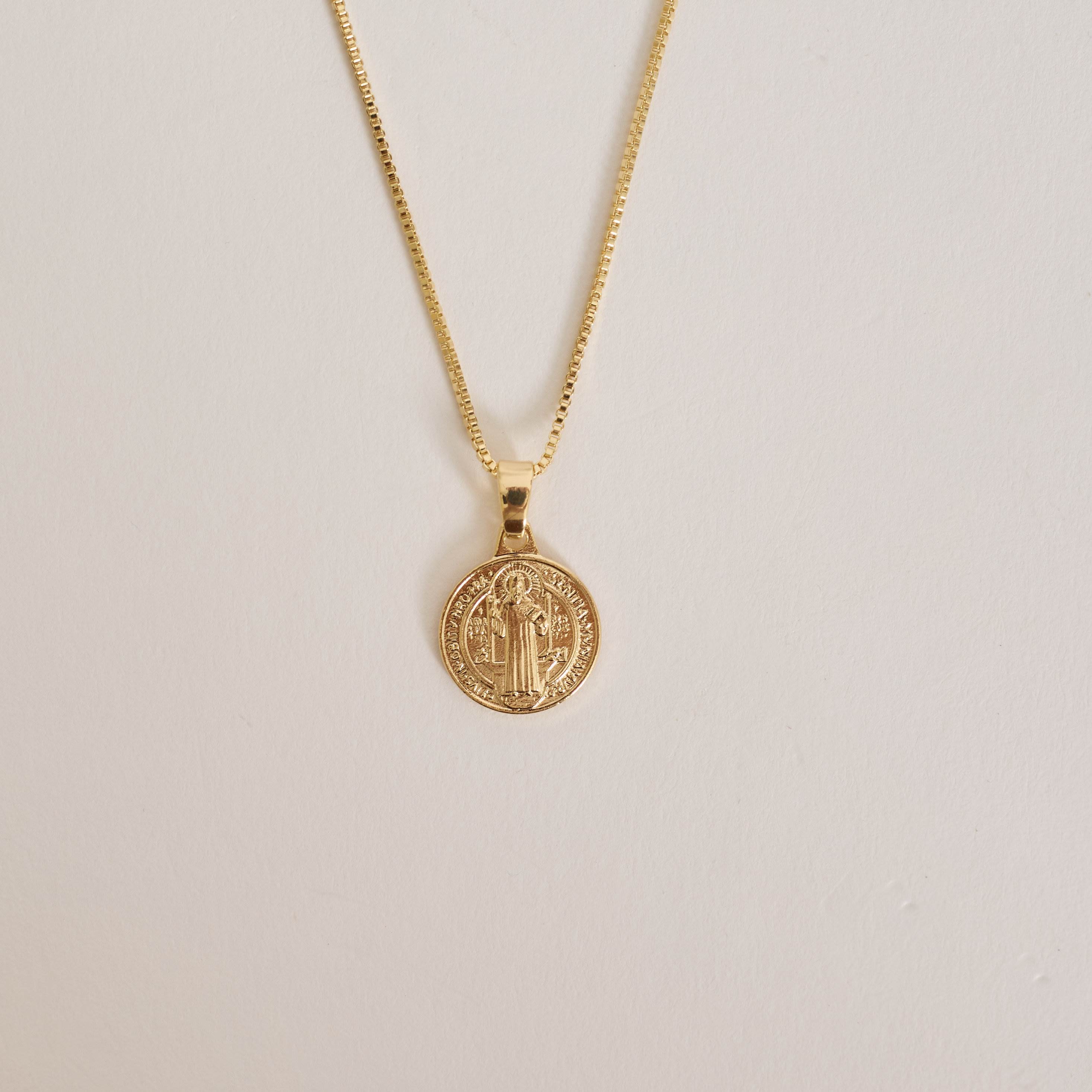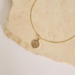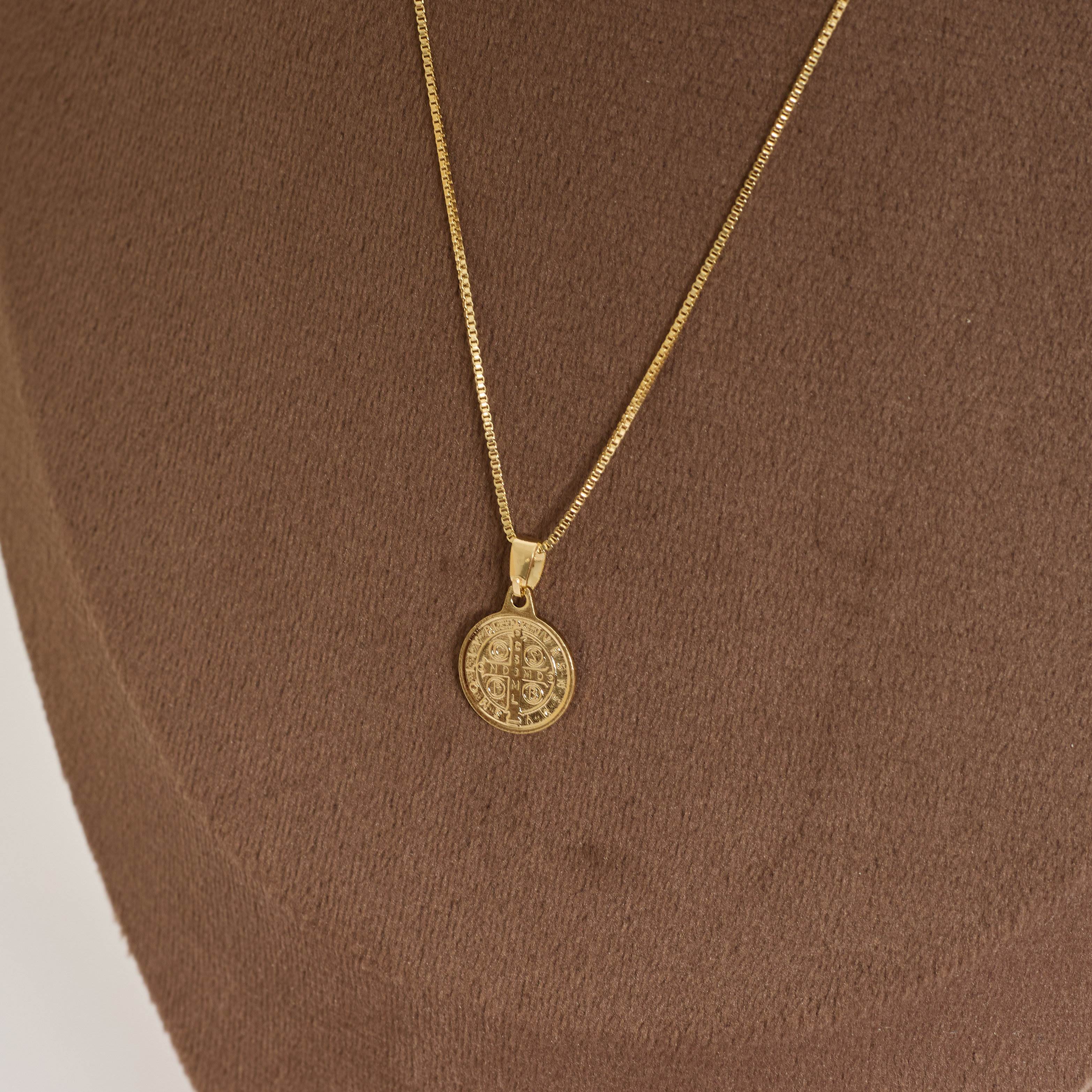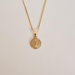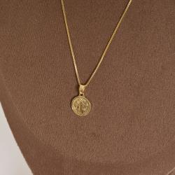 Colar pingente medalha redonda São Bento 12mm 40cm com alongadora