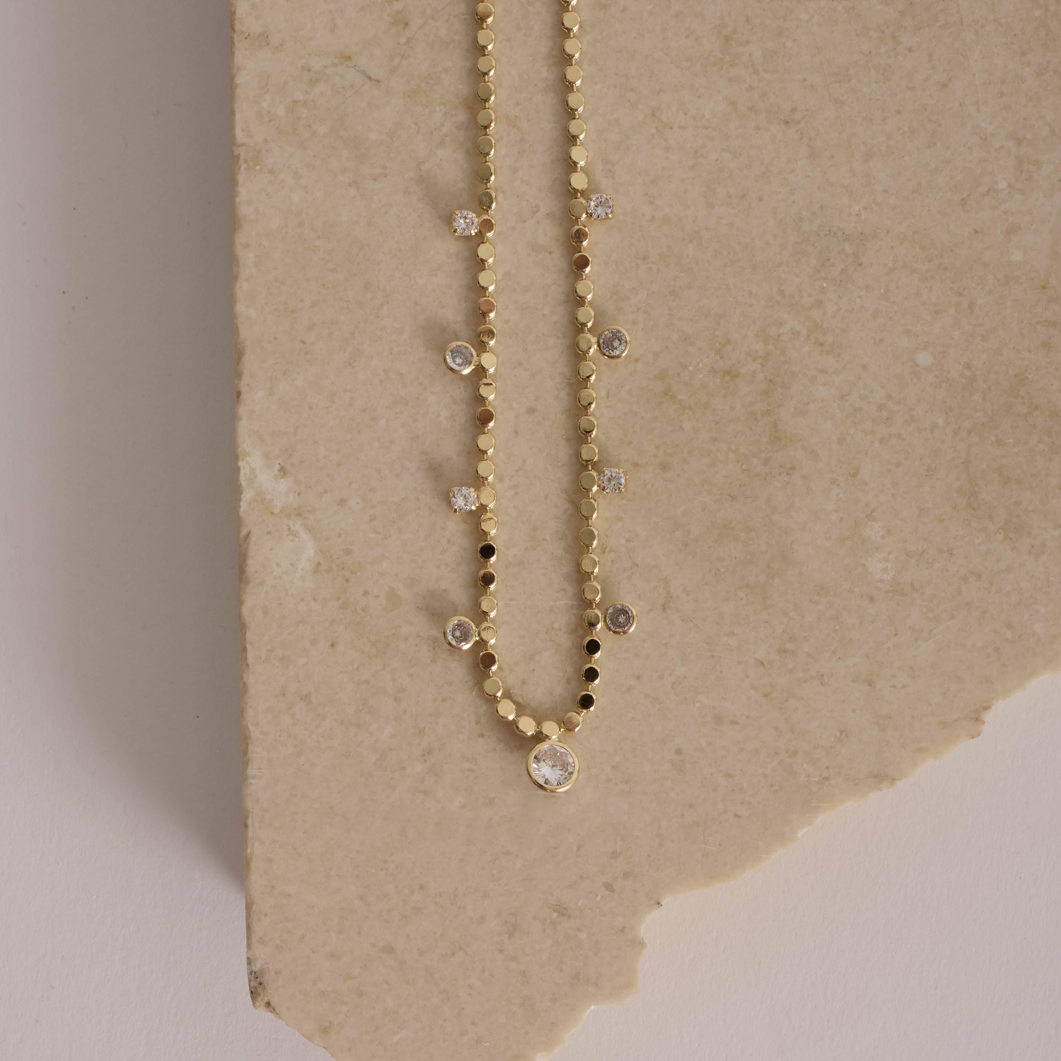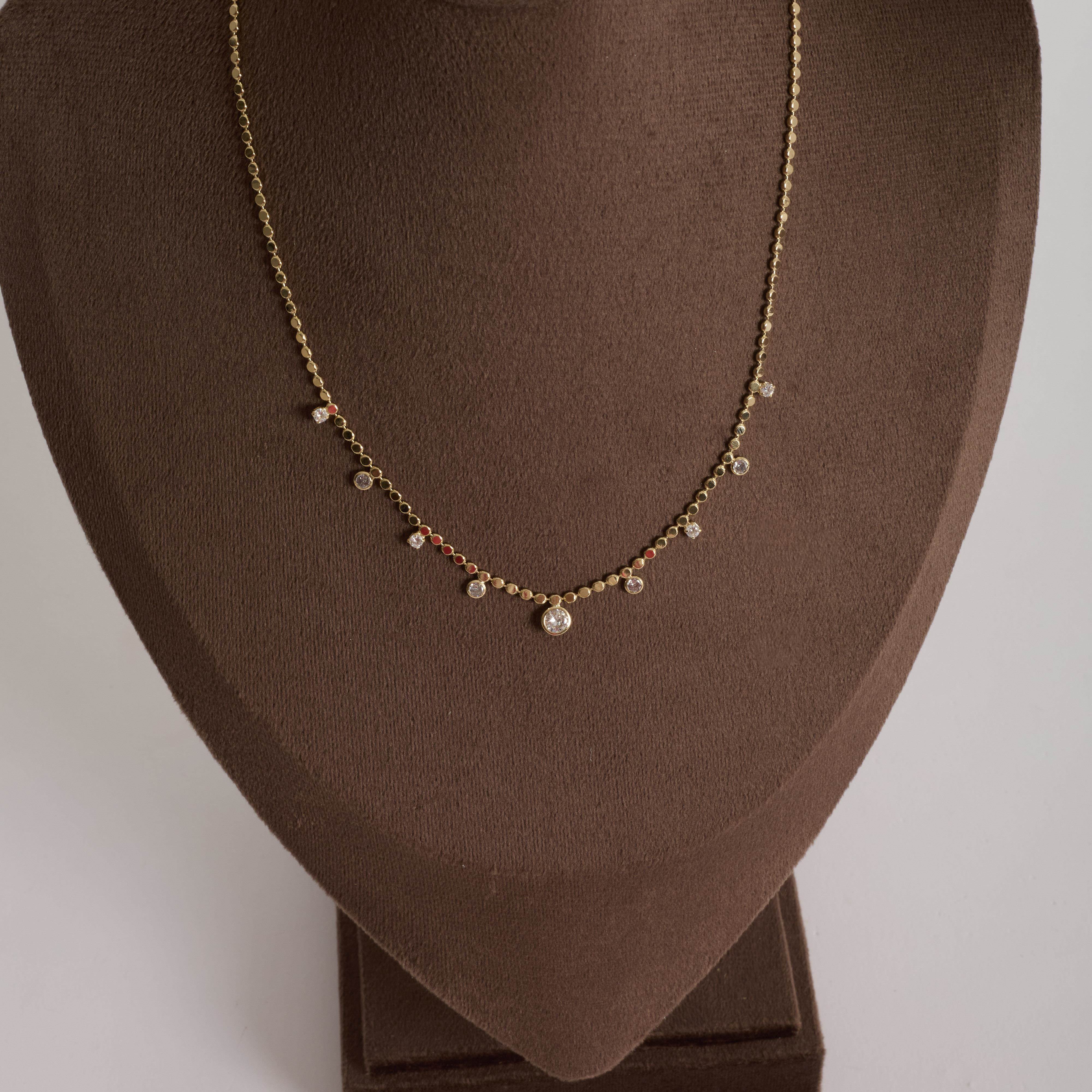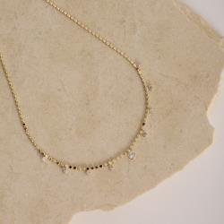 Colar fio bolinhas com pingentes zircônia 40cm com alongadora | asth