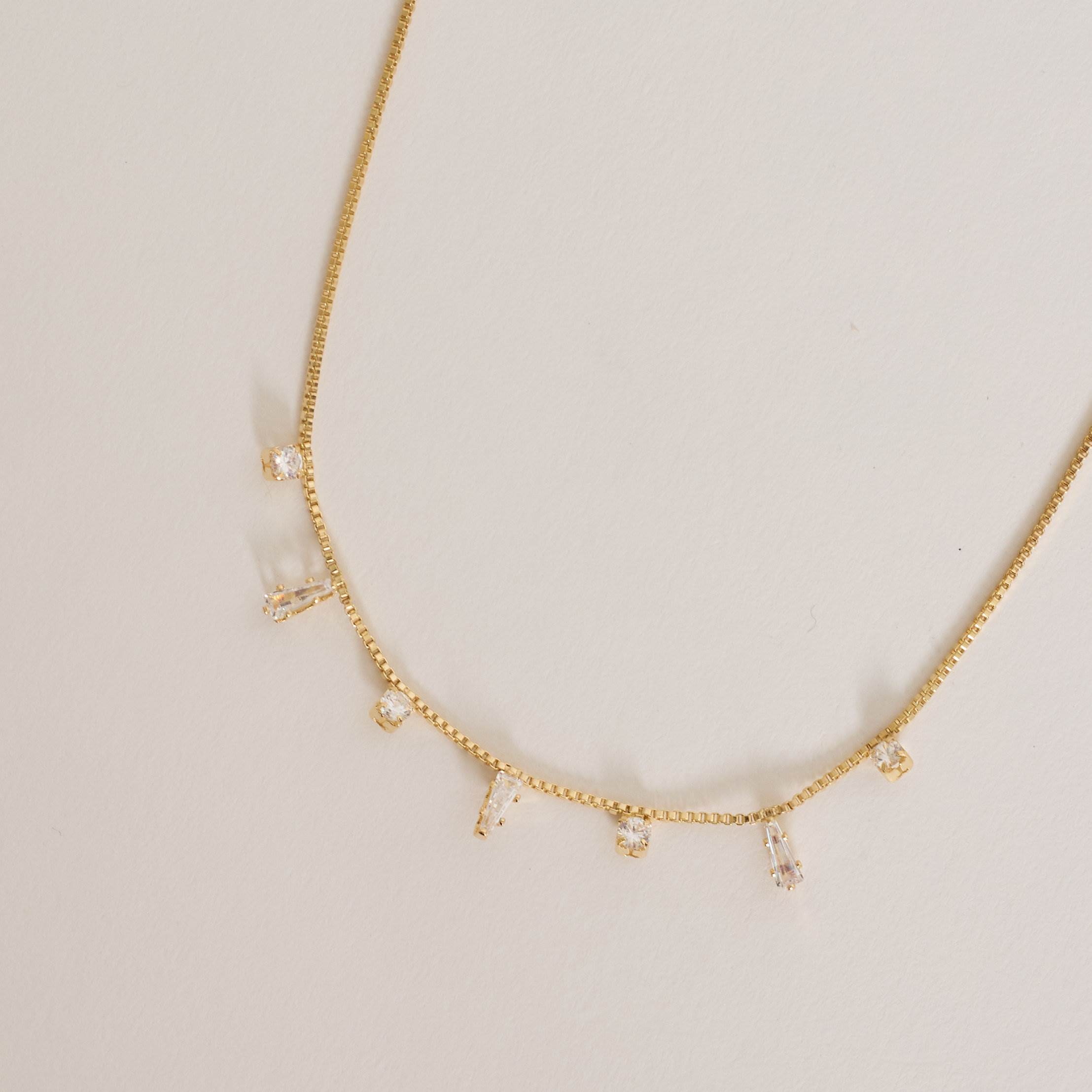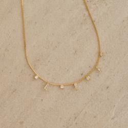 Colar pingentes zircônias triângulo e redonda 40cm com alongadora | asth