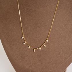 Colar pingentes zircônias triângulo e redonda 40cm com alongadora