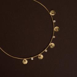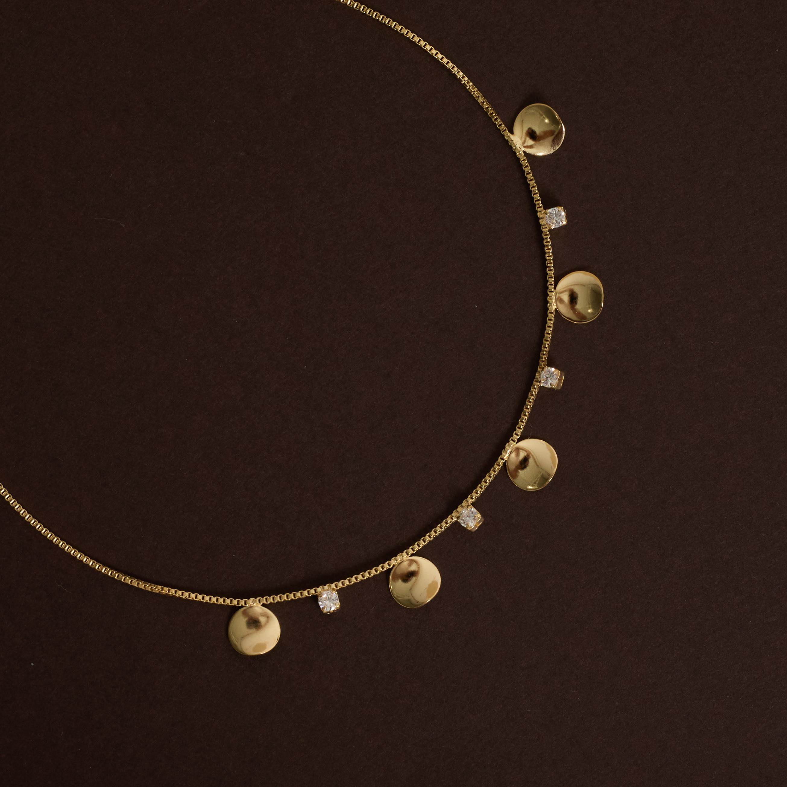 Colar pingentes zircônias e medalhas 40cm com alongadora