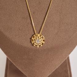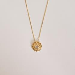 Colar pingente medalha vazada com zircônia 17mm 45cm com alongadora