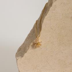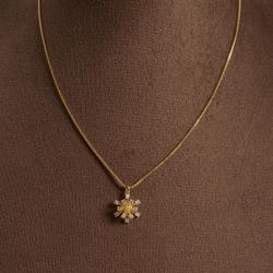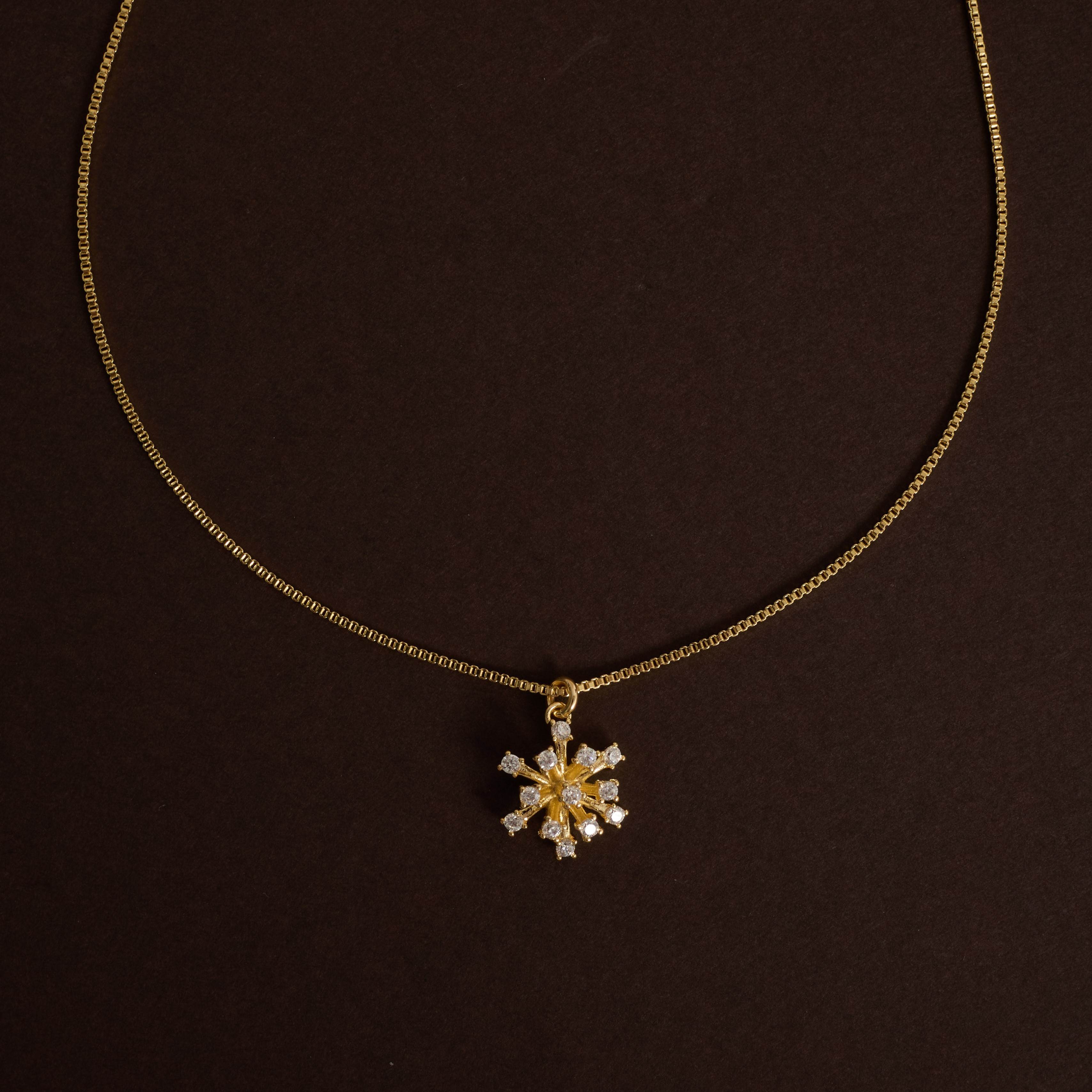 Colar pingente flor com zircônias 12mm 45cm com alongadora