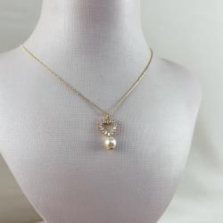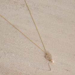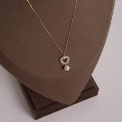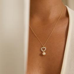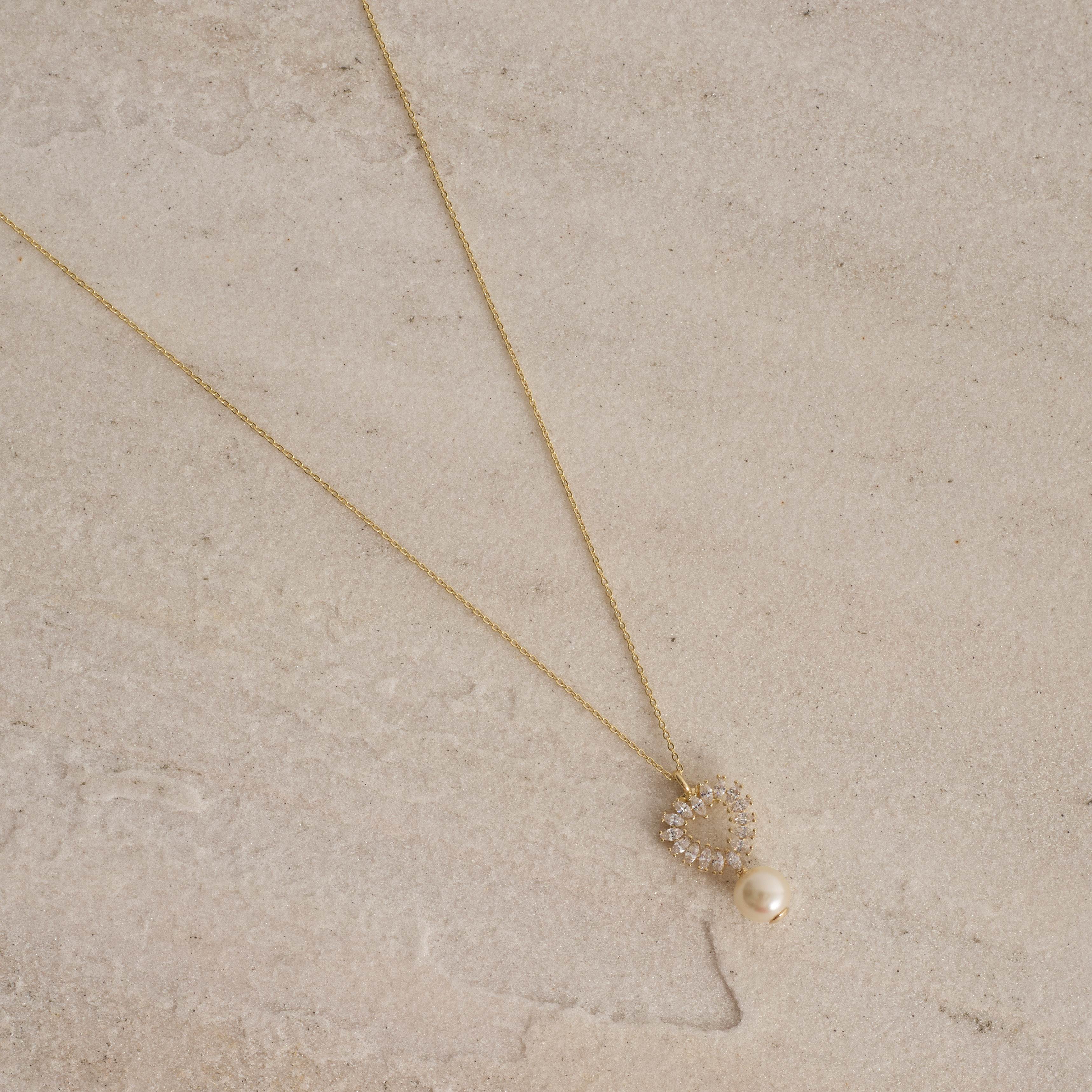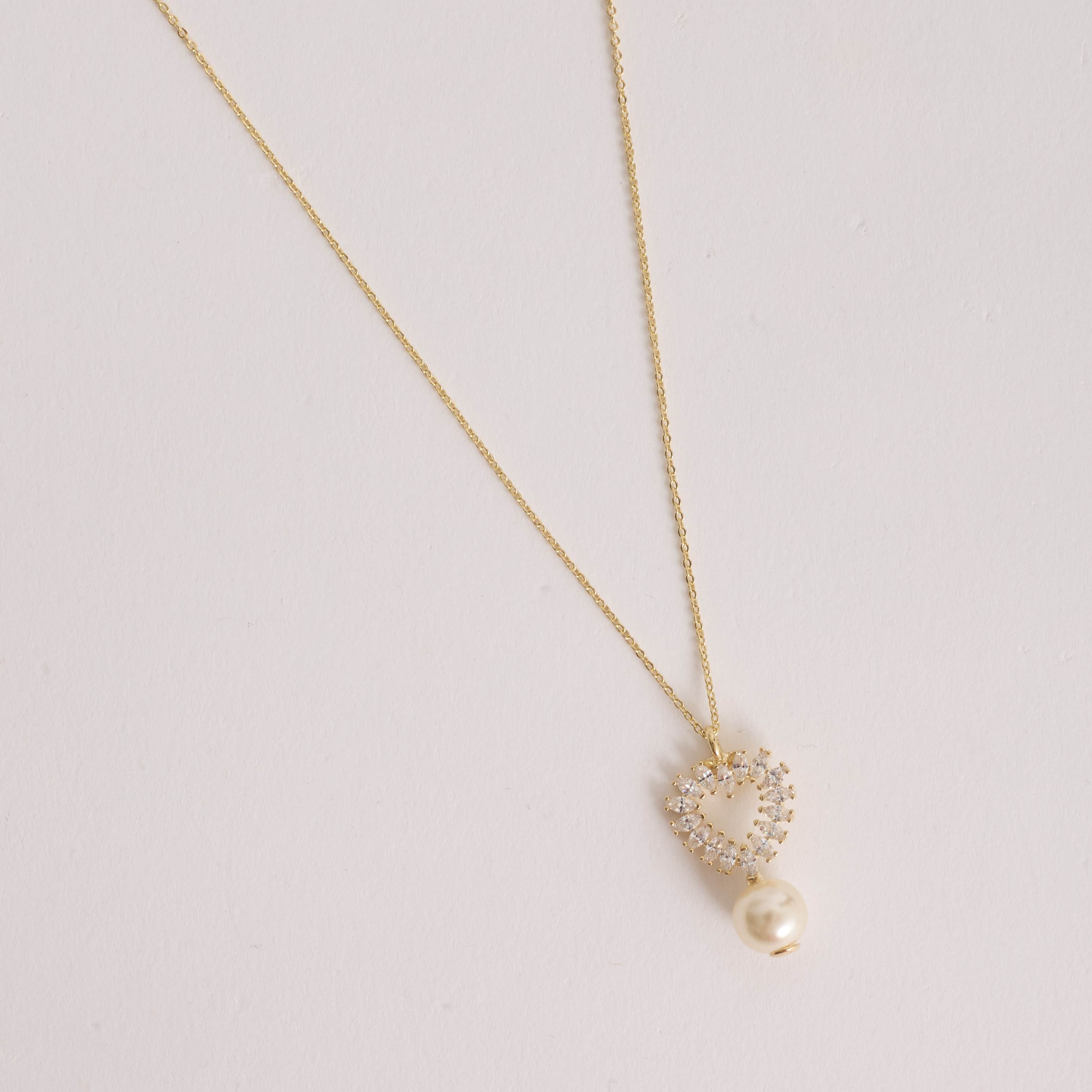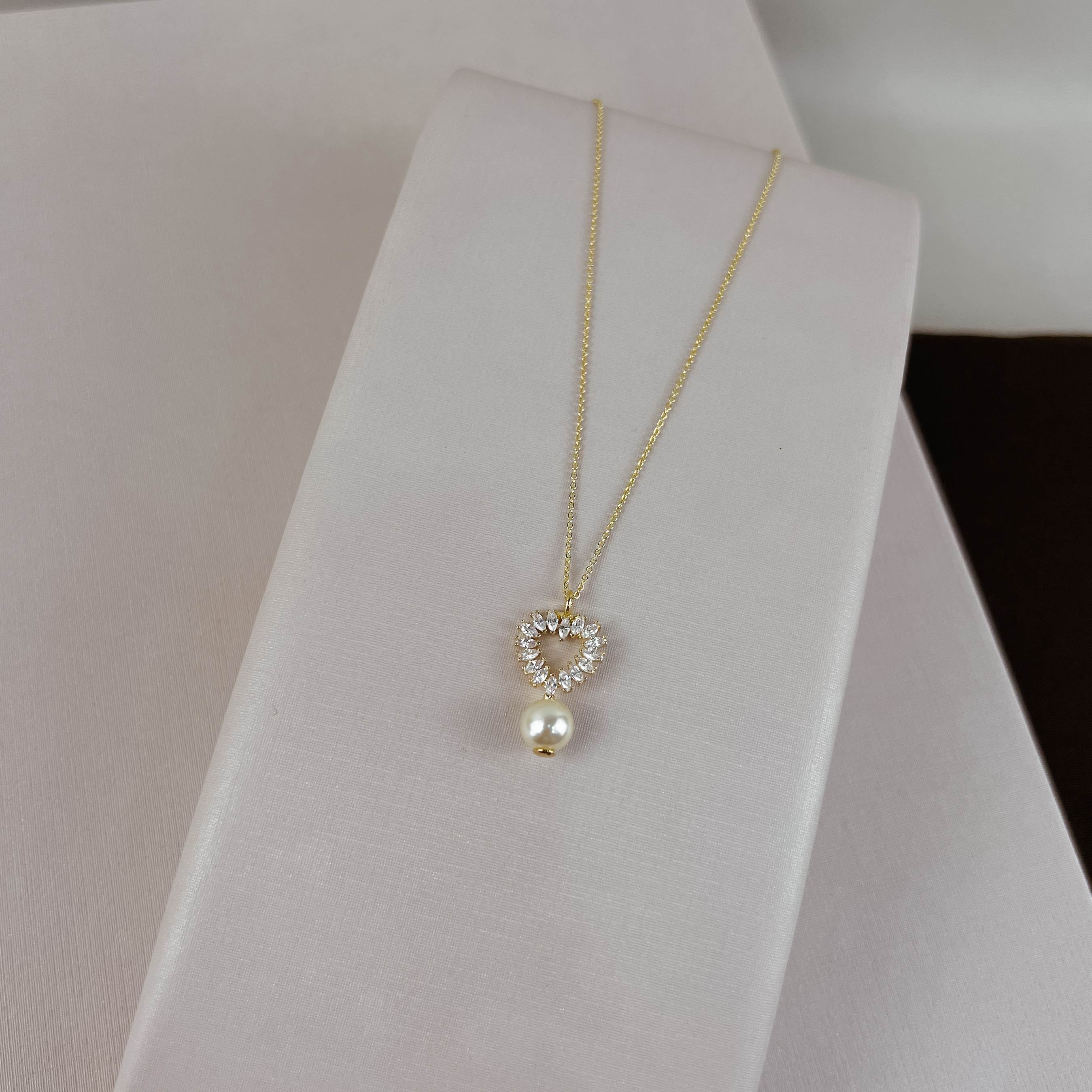 Colar pingente coração vazado cravejado e pérola 19mm 45cm com alongadora | asth